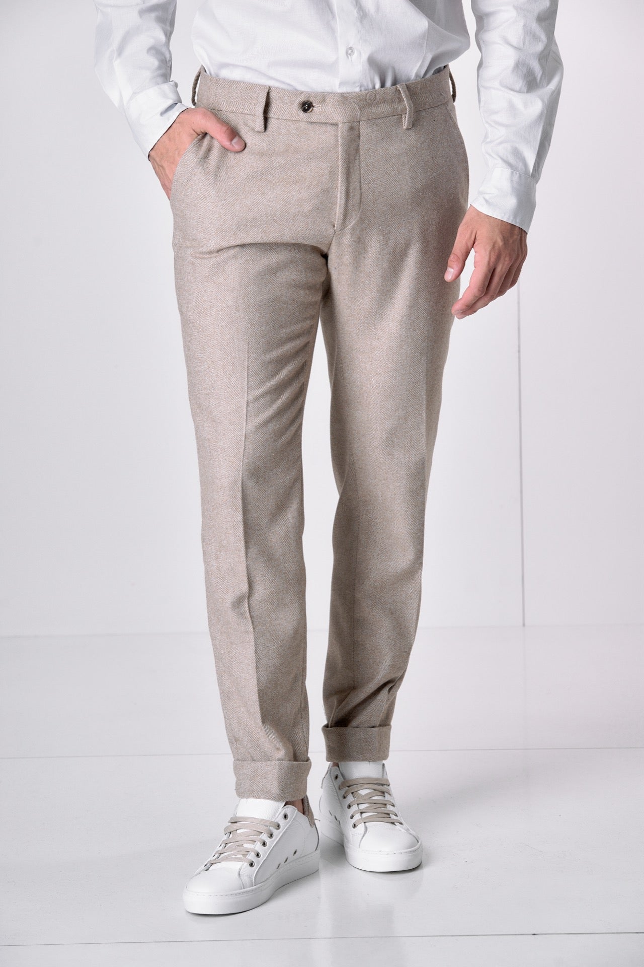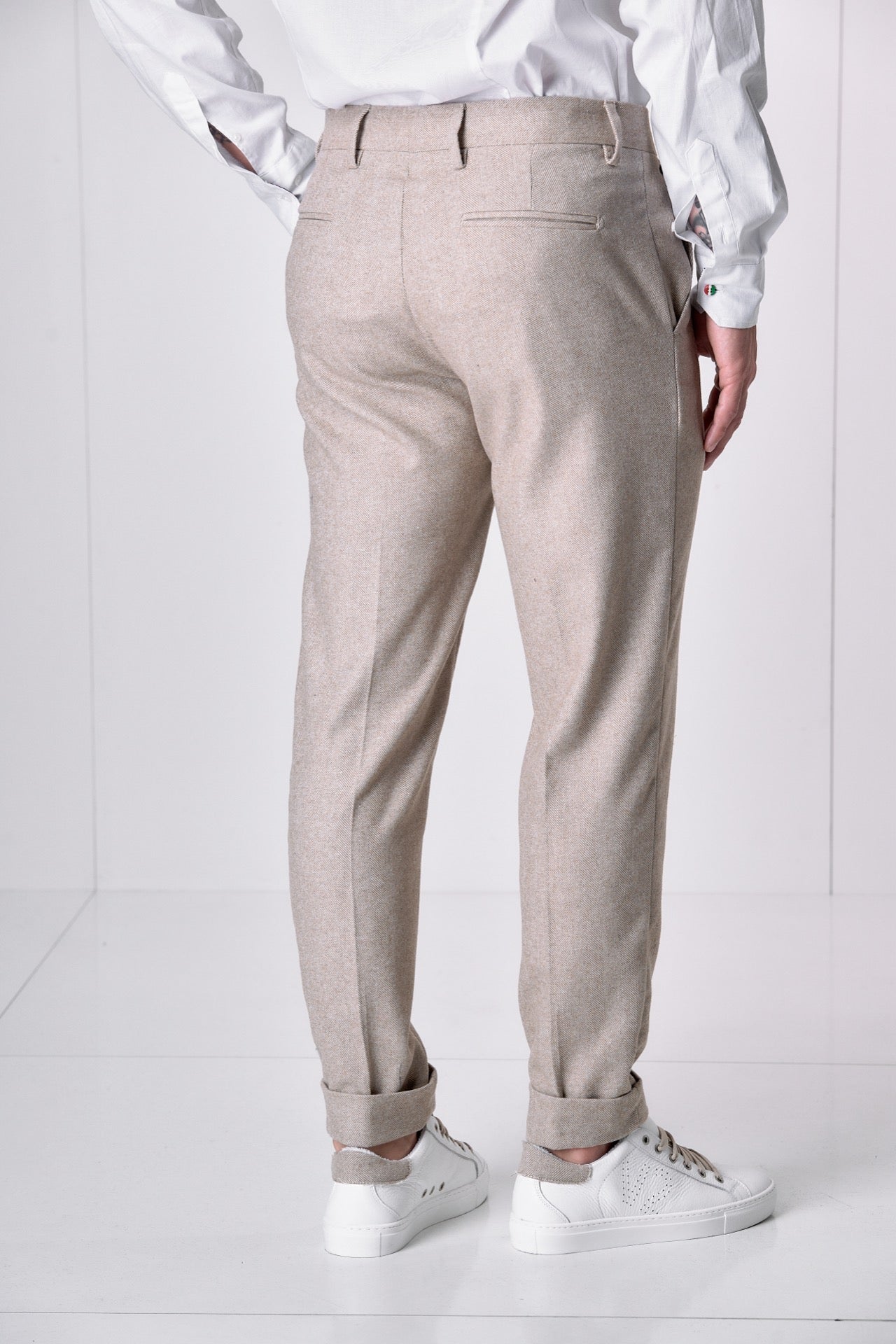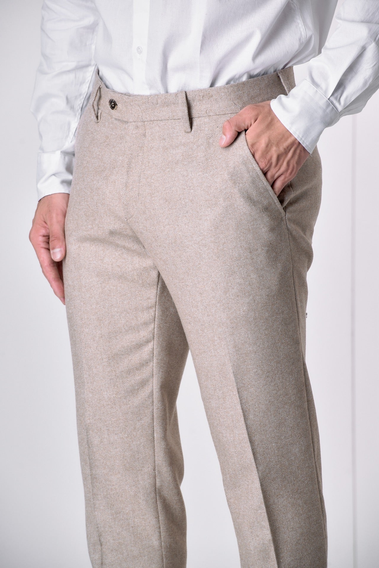 Pantalone Alta Sartoria Slim Spigato Sabbia con interni in tessuto V2