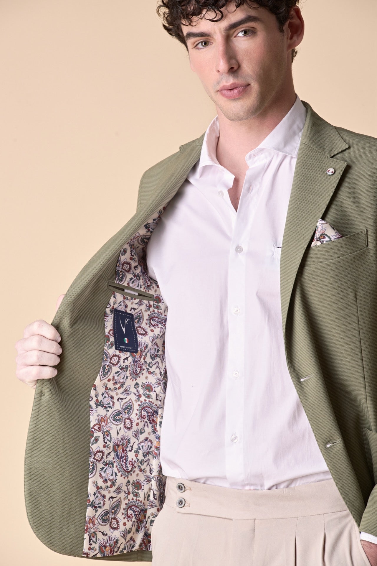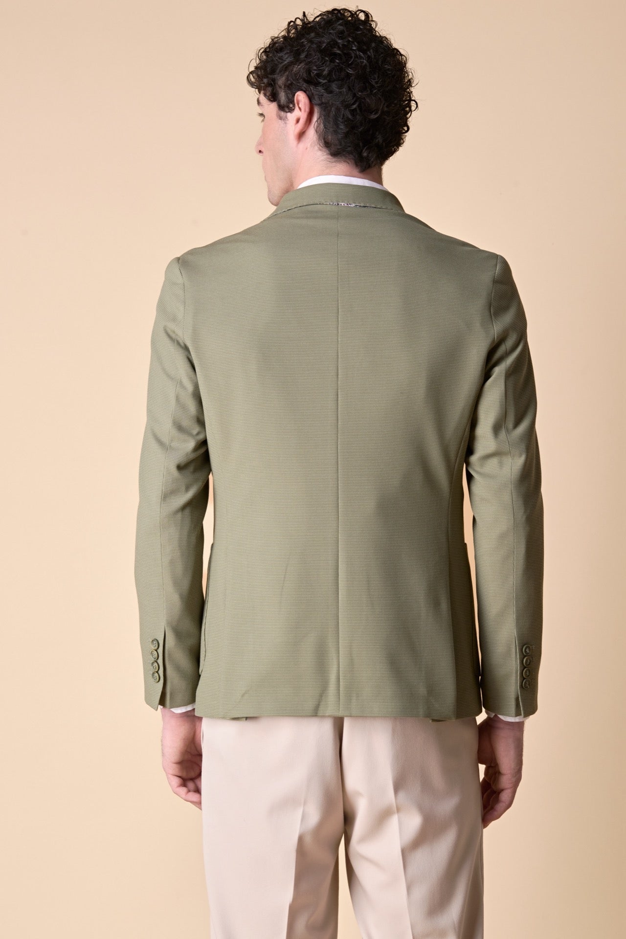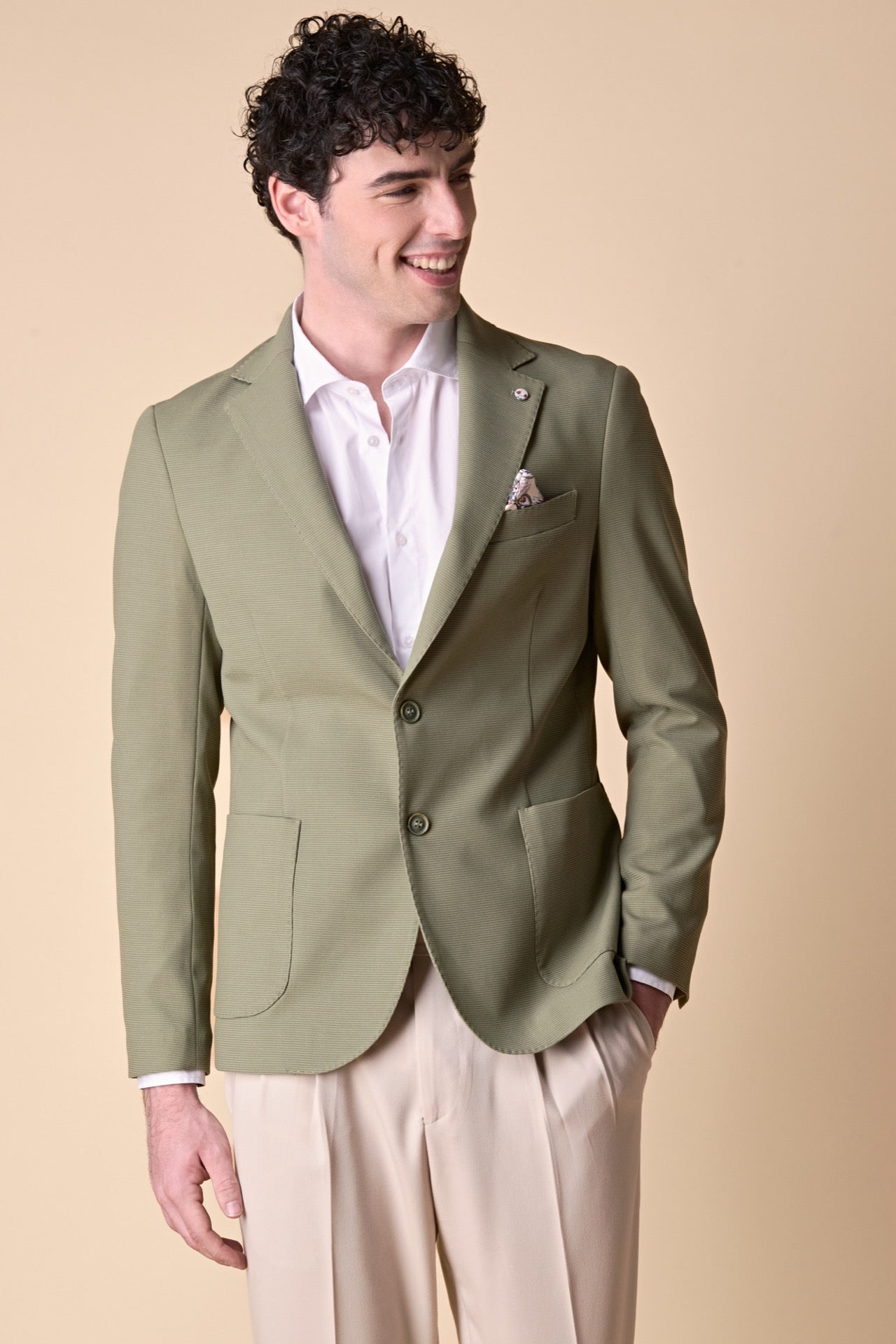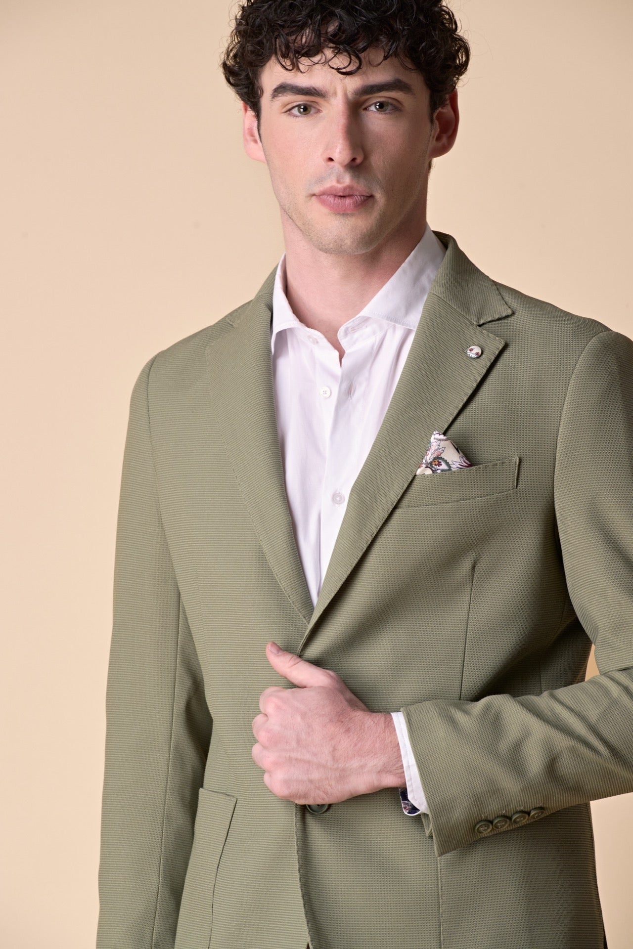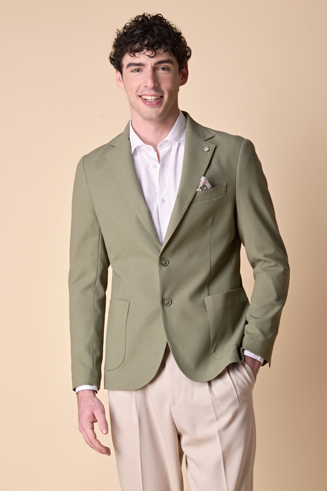 Giacca Monopetto alta sartoria 3D Pesto con interni e pochette in tessuto V2
