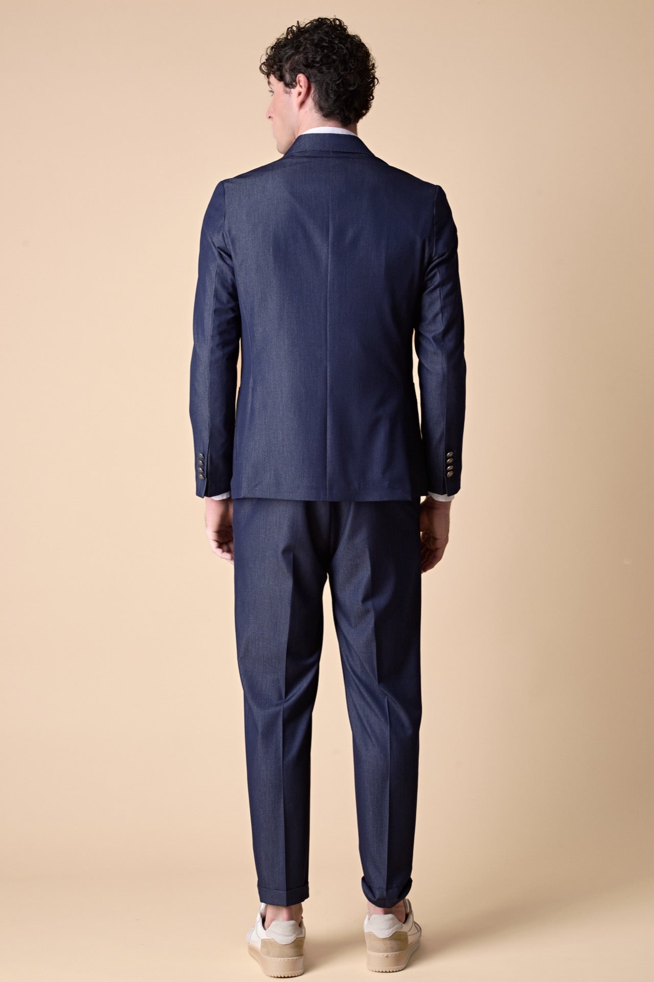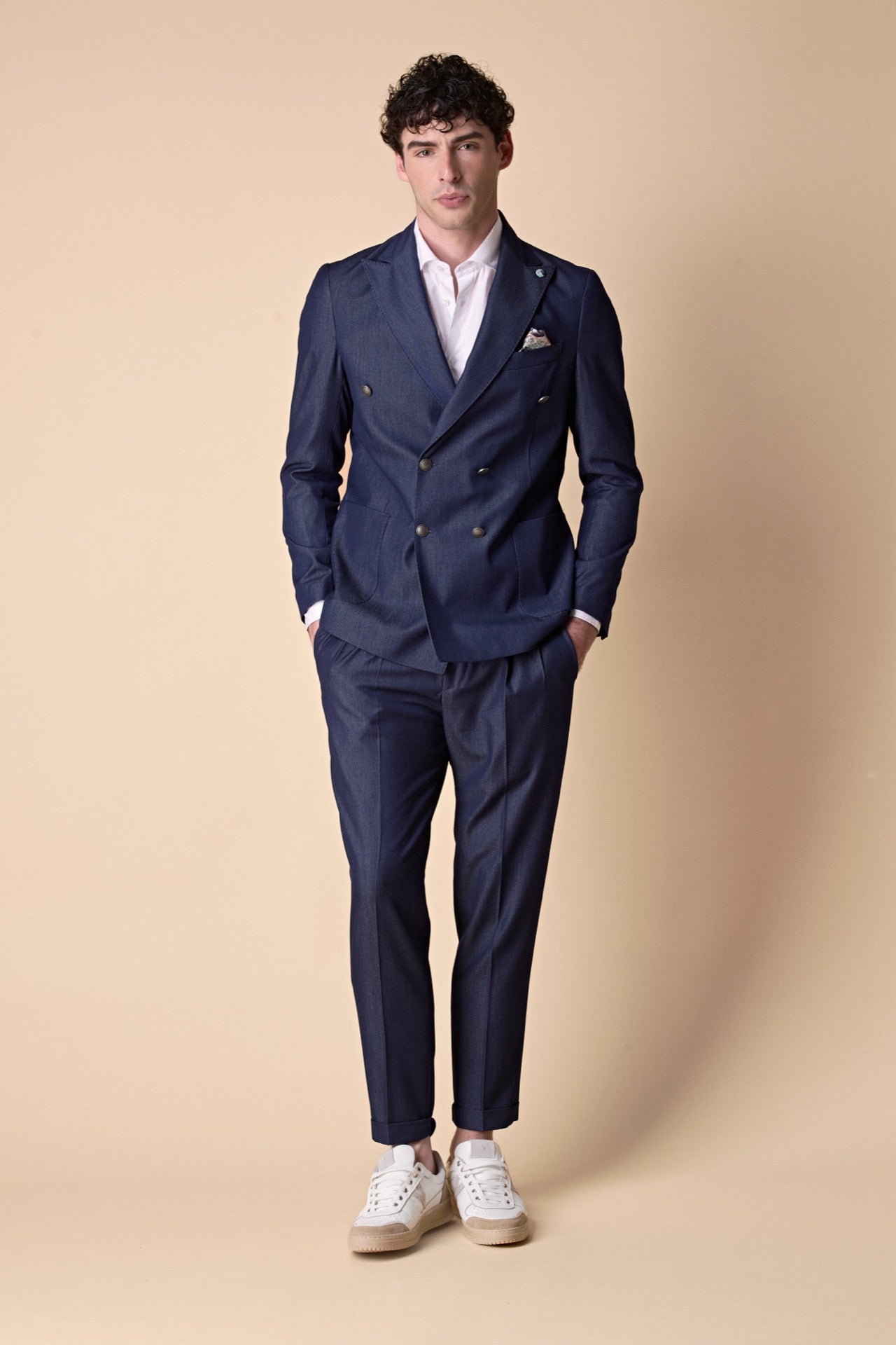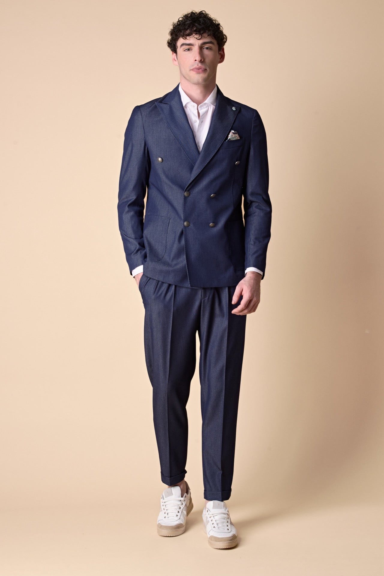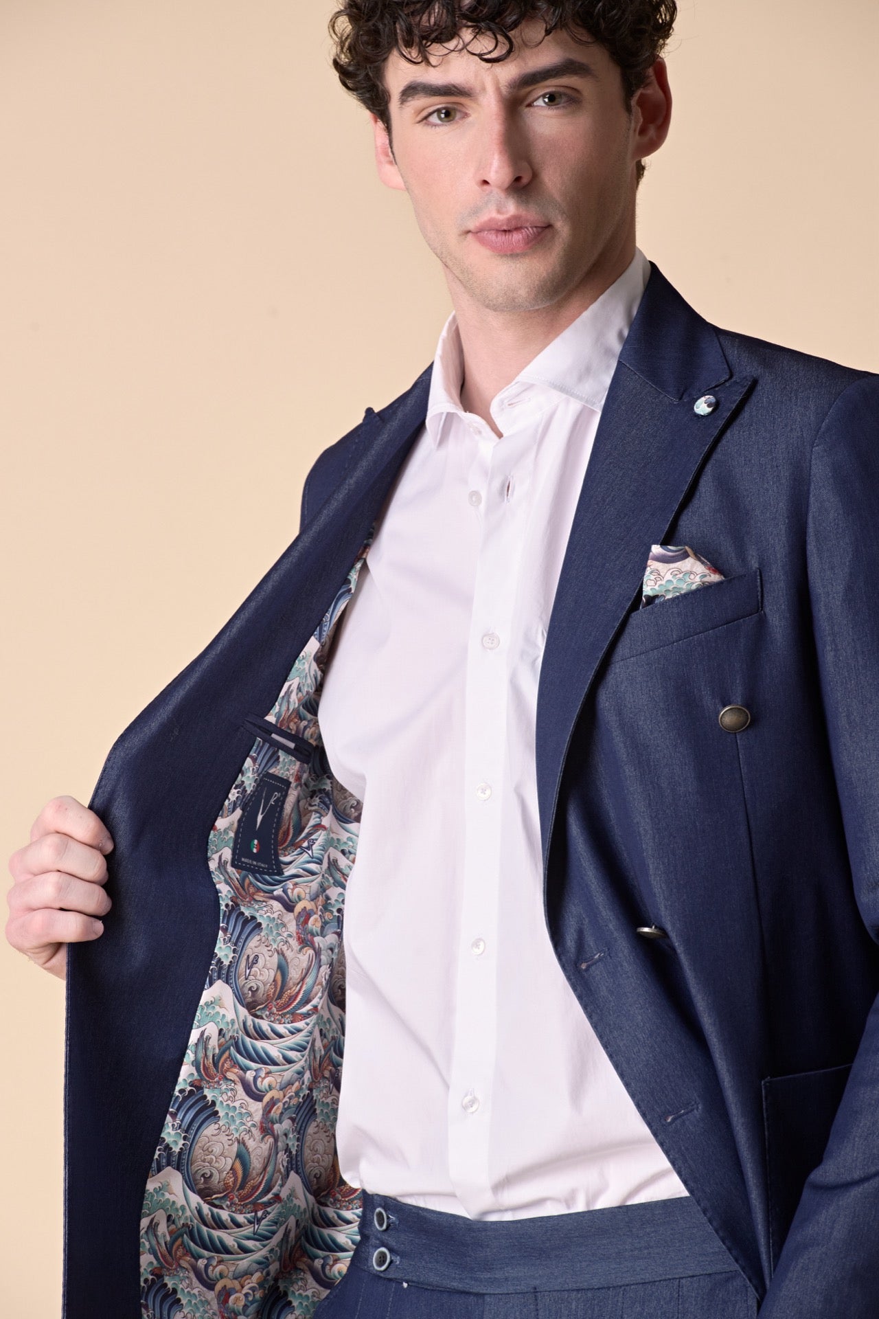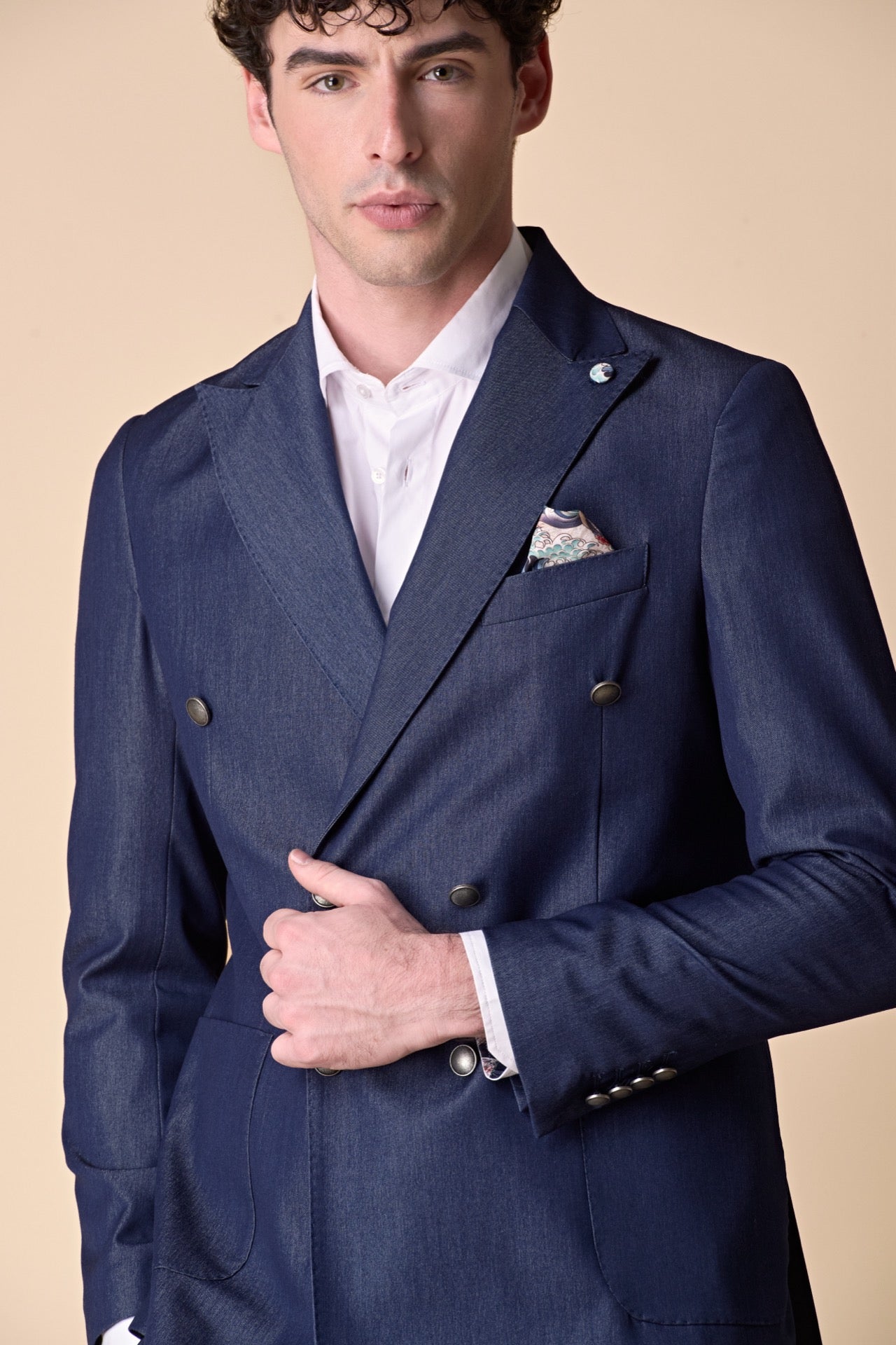 Giacca Doppiopetto alta sartoria Jeans con interni e pochette in tessuto V2