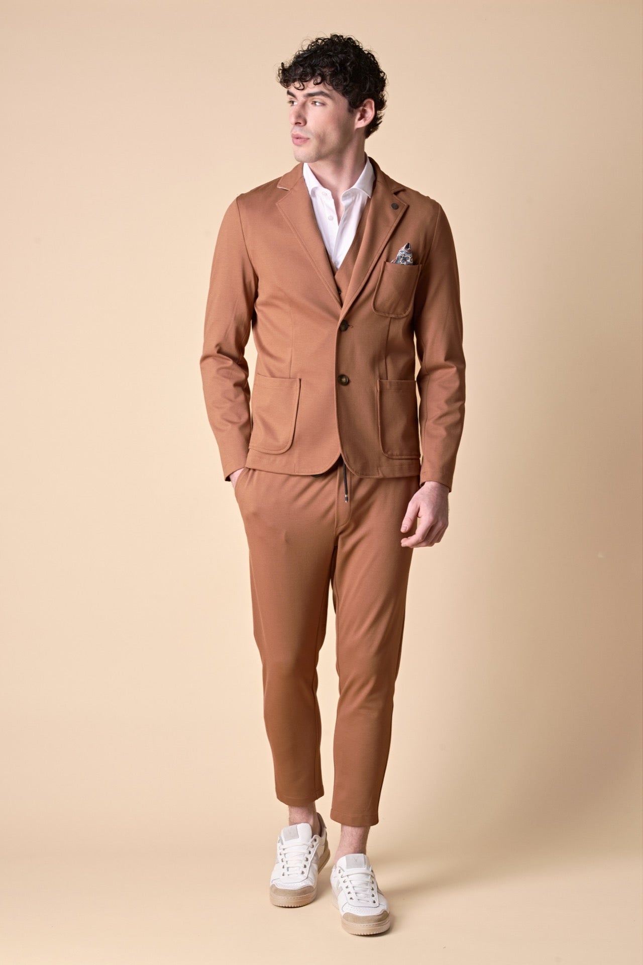 Pantalone Sartoriale in Jersey Tabacco con elastico in vita