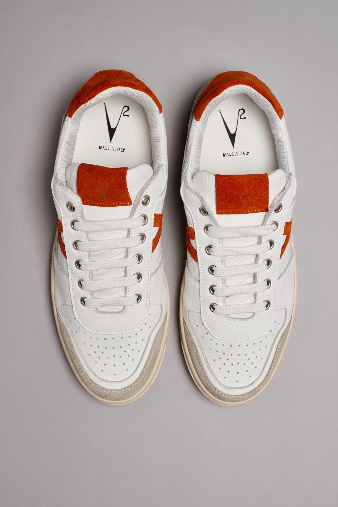 COLLEGE - Sneakers Bianca con retro e inserto scamosciato Arancio