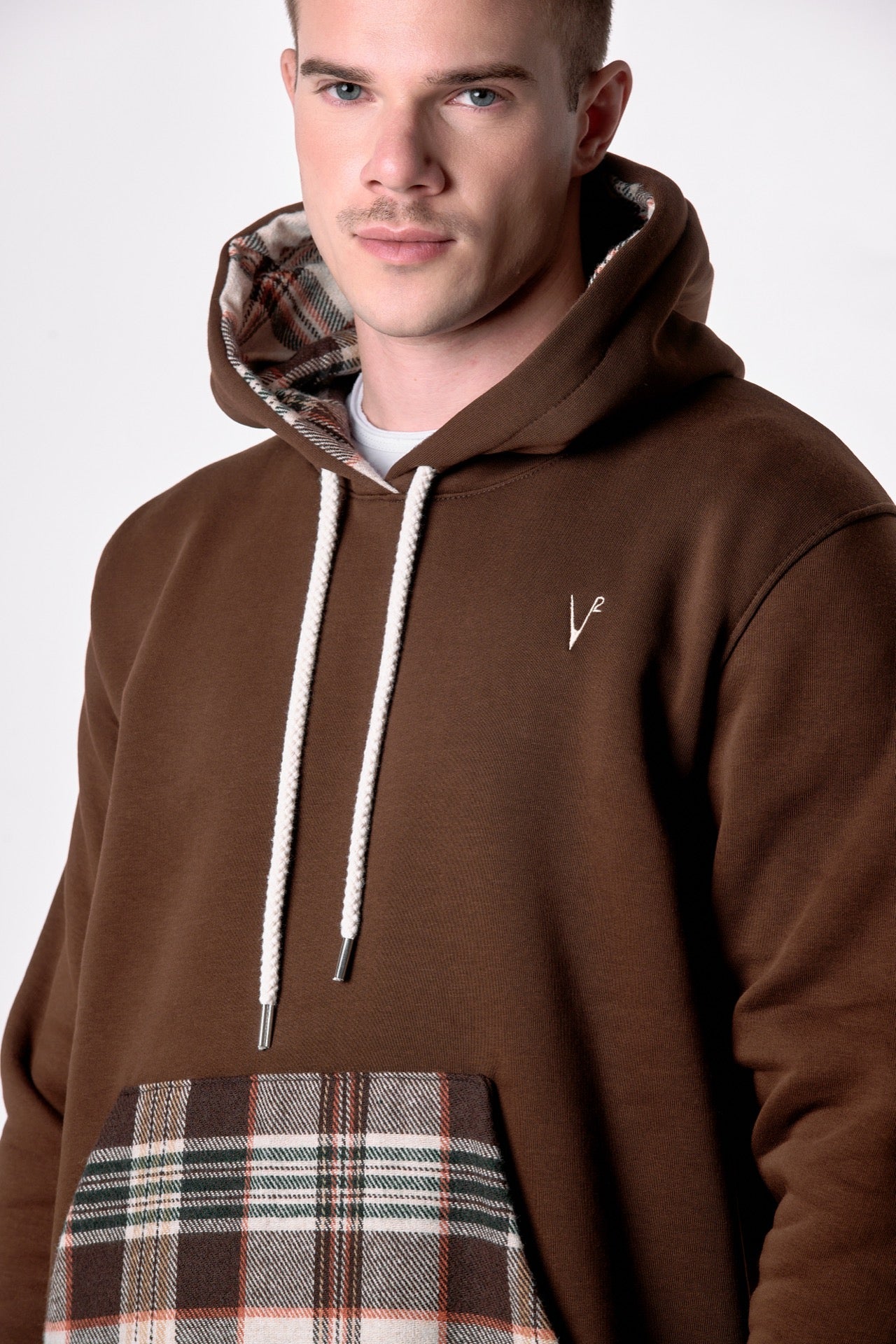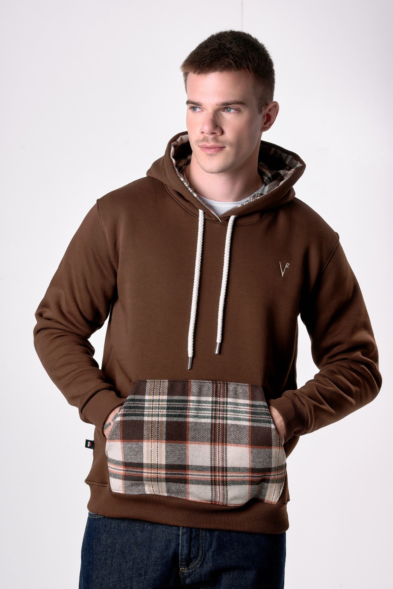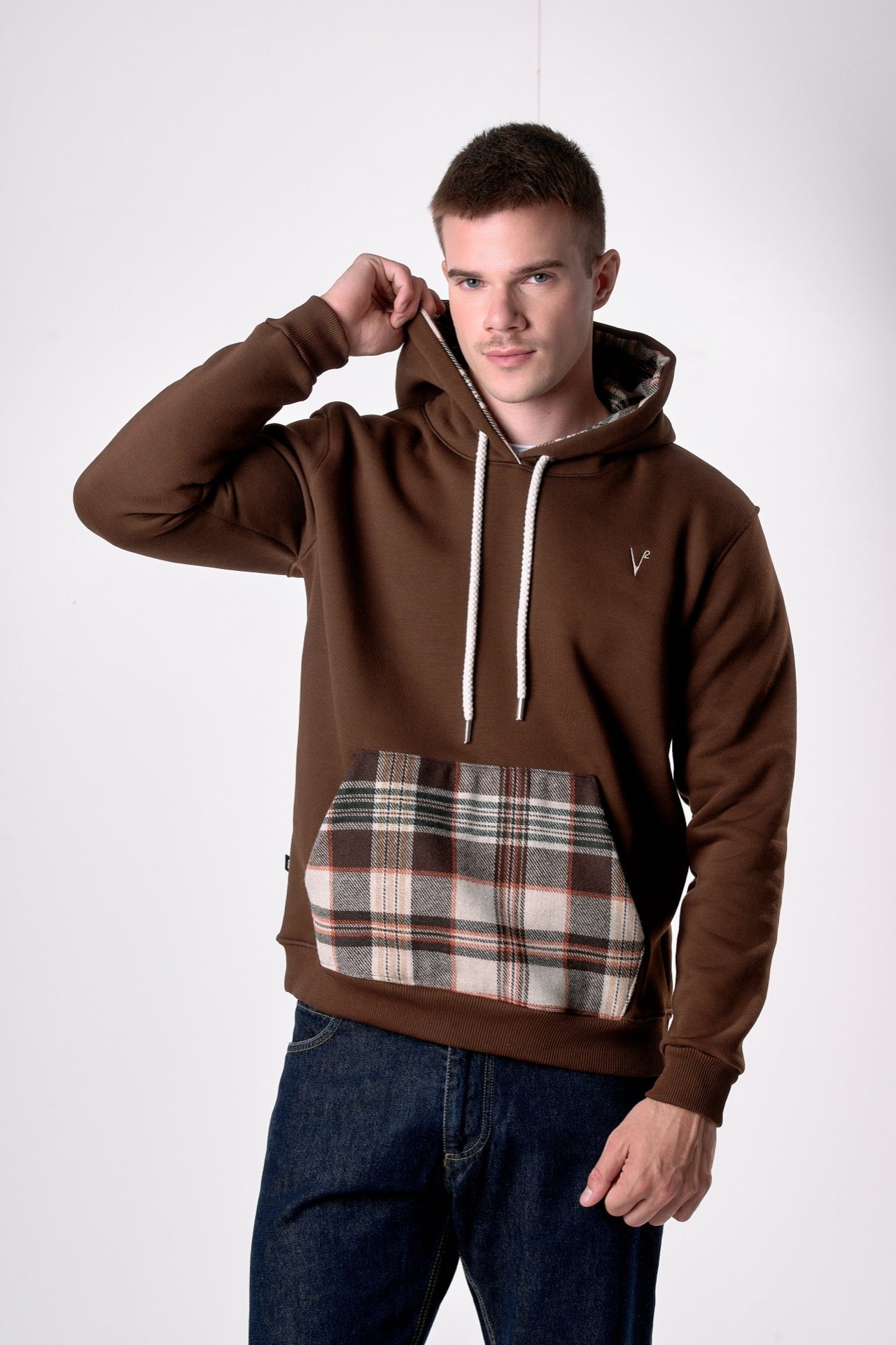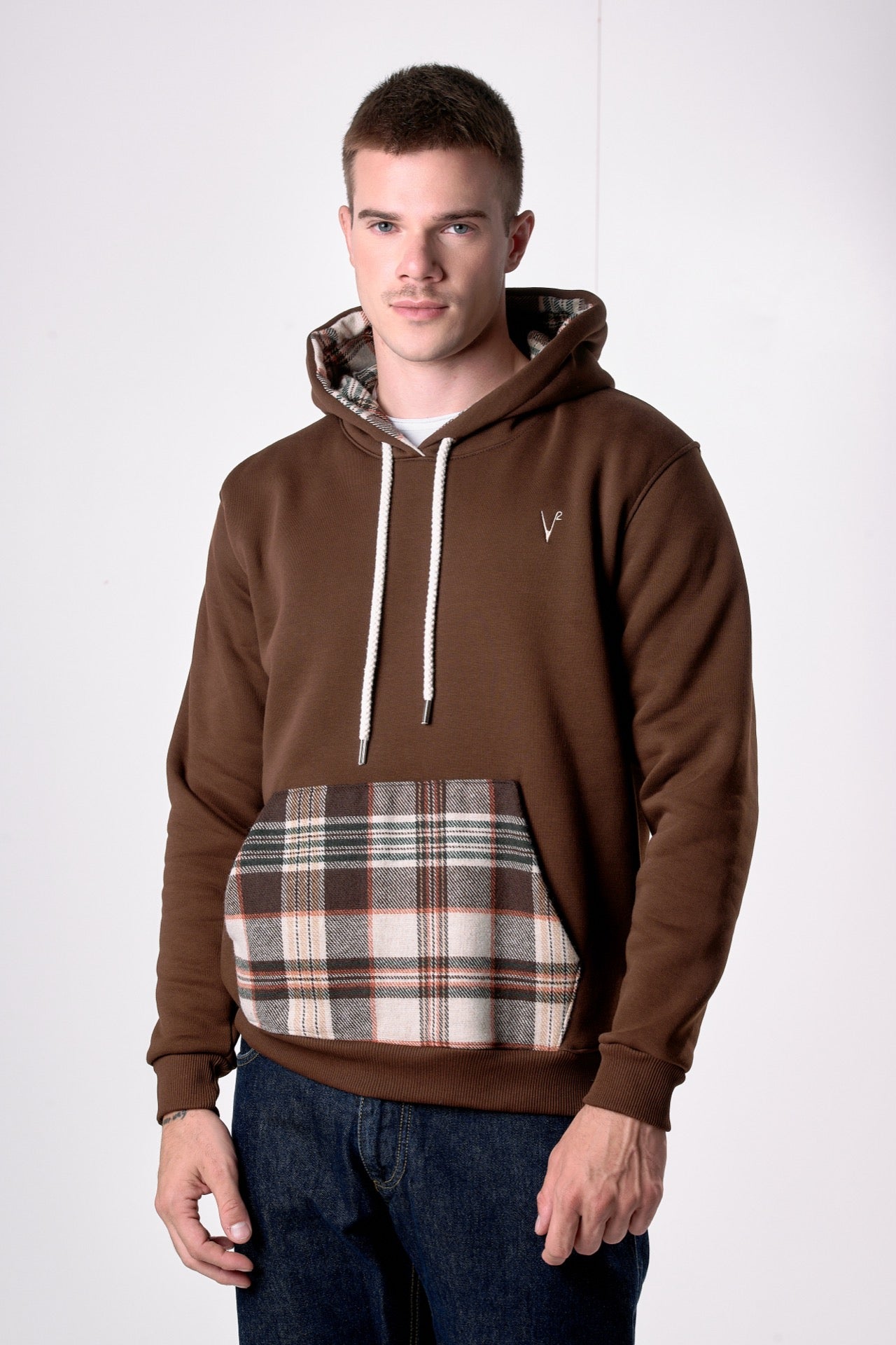 Felpa Cappuccio Moro con tascone e interno in tessuto V2