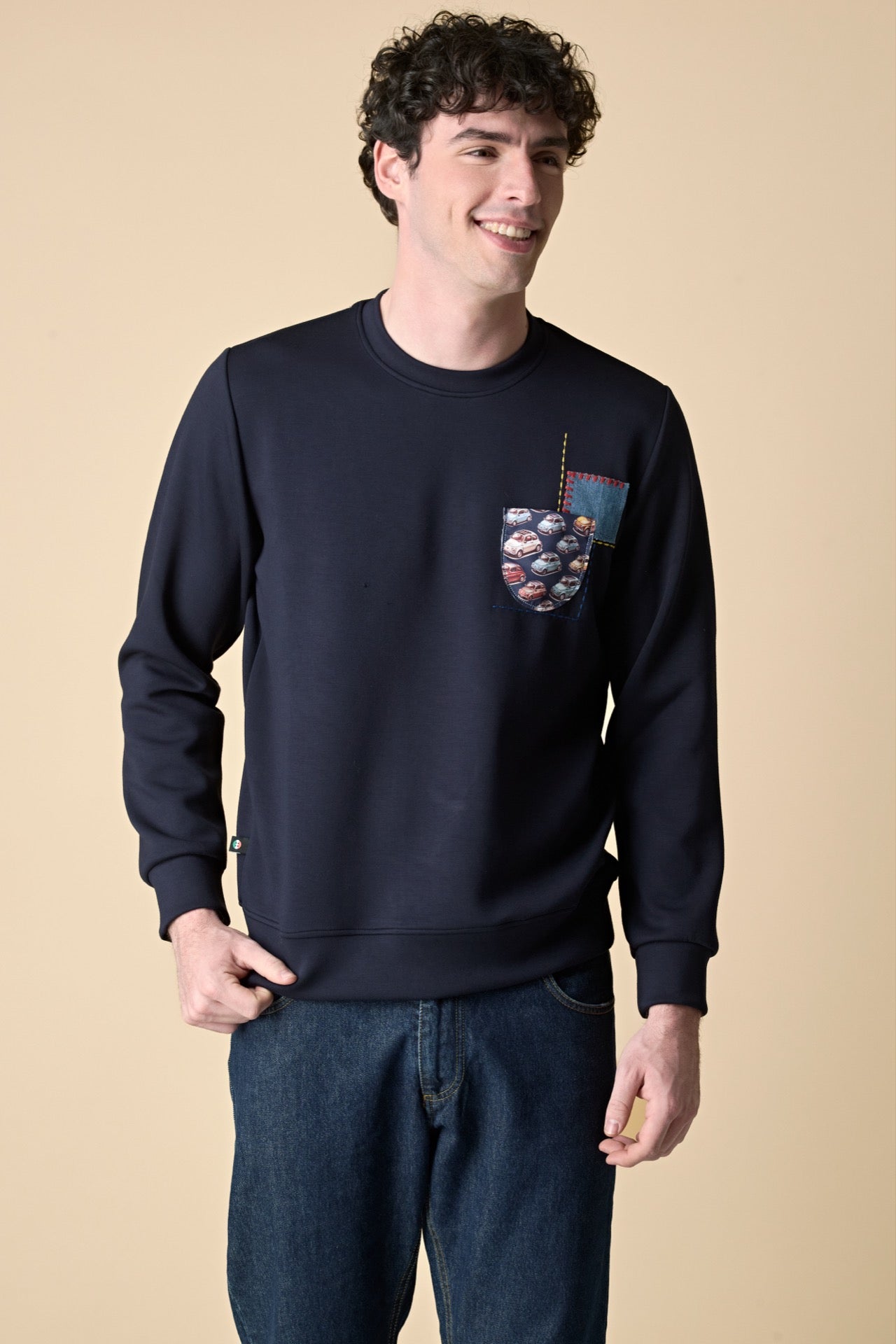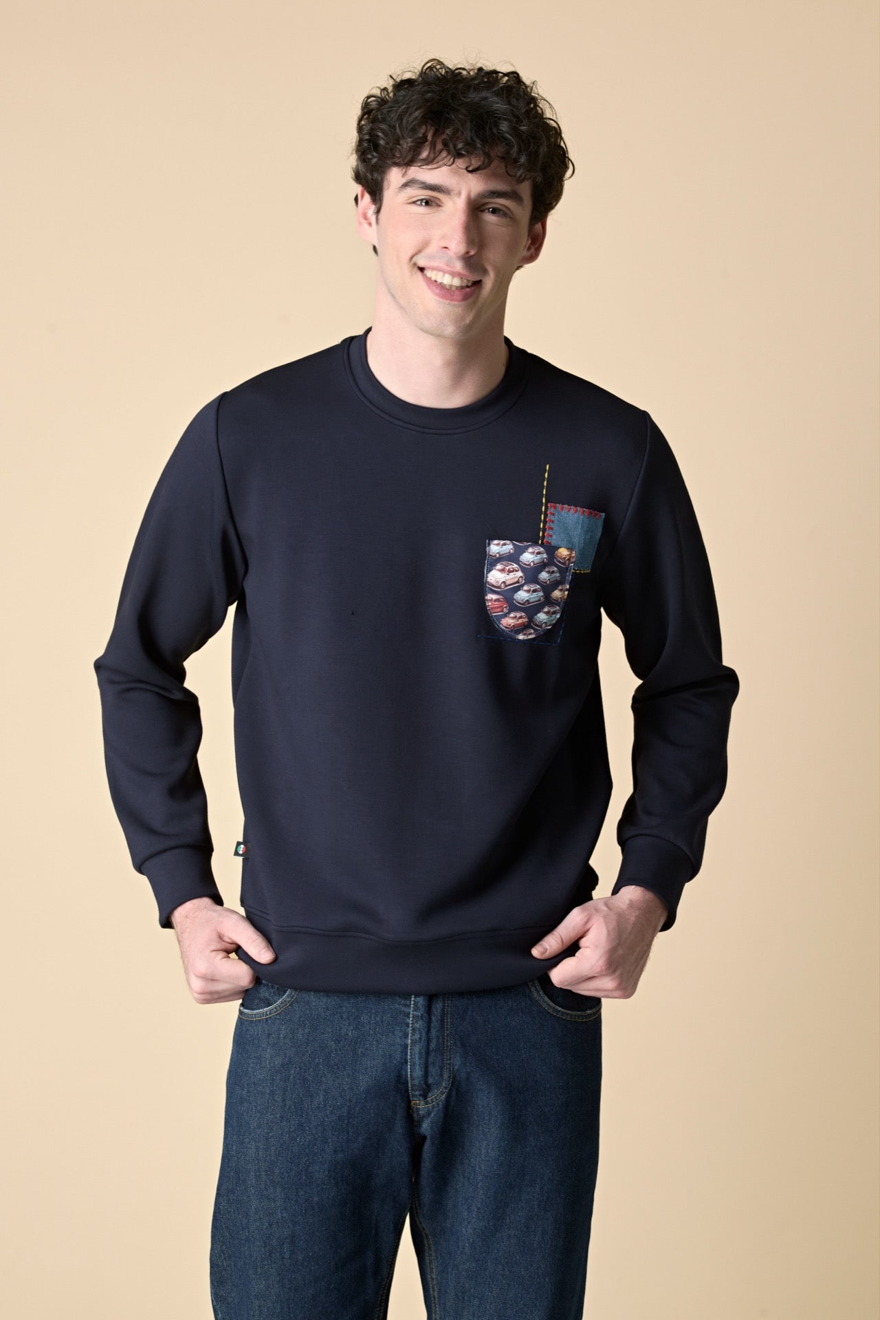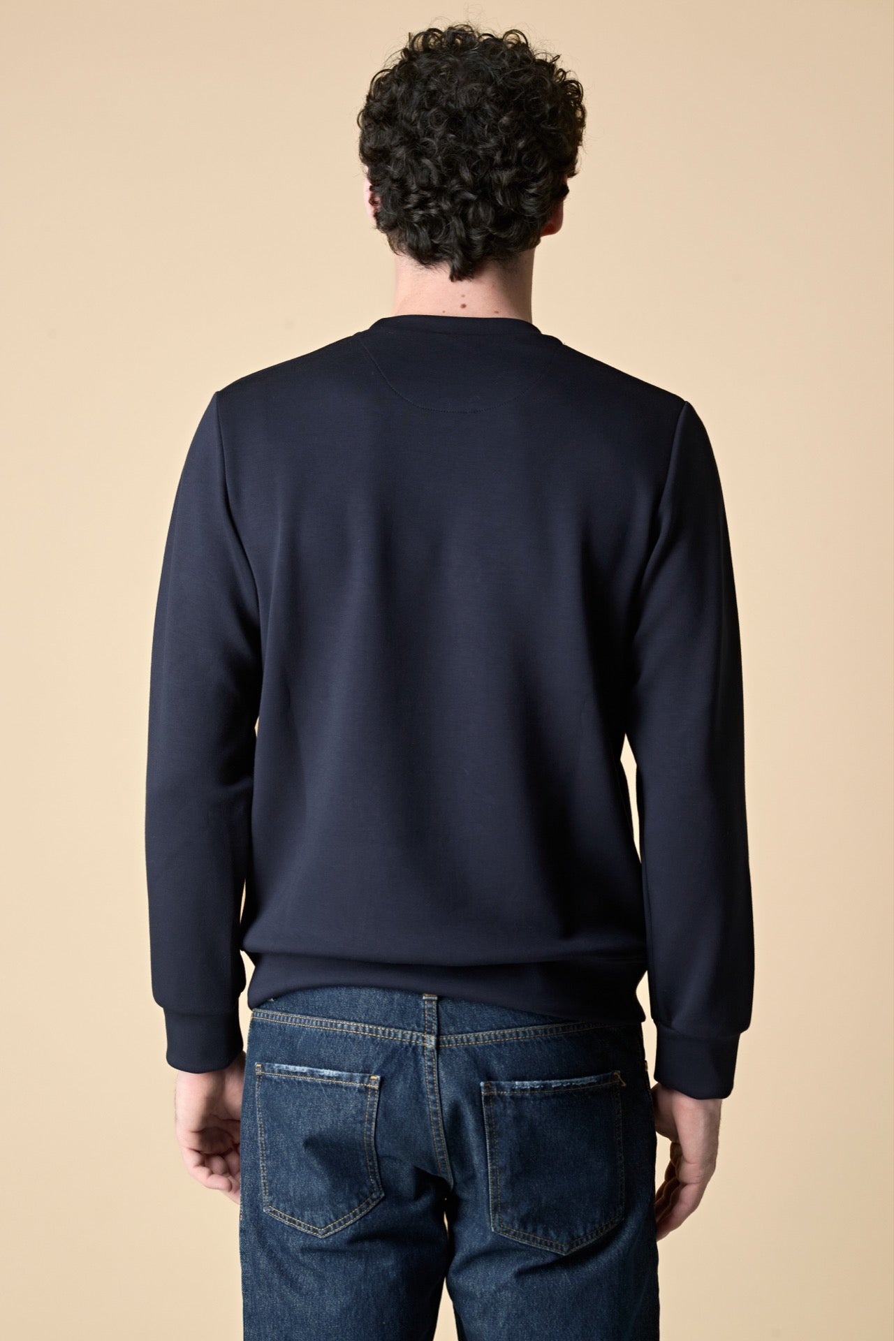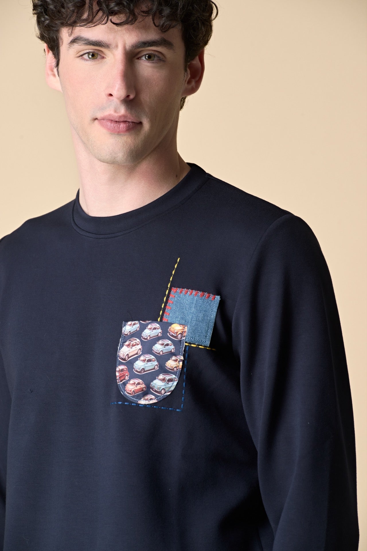 Felpa Girocollo Blu con Taschino e Patch in tessuto V2