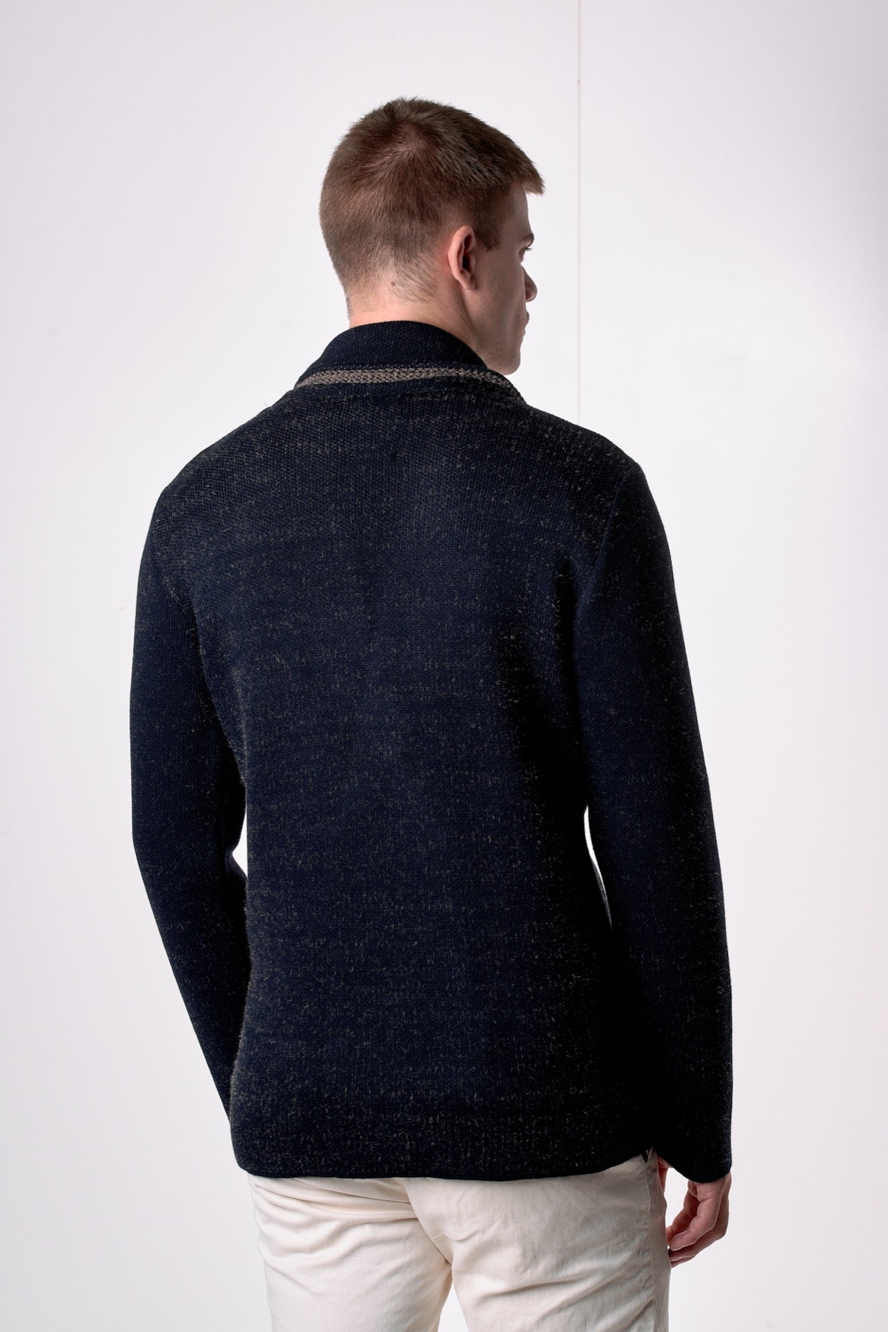 Giacca Doppiopetto in filato Soft Touch Blu con pochette in tessuto V2