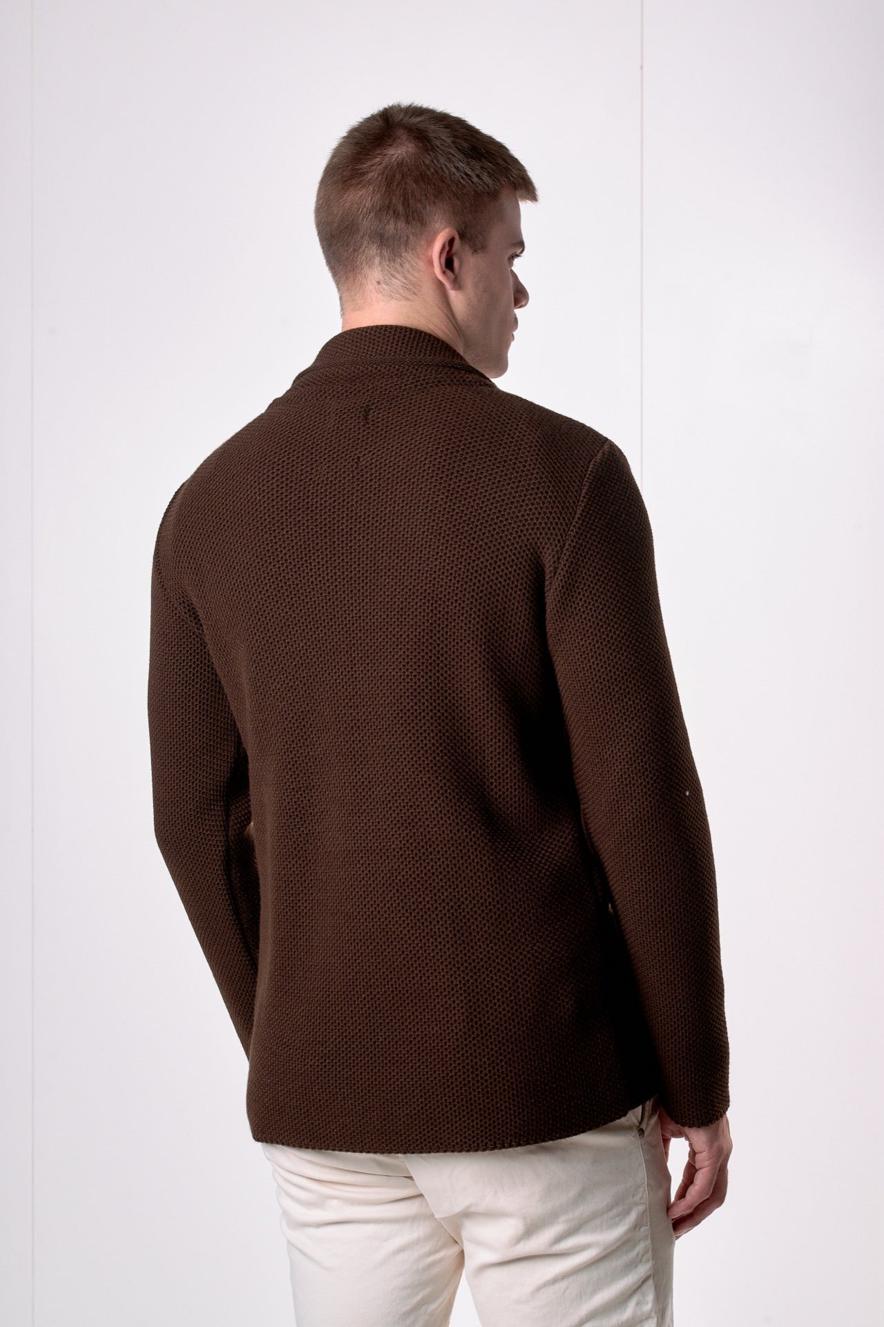 Giacca Monopetto Occhio di Pernice Moro con pochette in tessuto V2