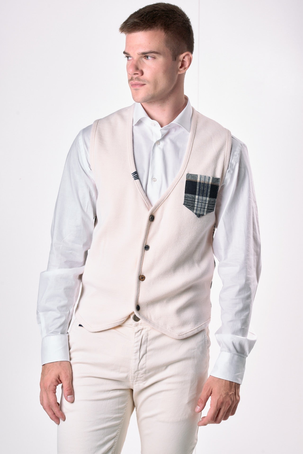 Gilet monopetto Burro con retro e taschino in tessuto V2