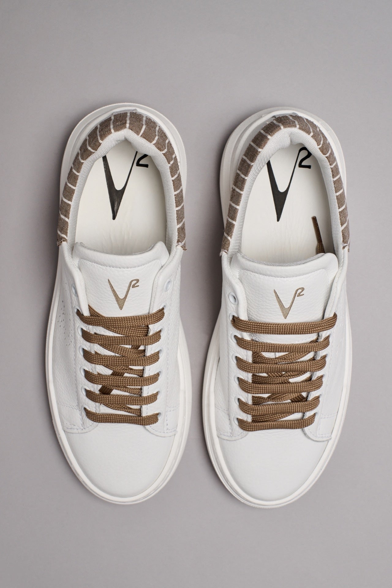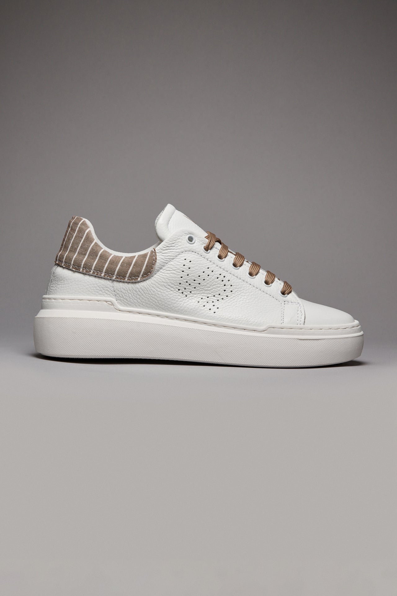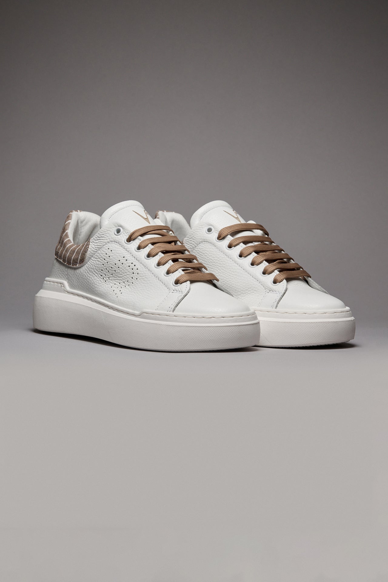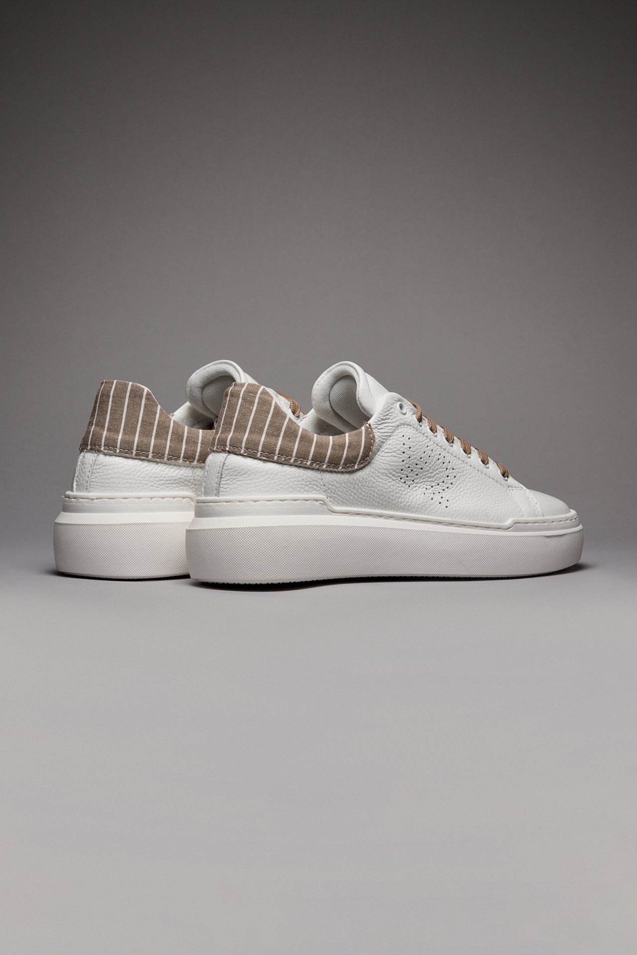 HAMMER - Sneakers a suola alta in pelle martellata con retro in tessuto Gessato Sabbia