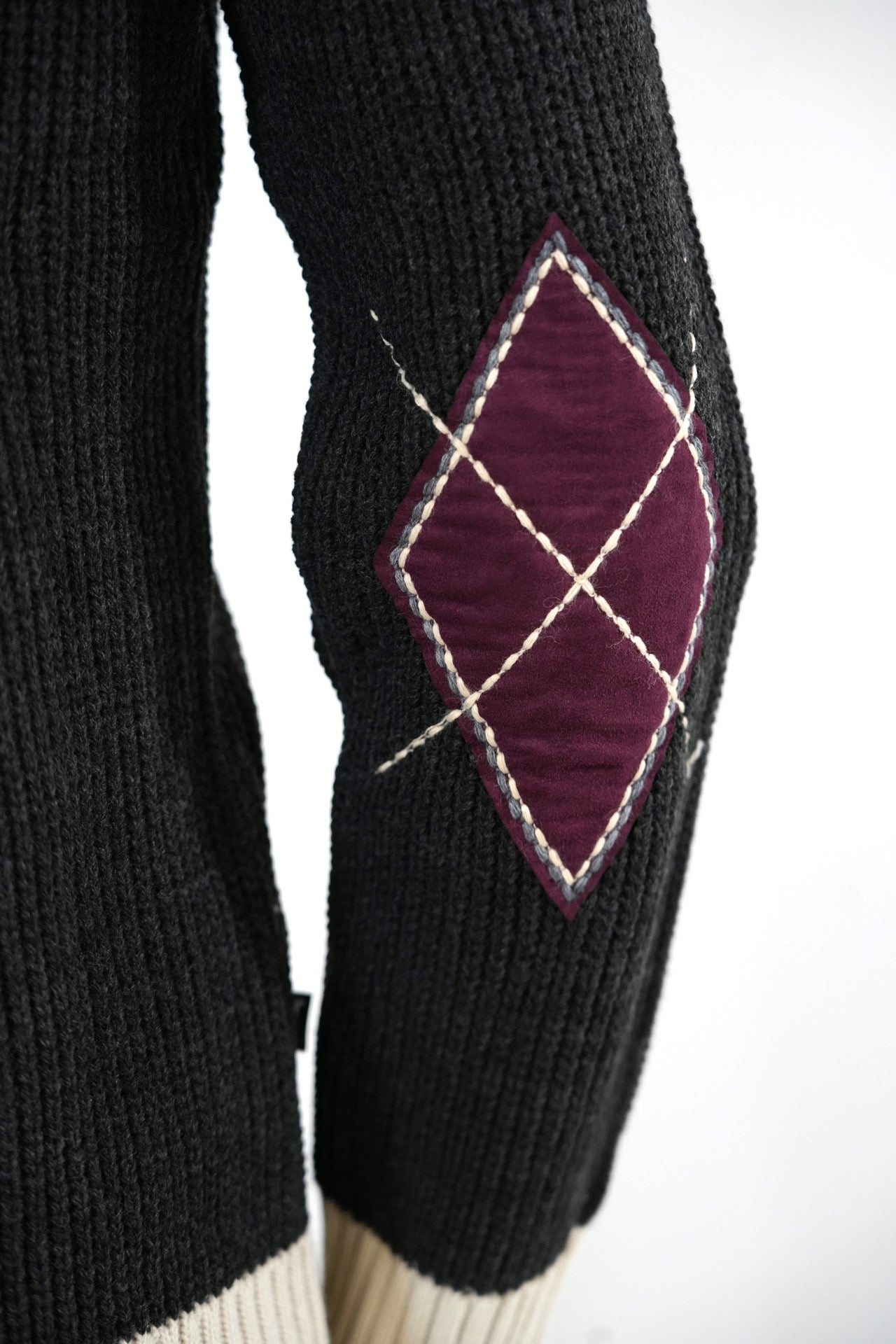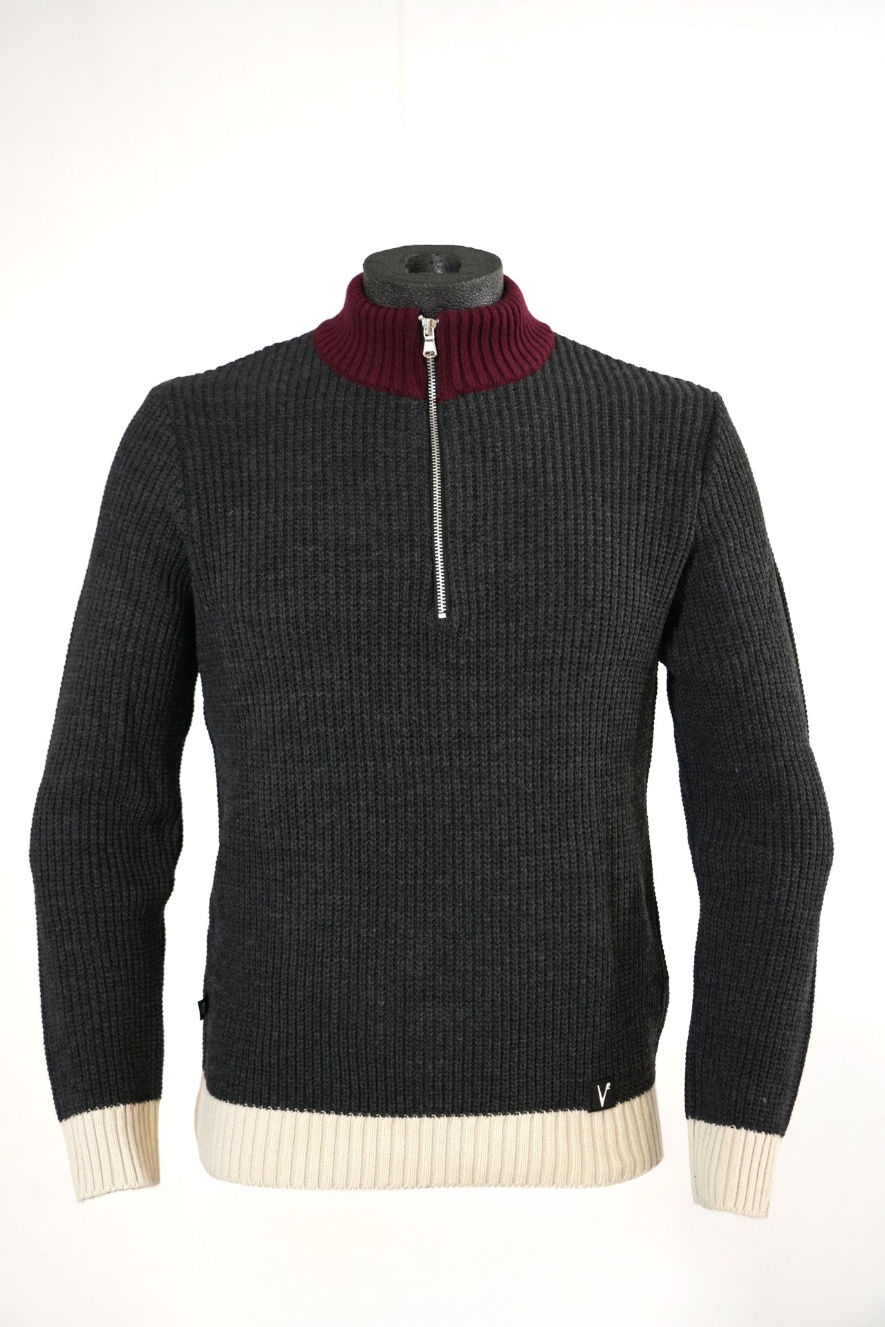 Maglione con Zip tre colori con toppe scamosciate