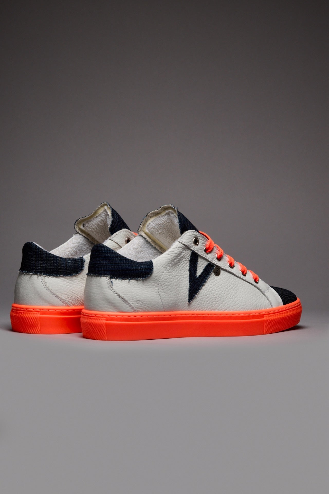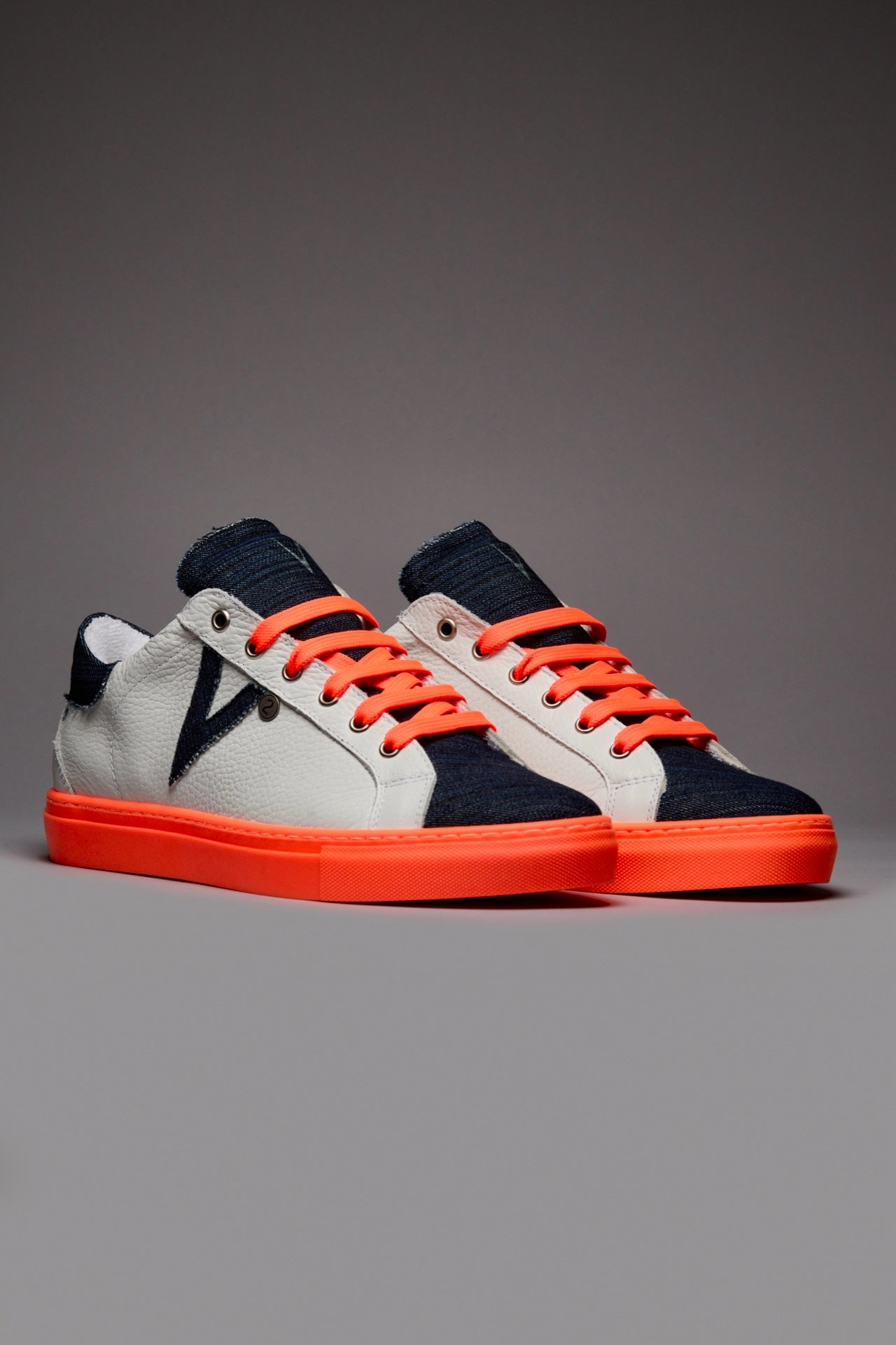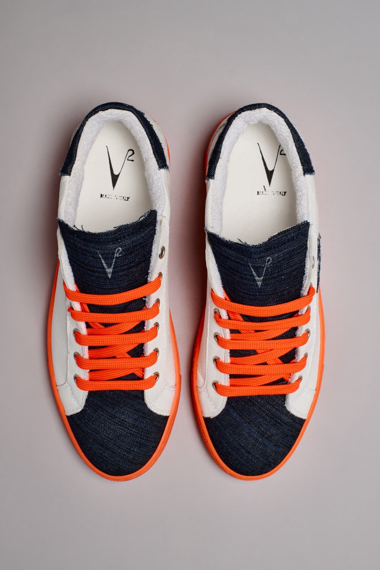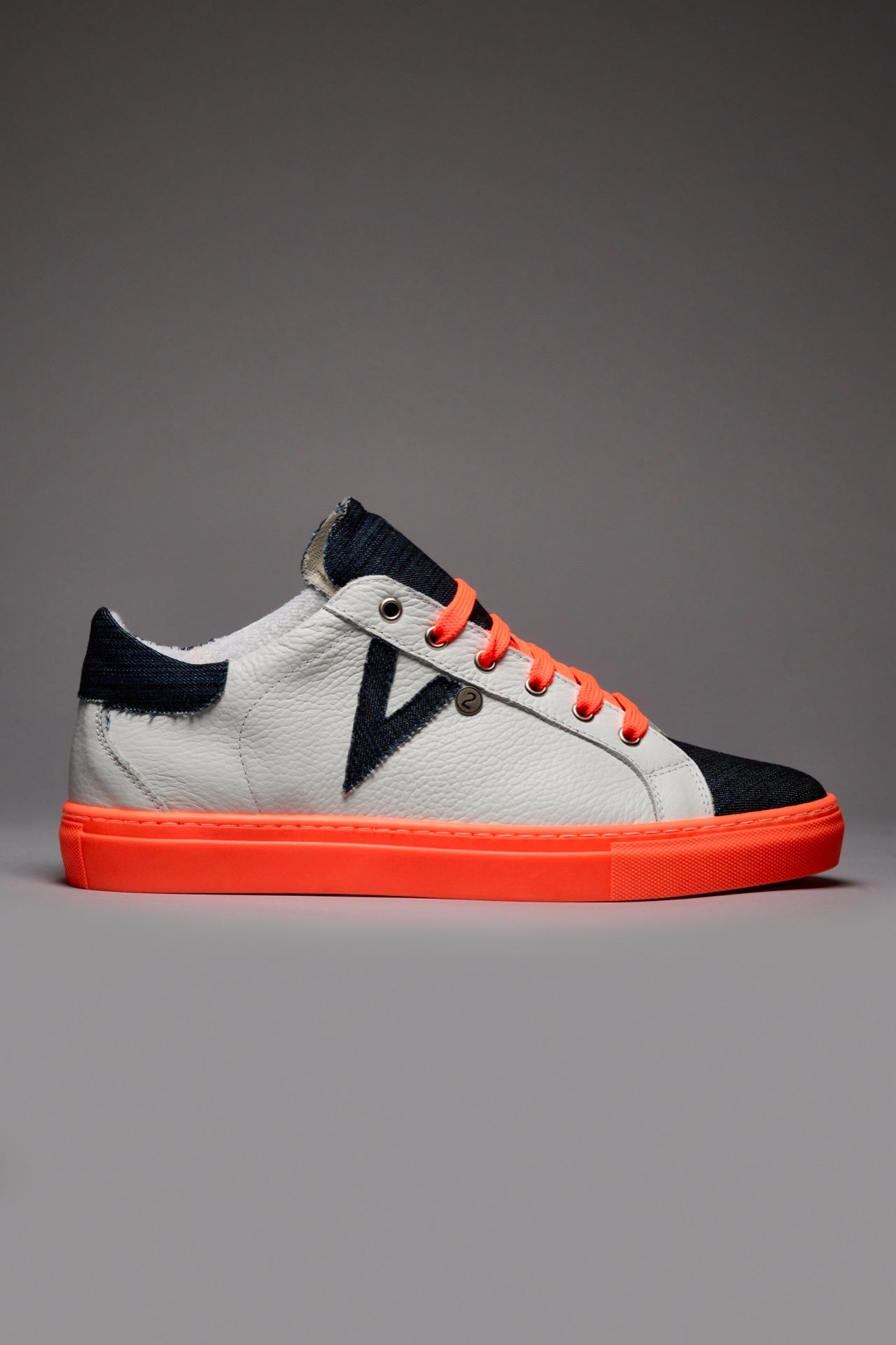 OLYMPIC RAINBOW - Sneakers a suola bassa Bianca con suola e lacci Arancio Fluo e linguetta in tessuto Denim