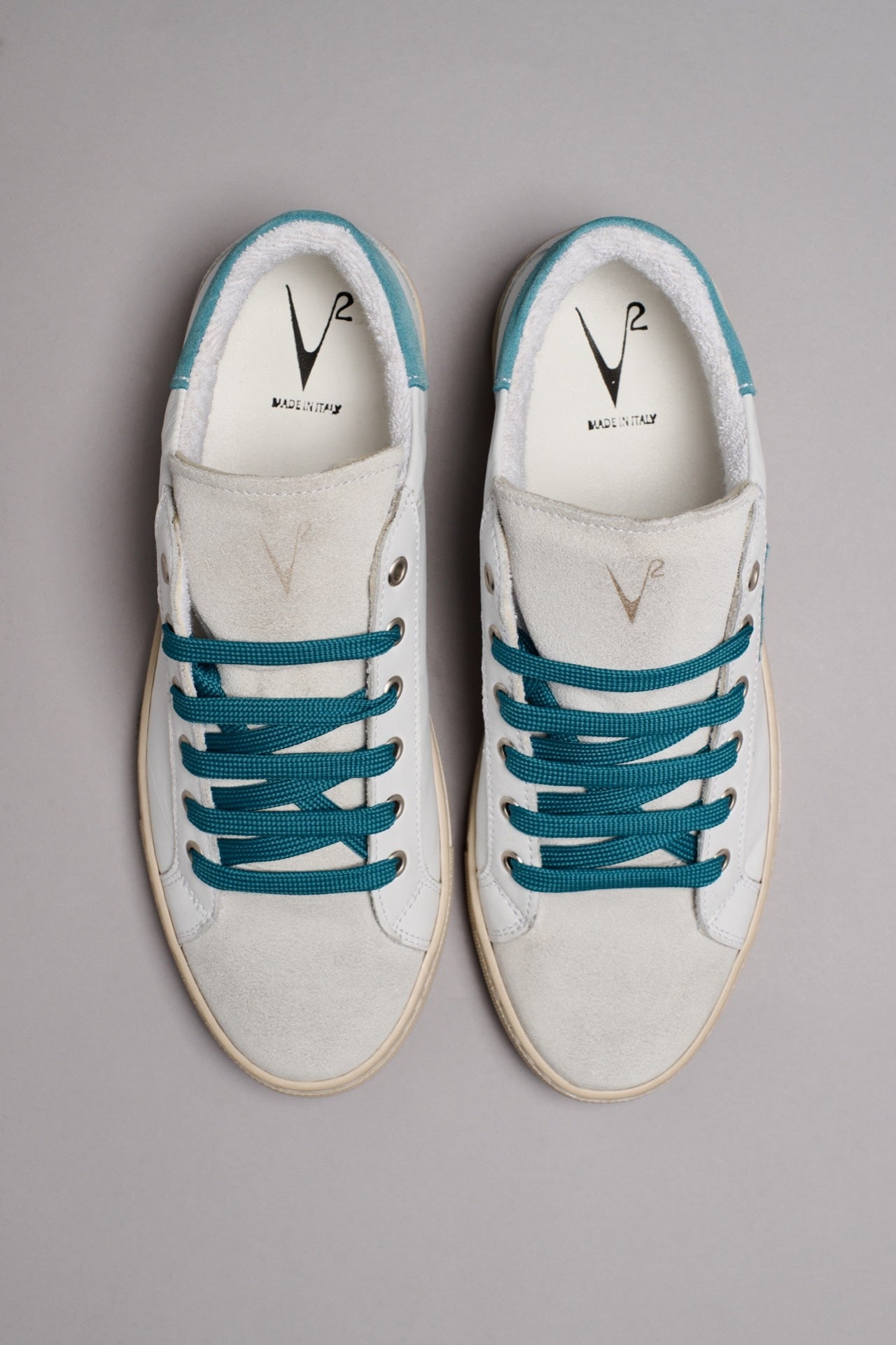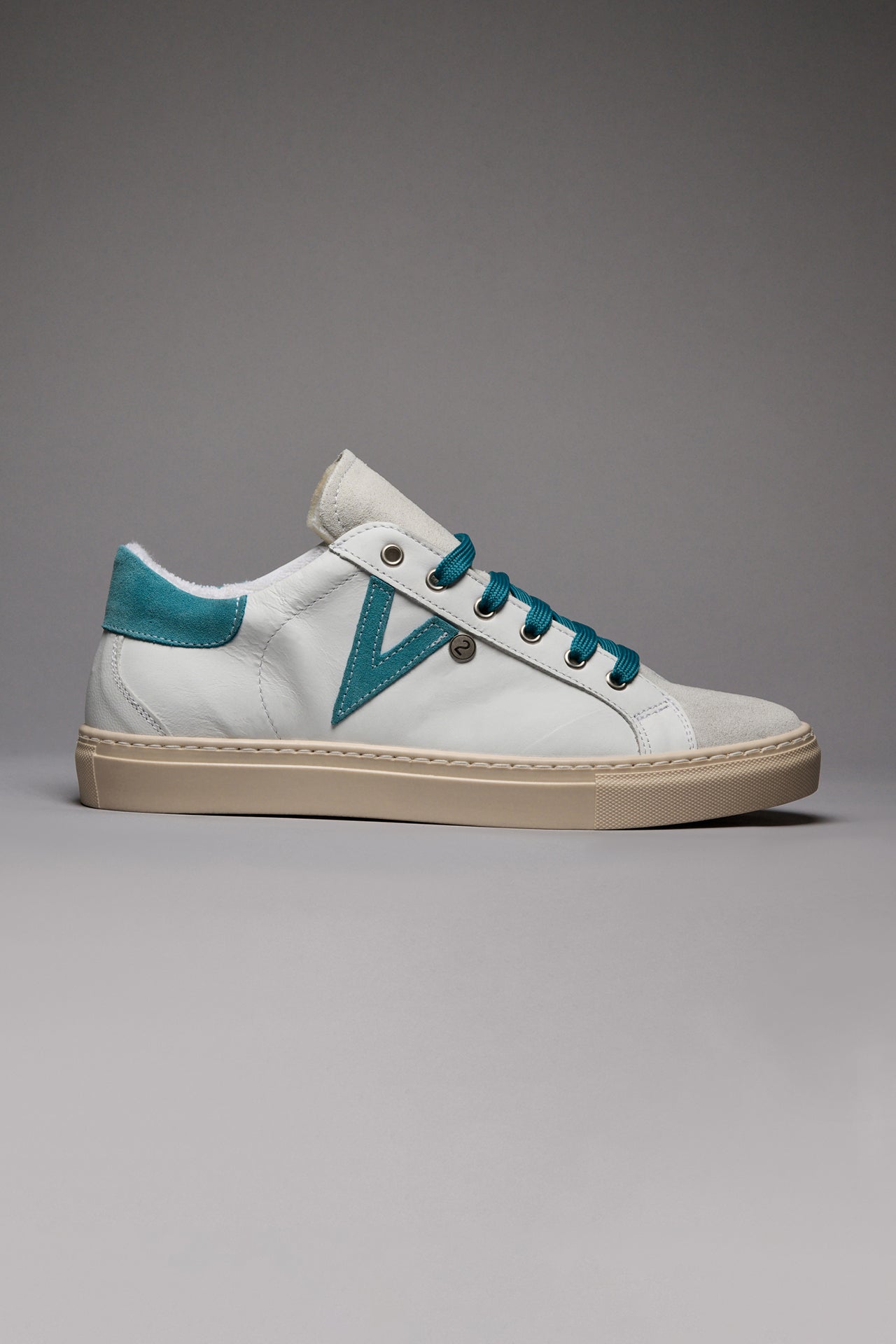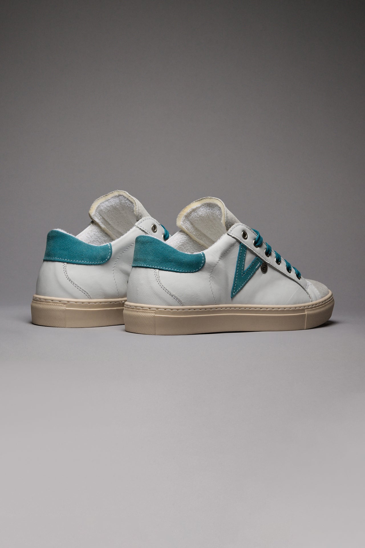 OLYMPIC - Sneakers a suola bassa Bianca con retro e inserto scamosciato Azzurro