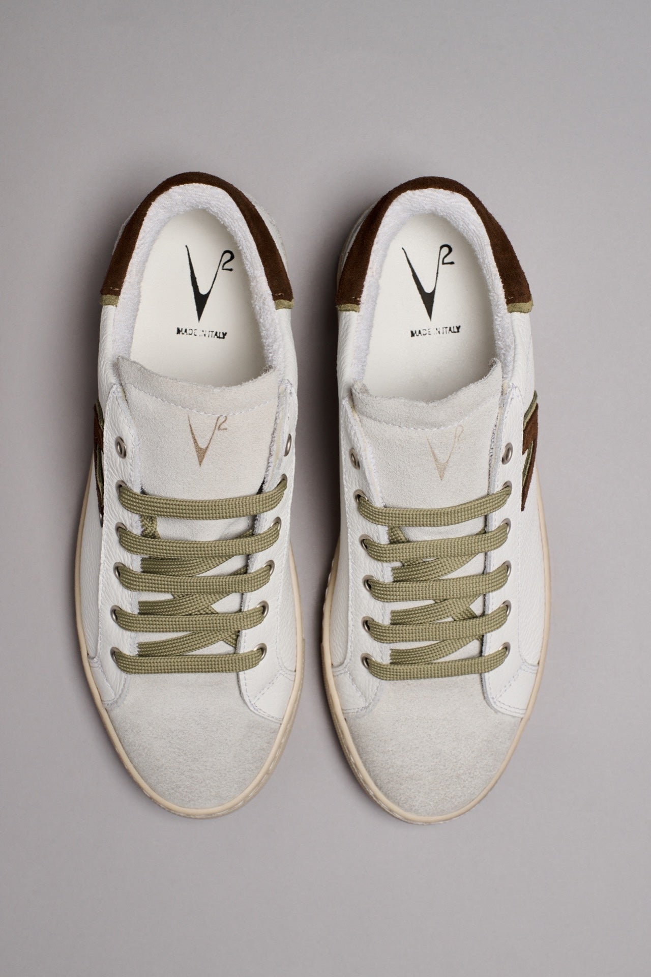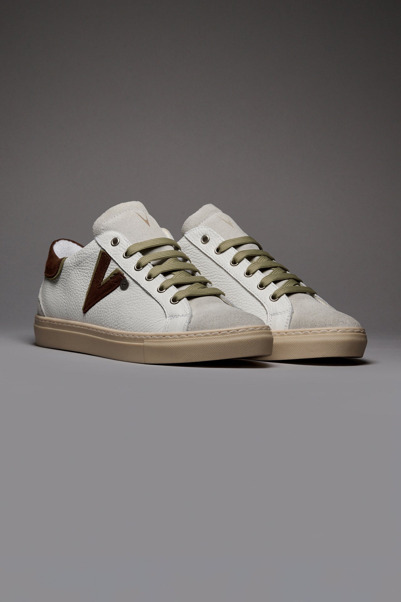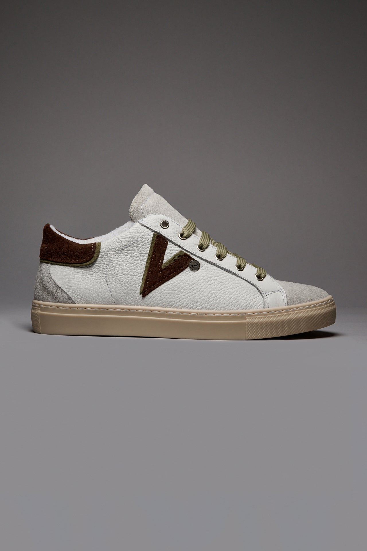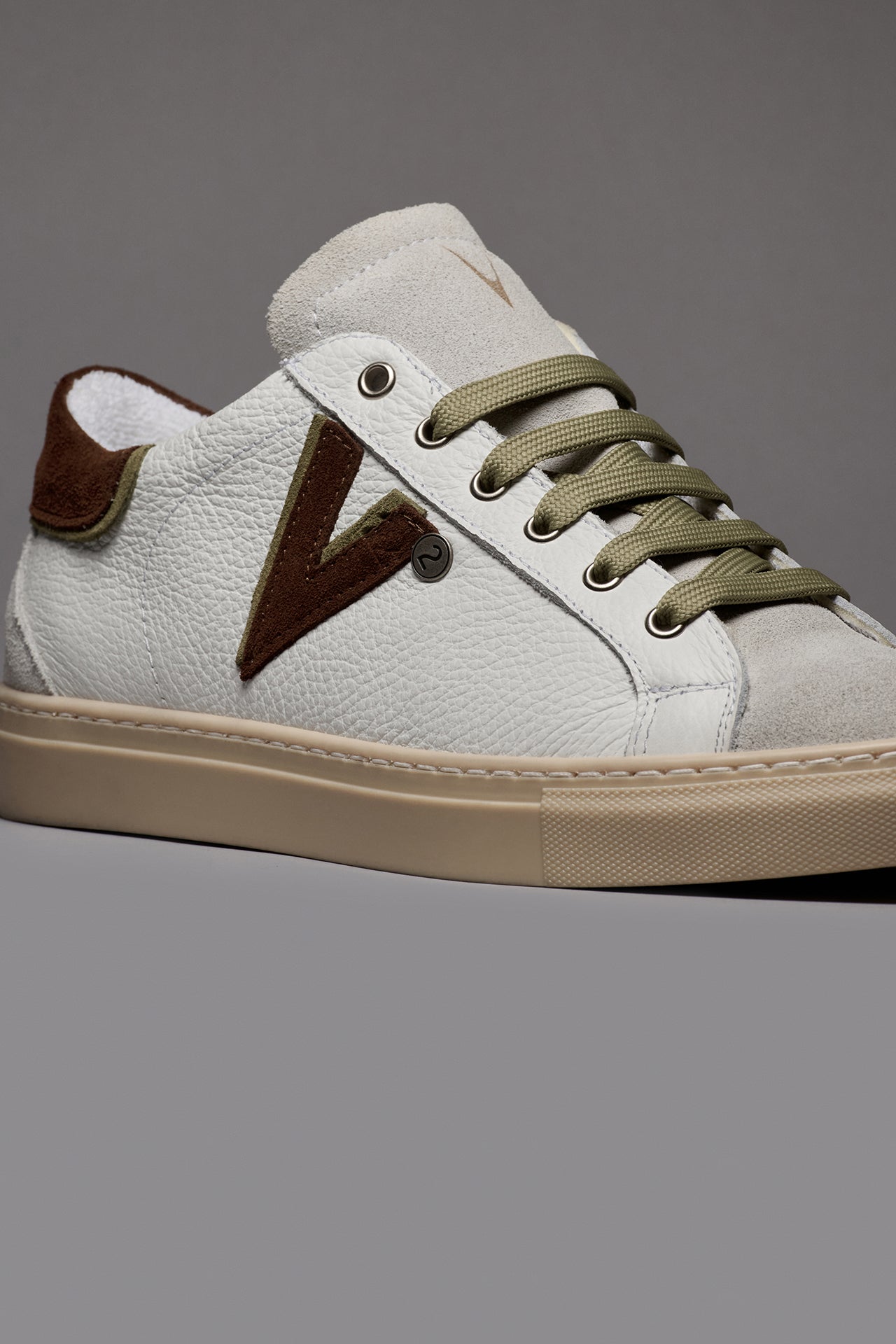 OLYMPIC V - Sneakers a suola bassa in pelle martellata con inserto e retro Bicolor Moro e Pesto