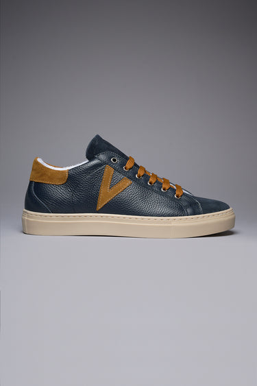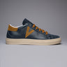 OLYMPIC - Sneakers a suola bassa in pelle martellata Blu con retro e inserto Cuoio