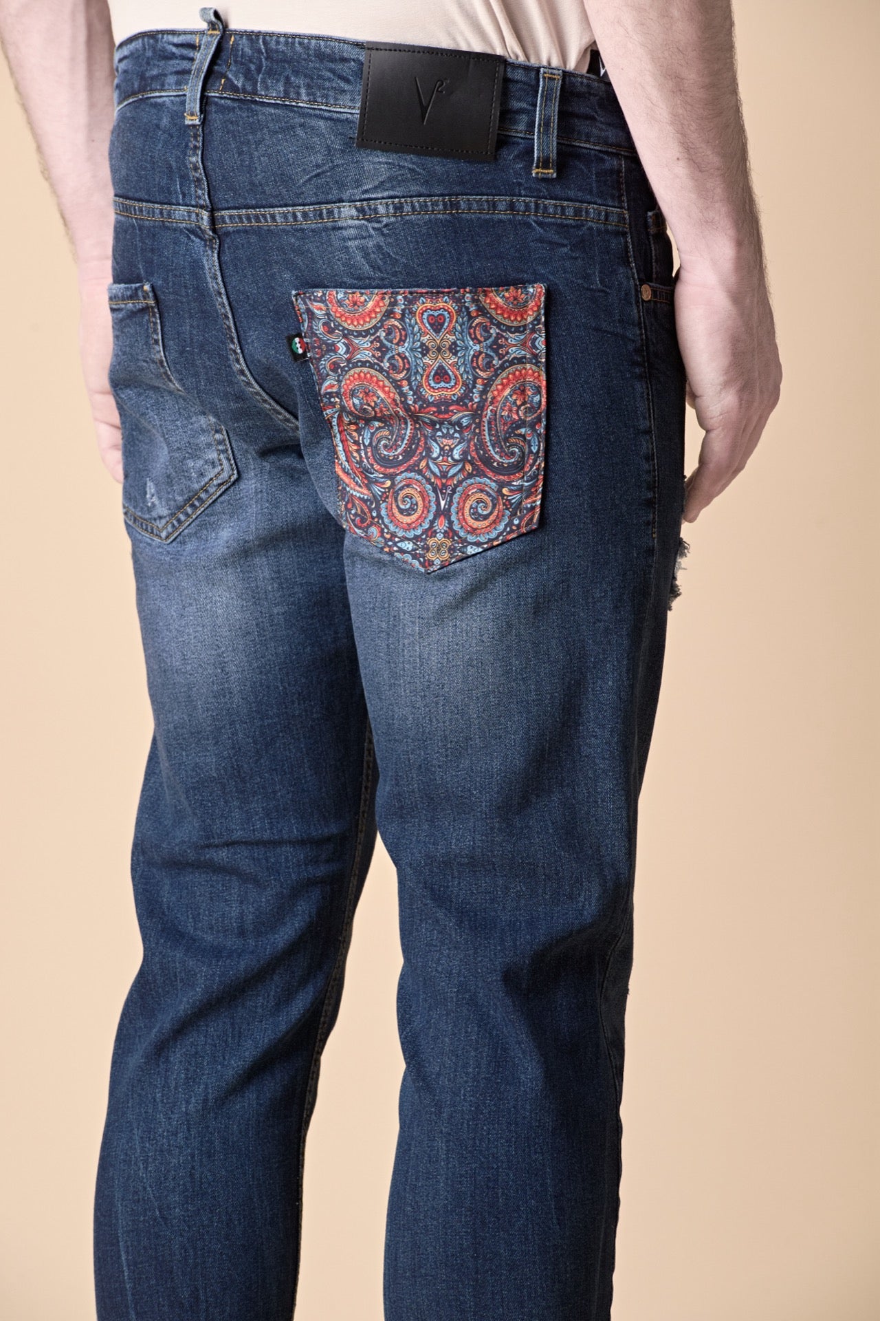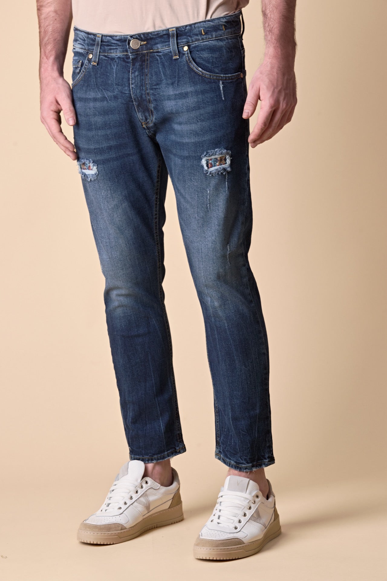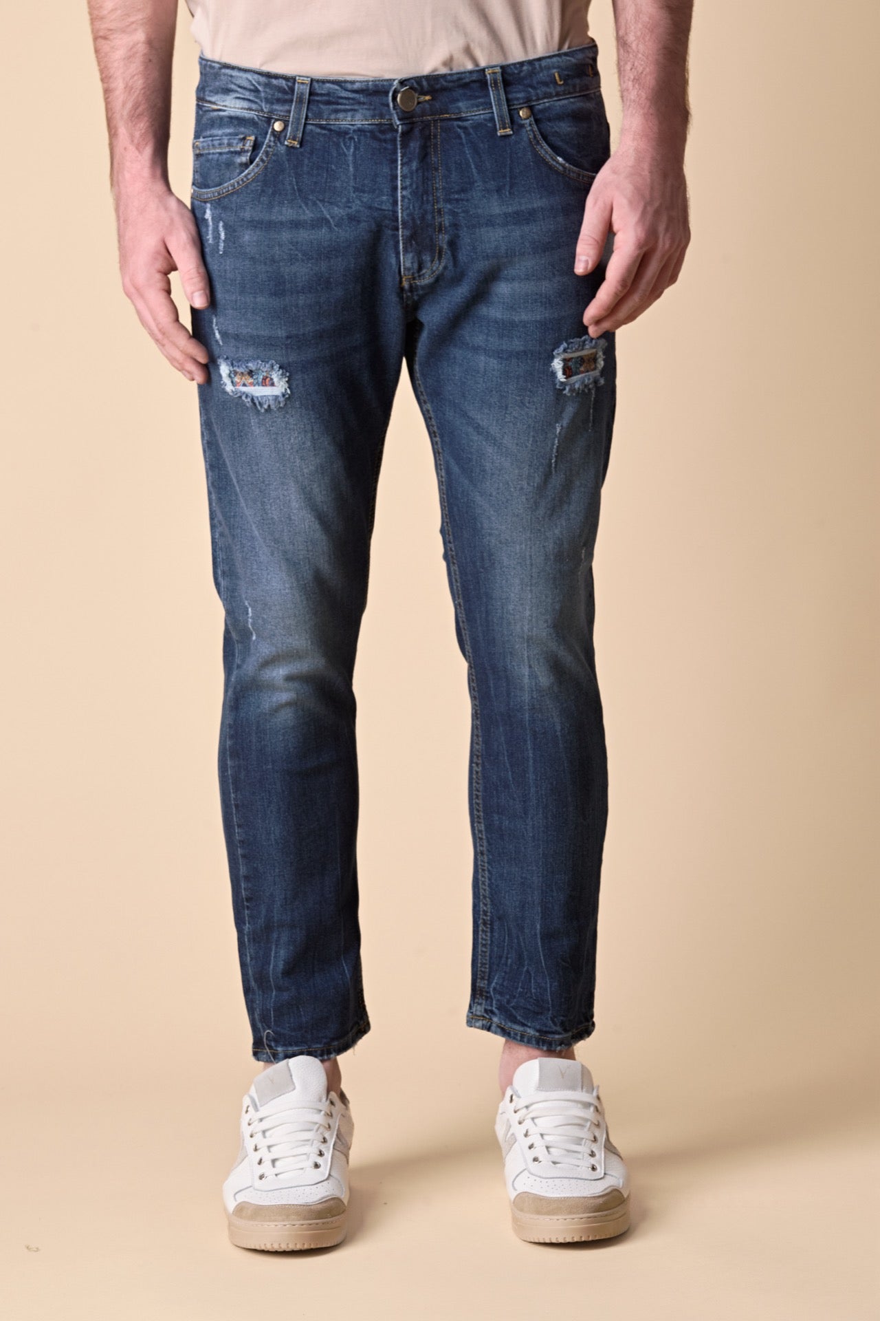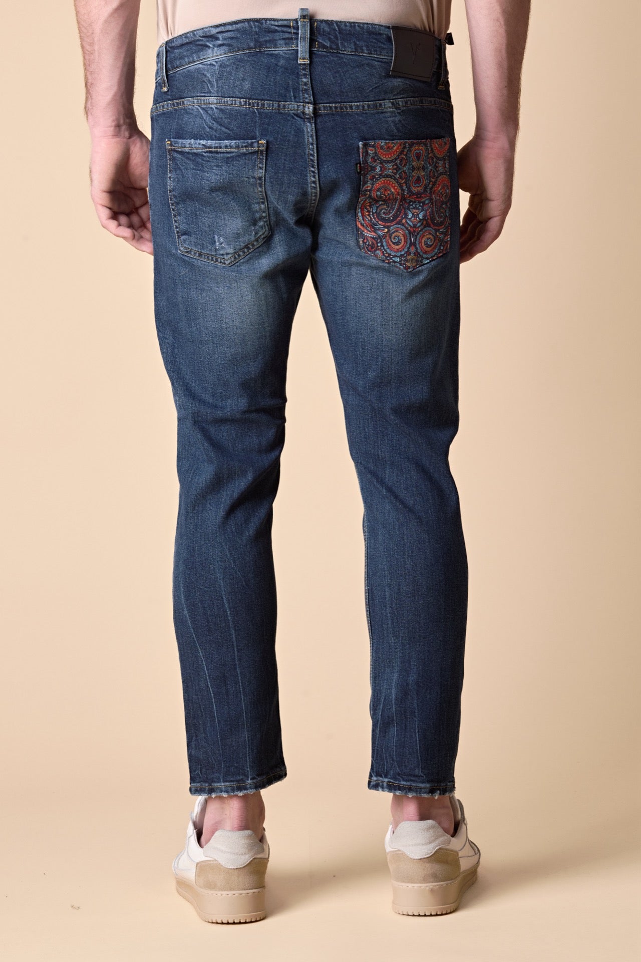 LONDON - Jeans Slim Fit - Blu con doppia Patch frontale e tasca in tessuto V2