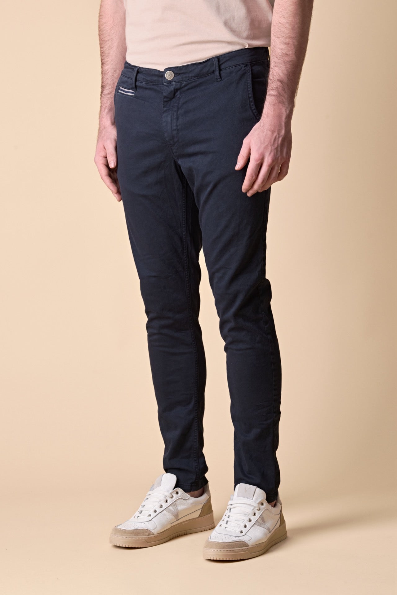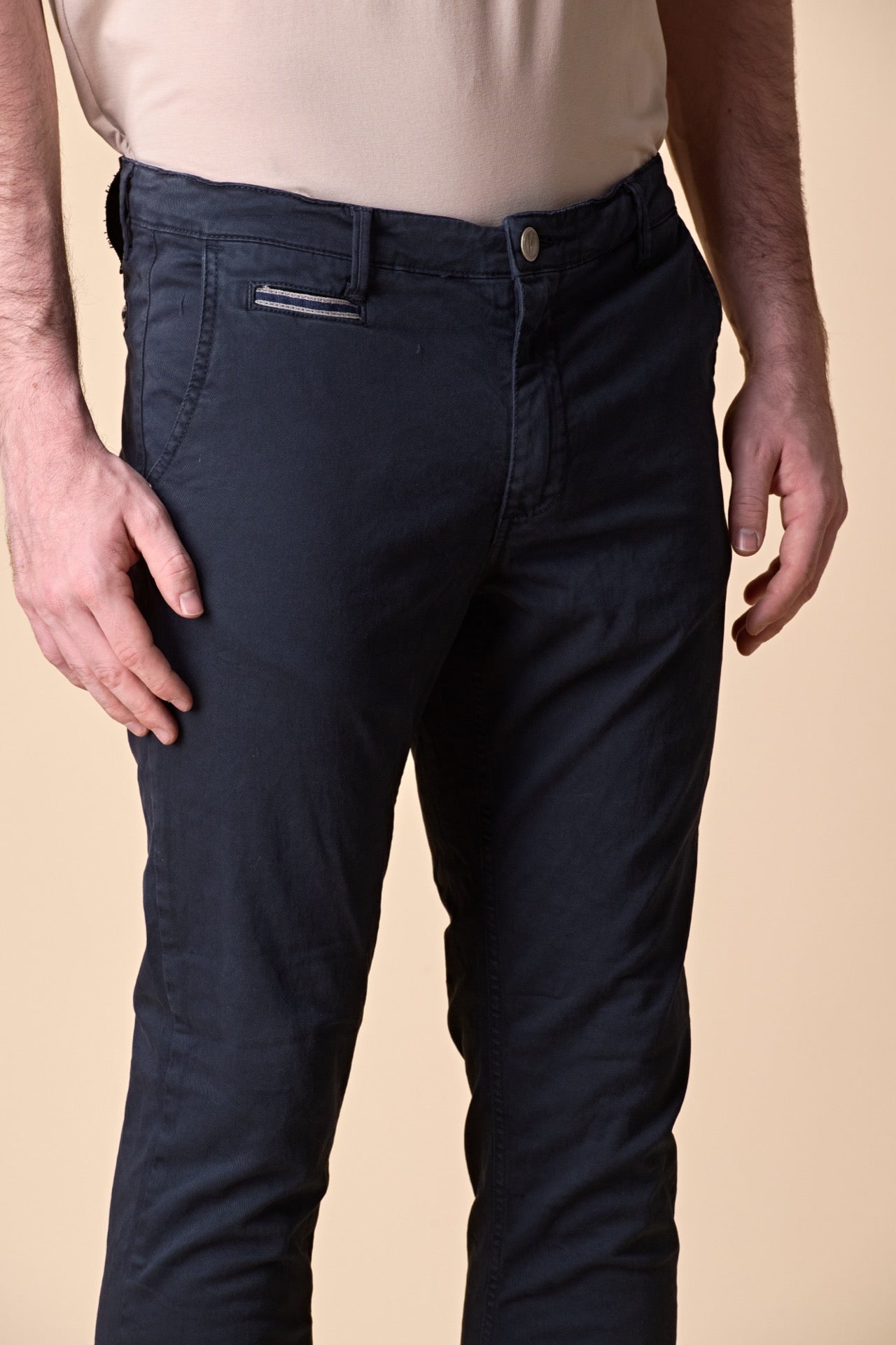 ROMA - Chino in cotone elasticizzato Blu con Salpa in tessuto V2