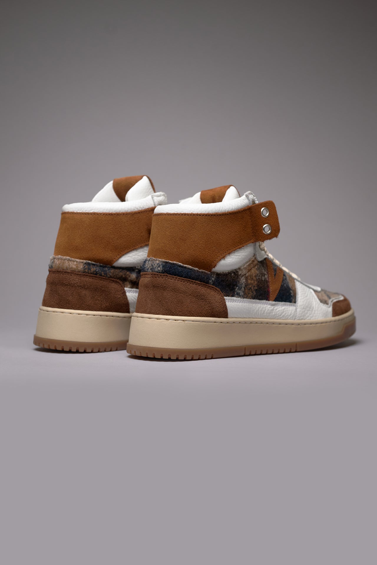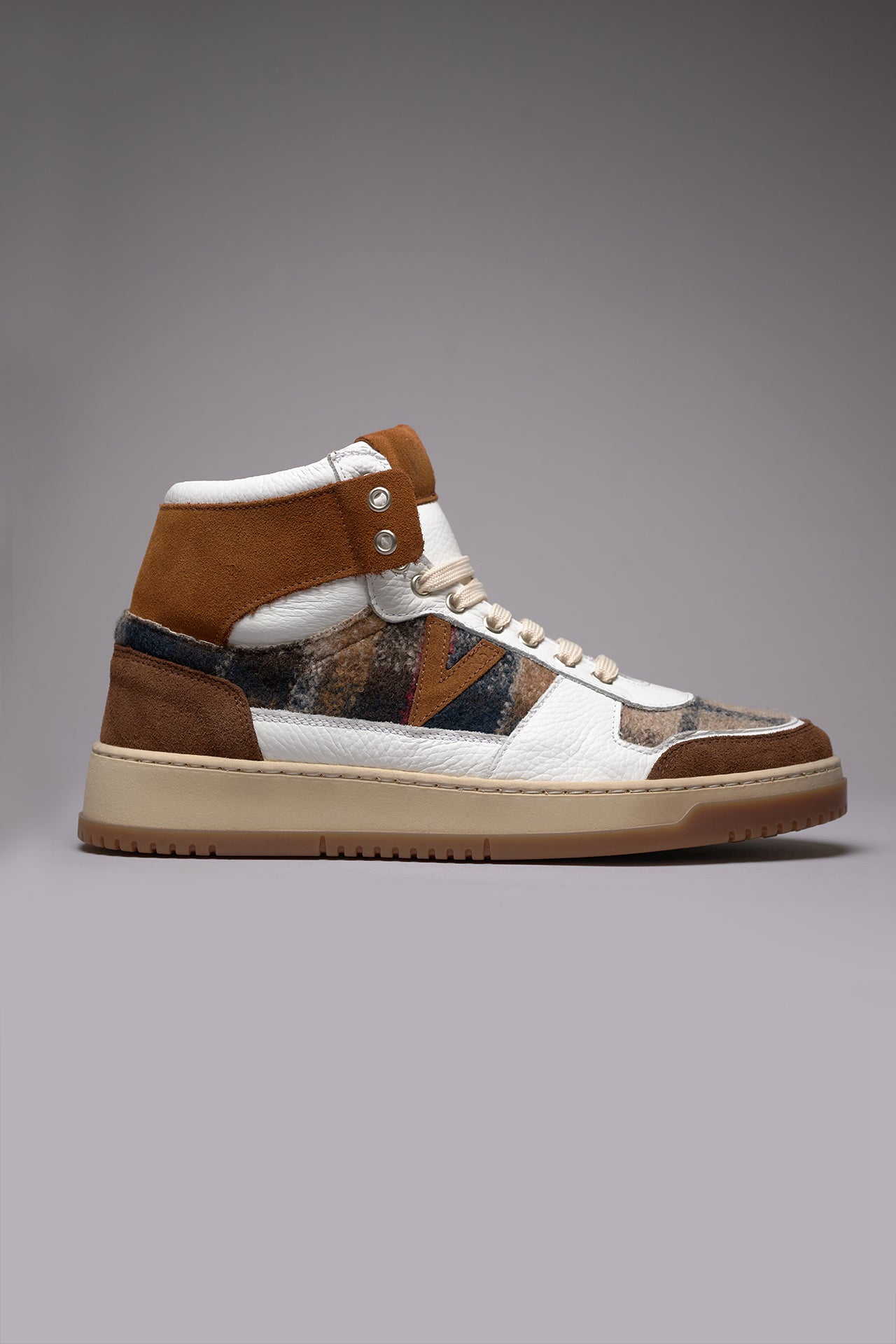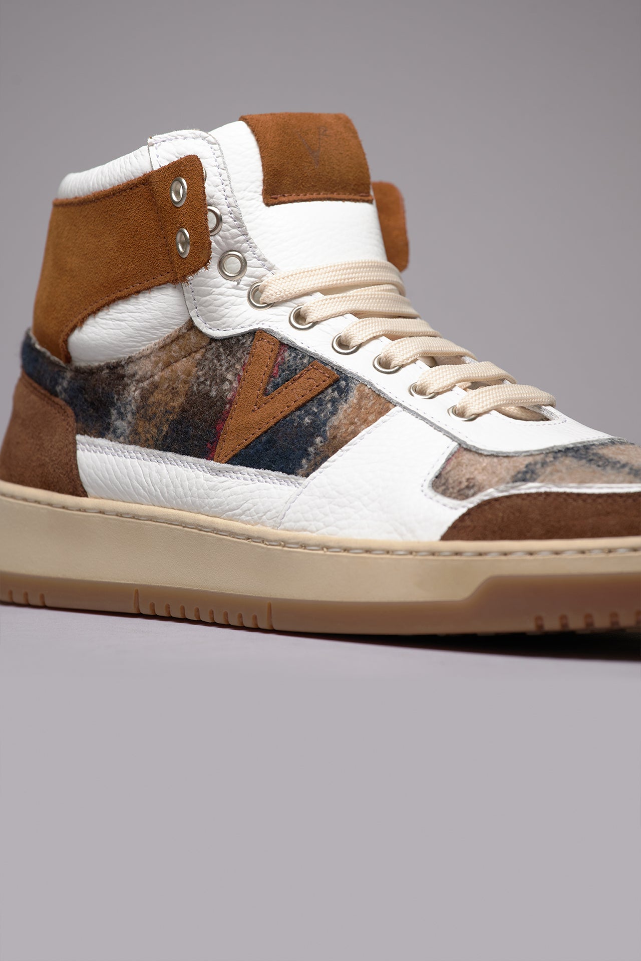 COLLEGE HIGH - Sneakers Alte Bicolor Cuoio e Moro con inserti in tessuto V2
