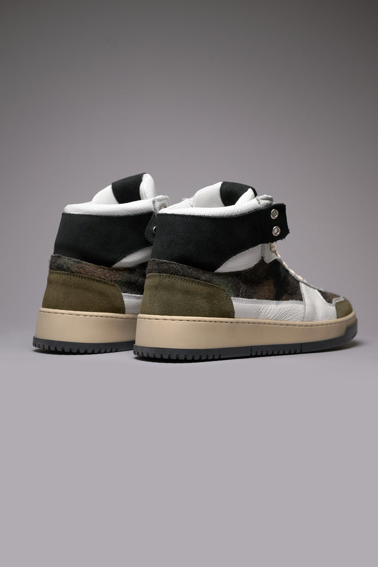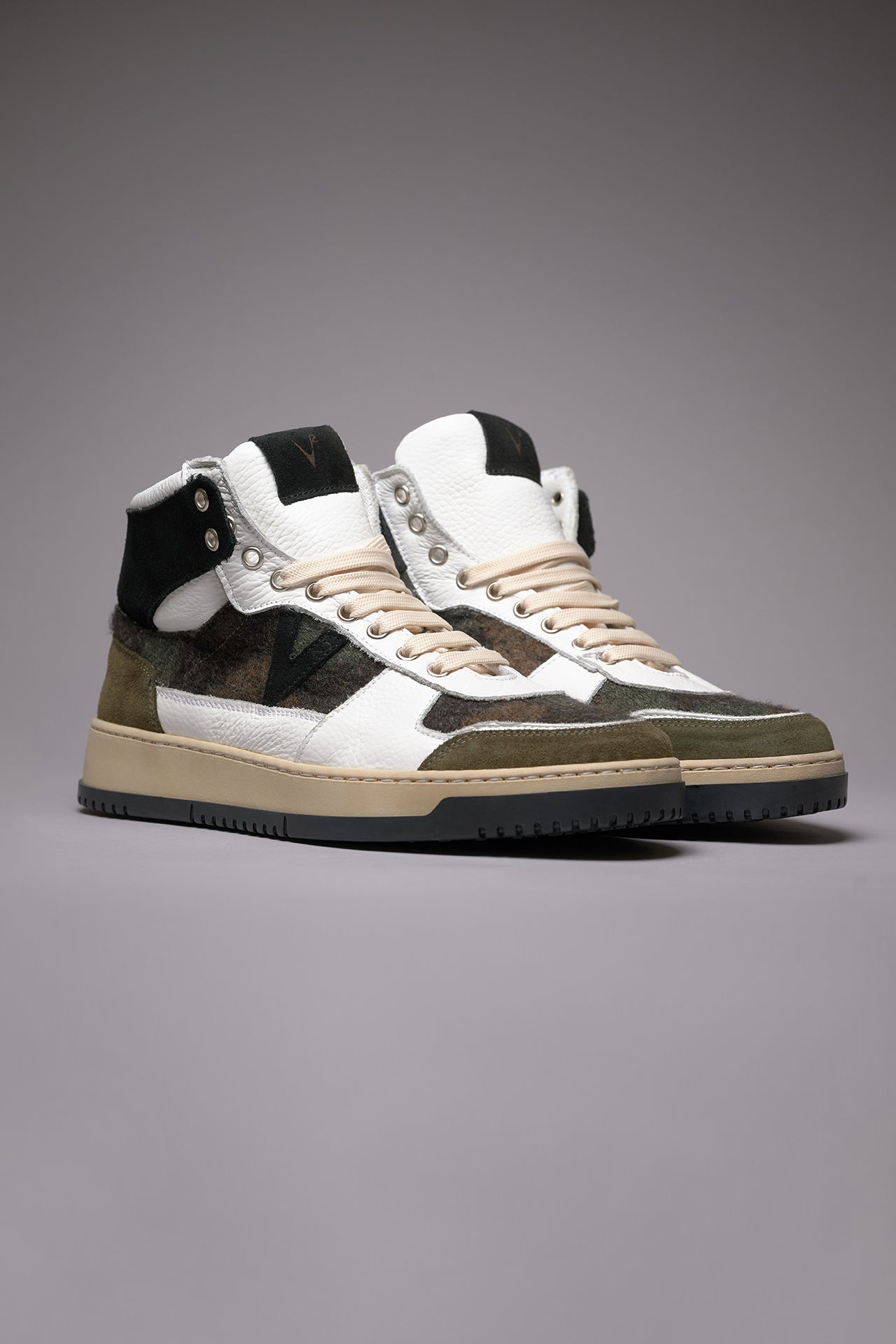 COLLEGE HIGH - Sneakers Alte Bicolor Nero e Verde Militare con inserti in tessuto V2