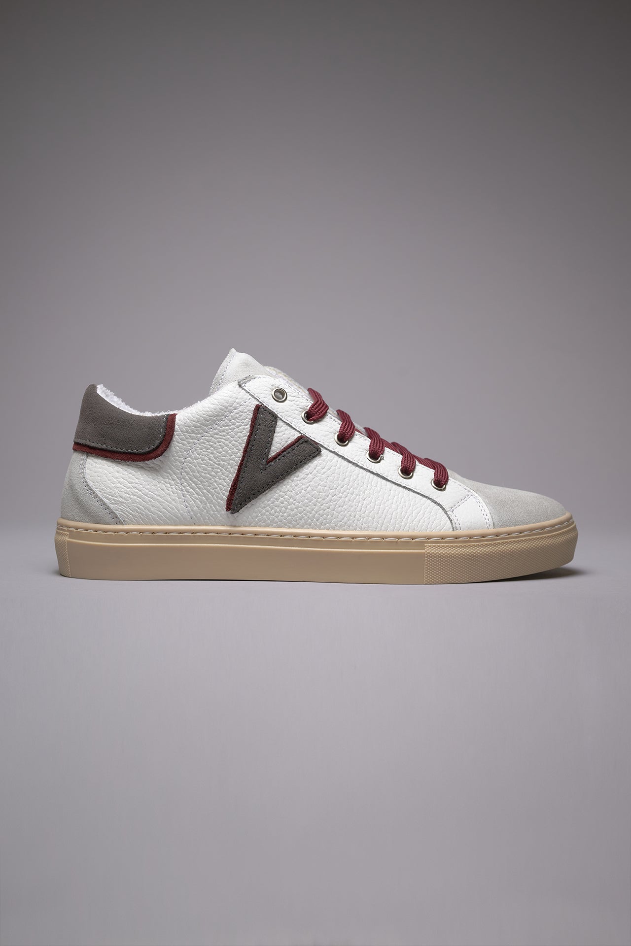 OLYMPIC V - Sneakers a suola bassa in pelle martellata con inserto e retro Bicolor Antracite e Bordeaux