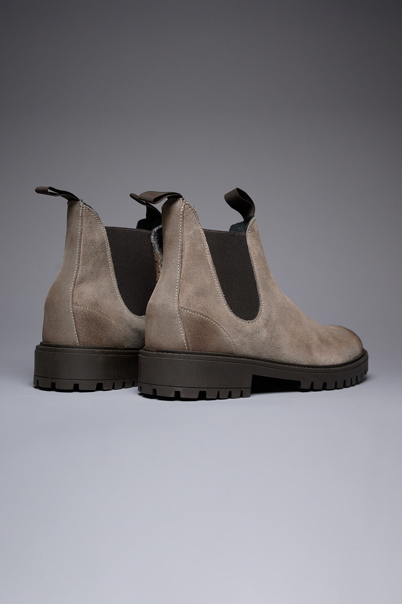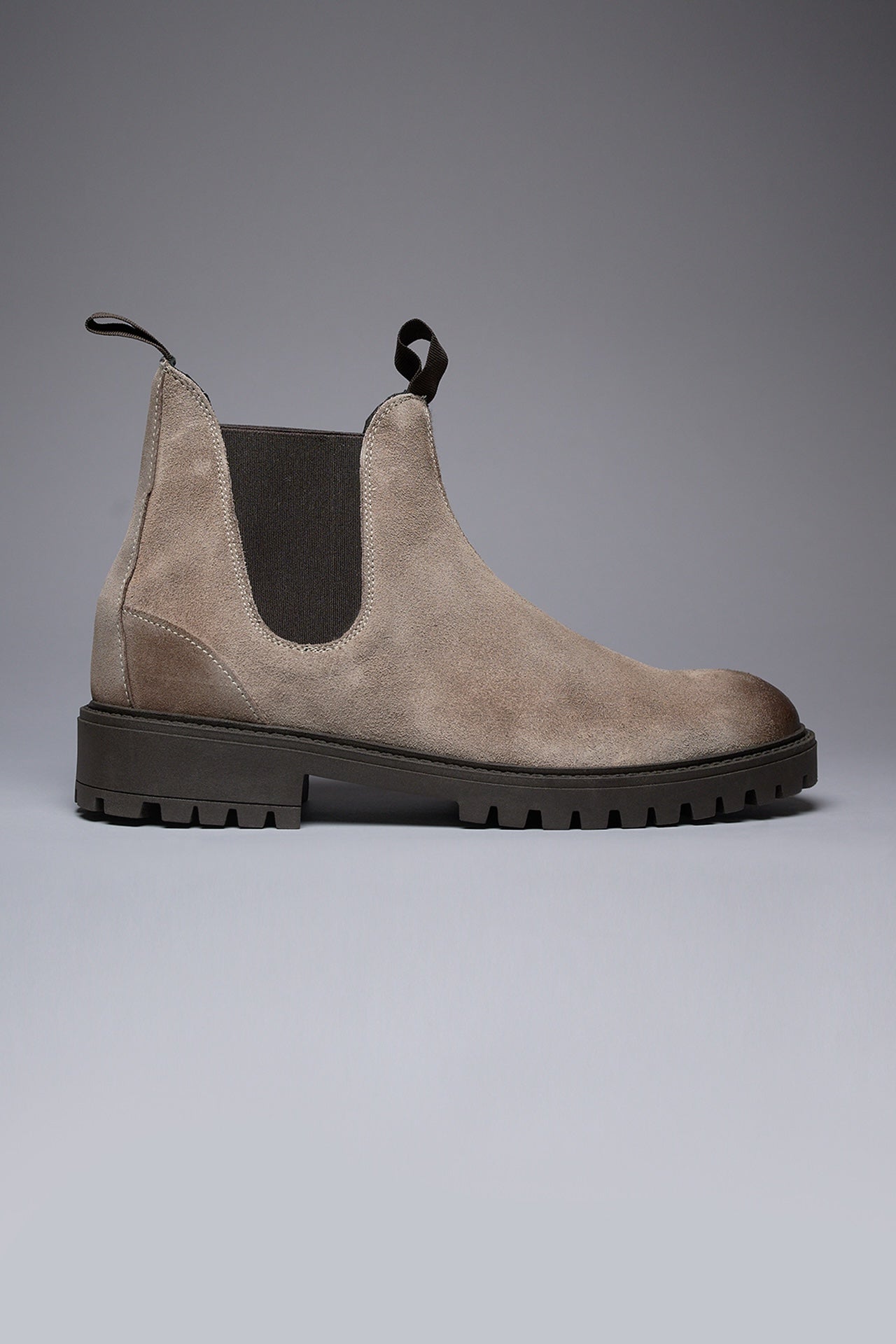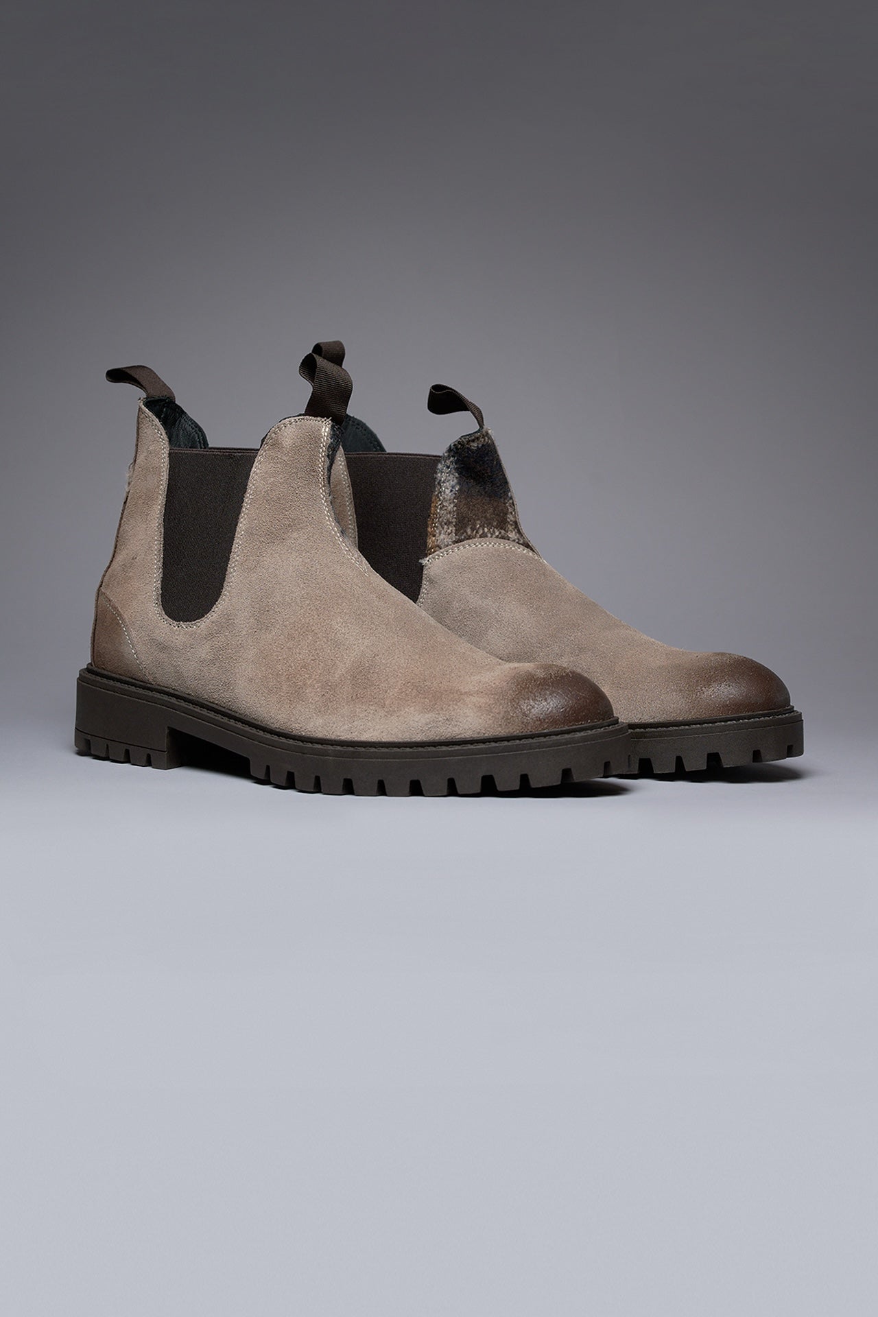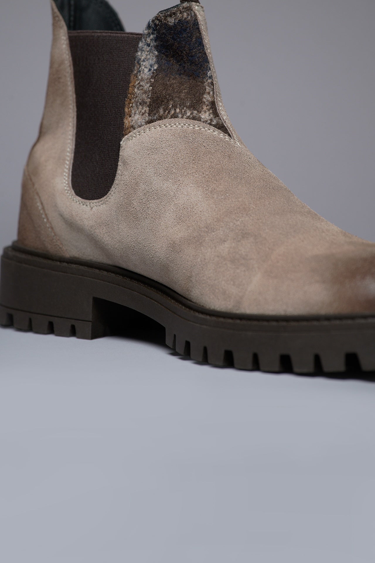 SHERLOCK - Stivaletto scamosciato Tortora con inserto in tessuto V2