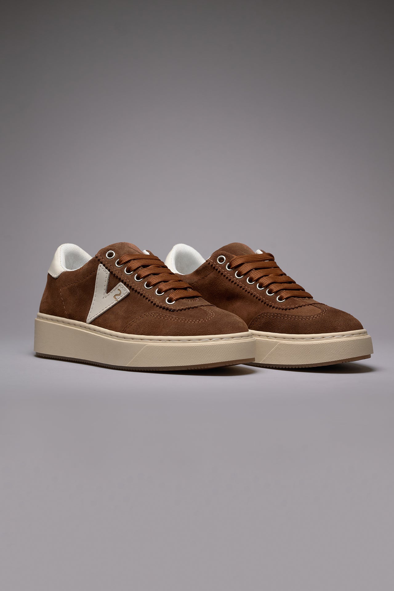 SUÈDE - Sneakers in pelle scamosciata Moro con inserti e retro Bianco