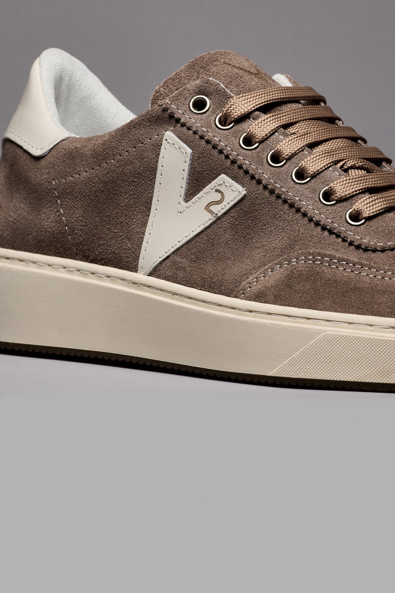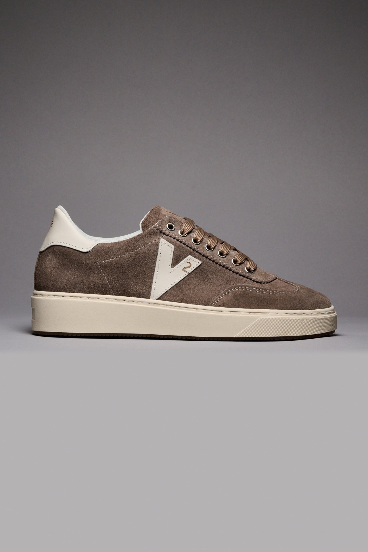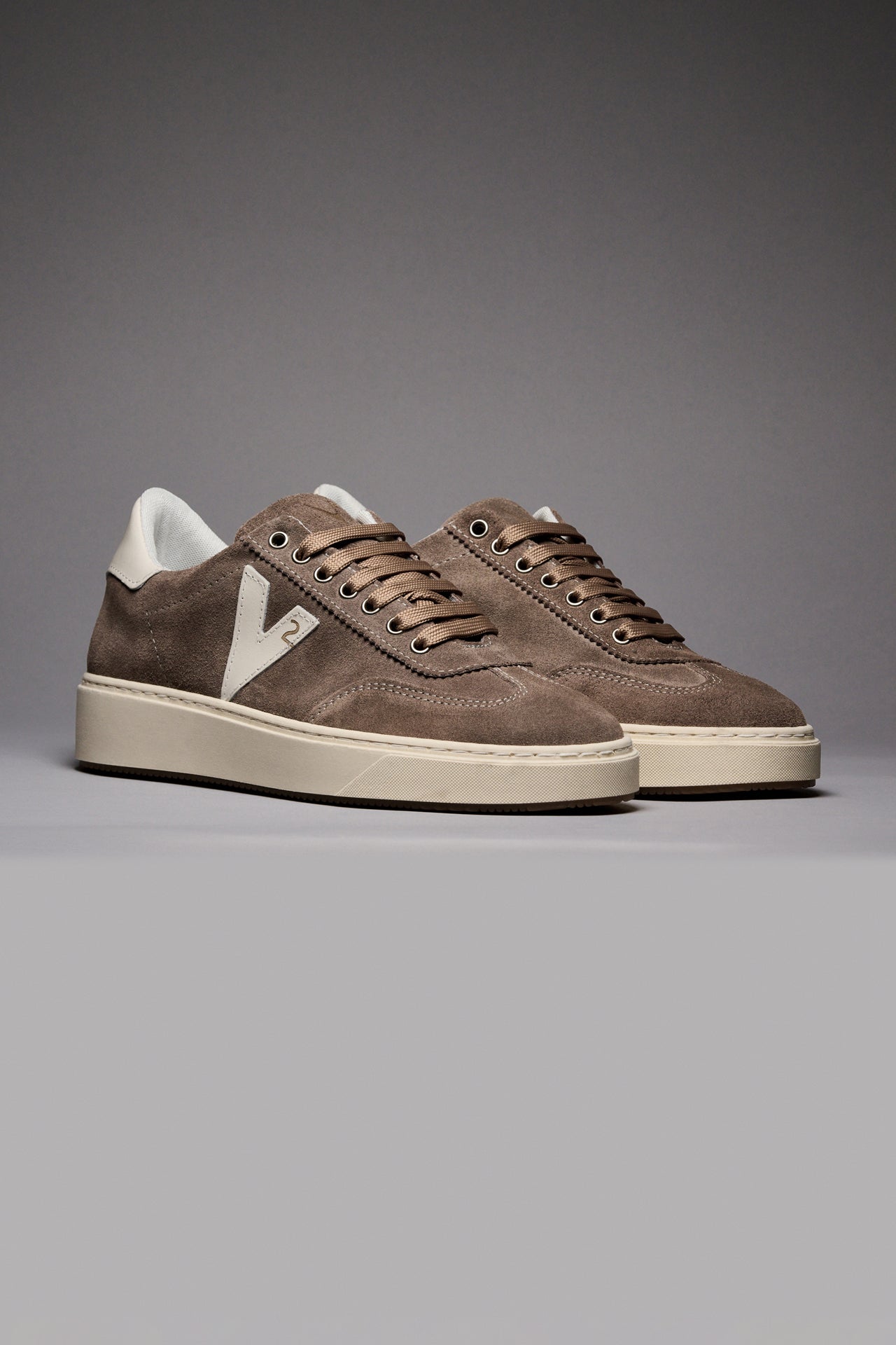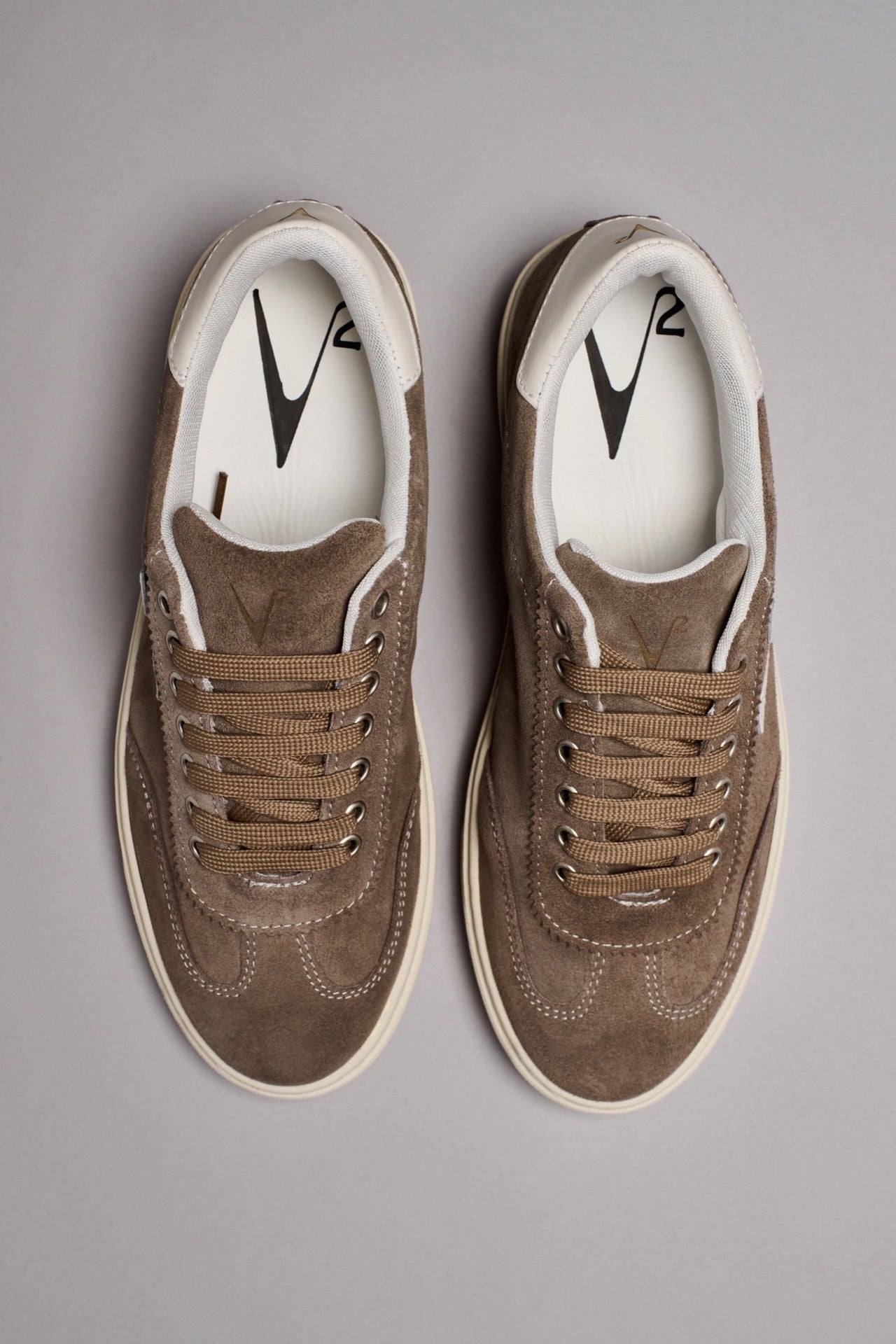 SUÈDE - Sneakers in pelle scamosciata Tortora con inserti e retro Bianco