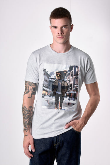 T-Shirt Grigia con stampa Teddy e ricamo in tessuto V2