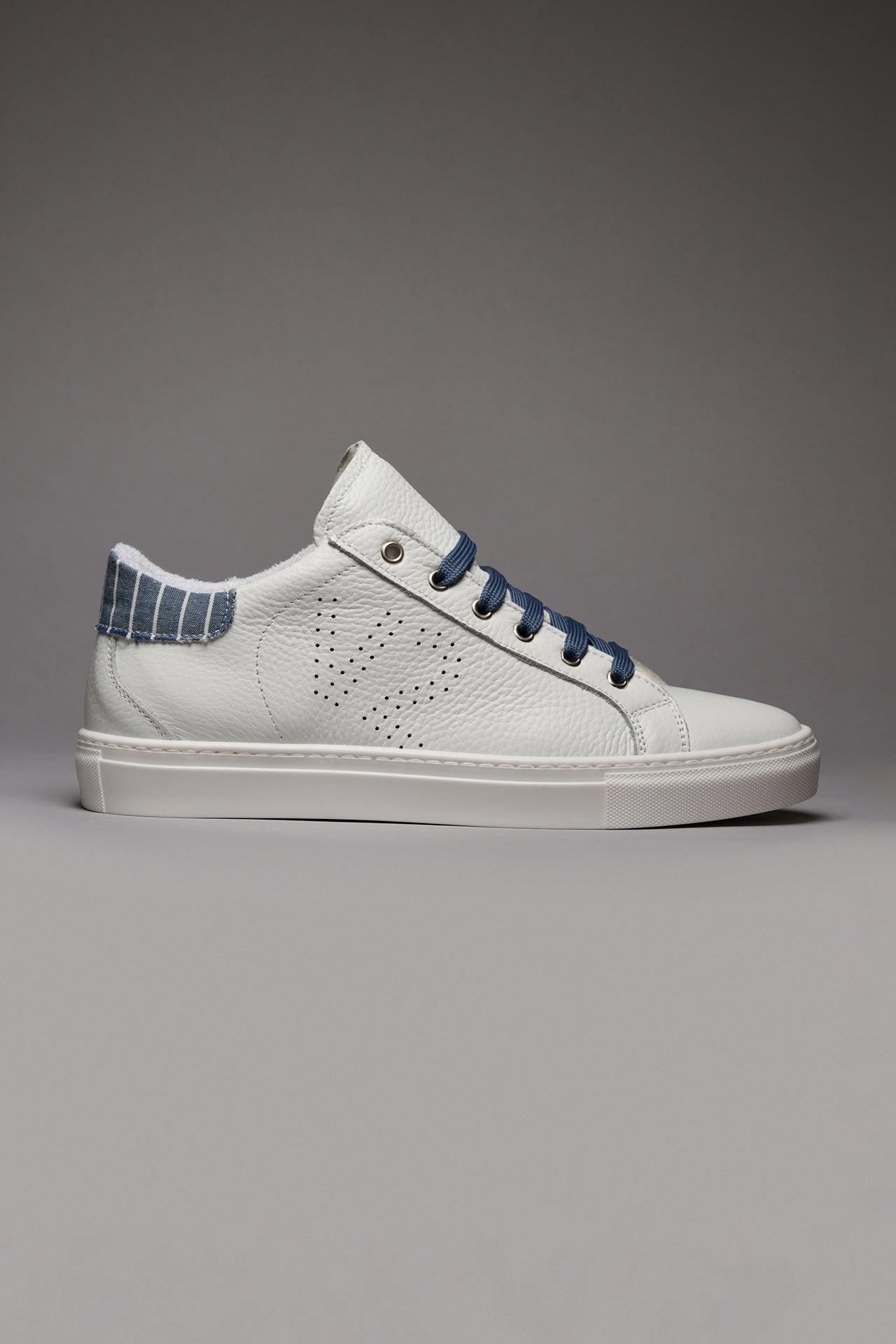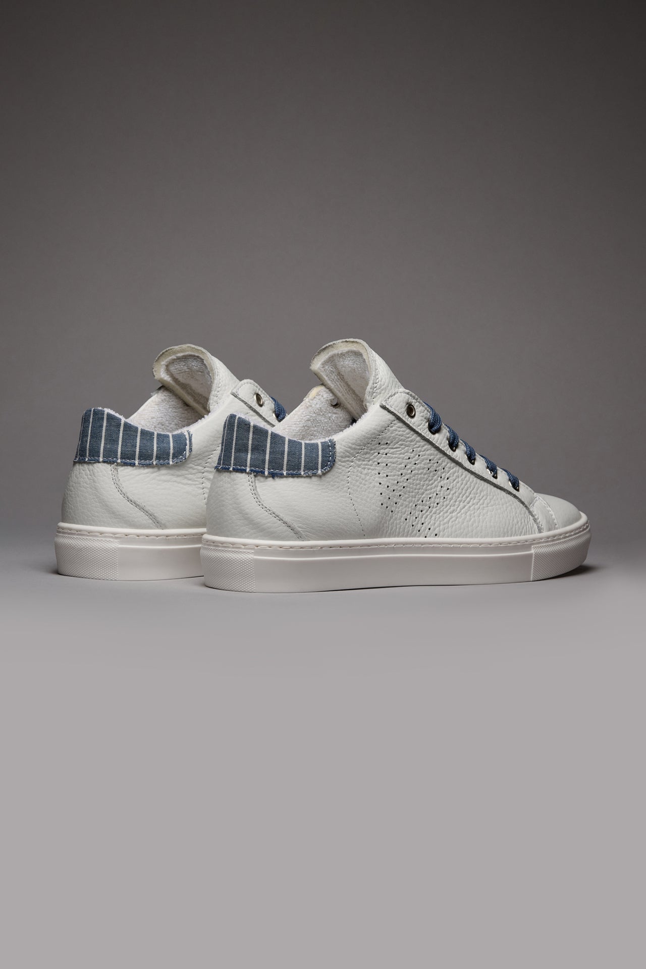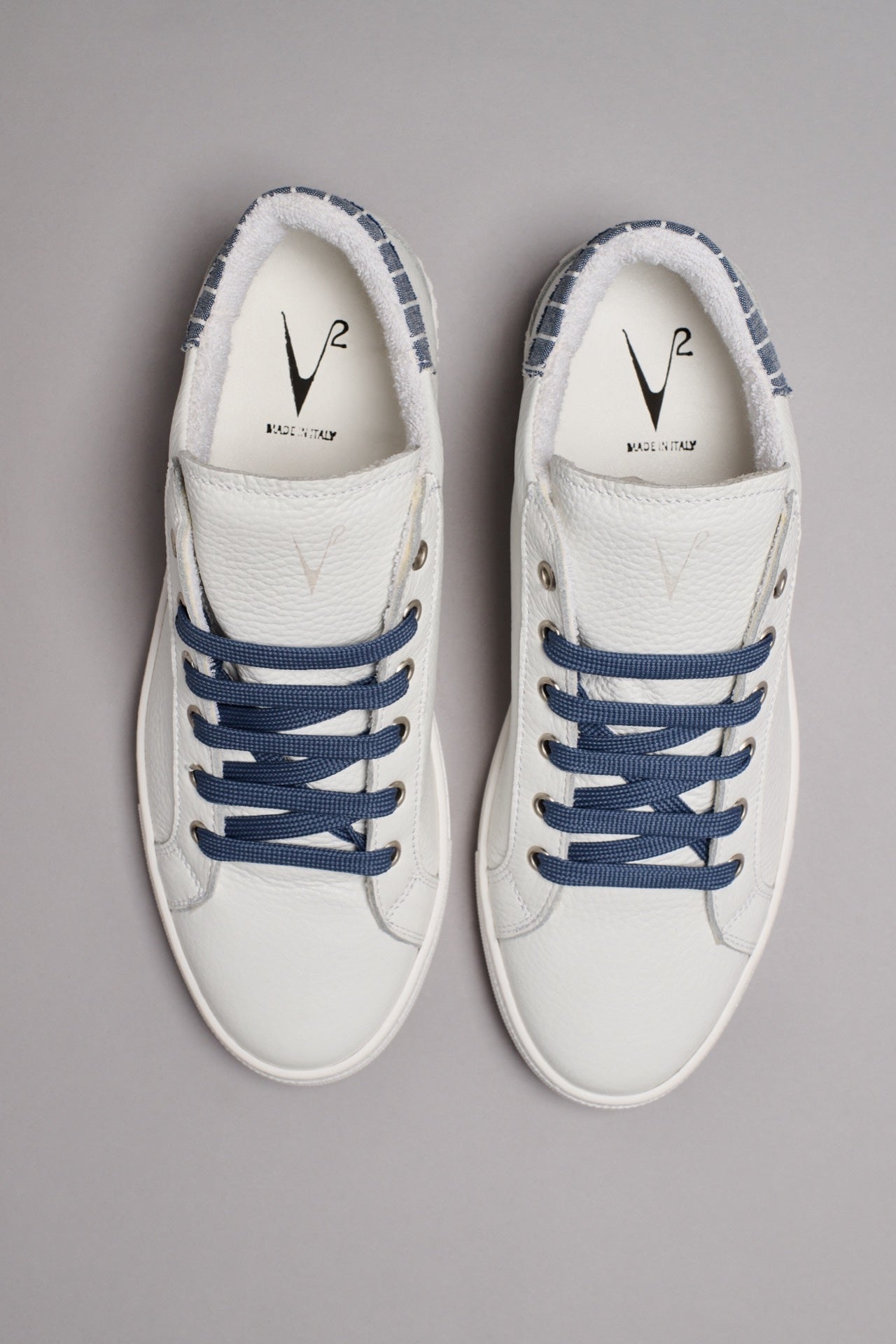 TENNIS - Sneakers a suola bassa Bianca con retro in tessuto Gessato Blu