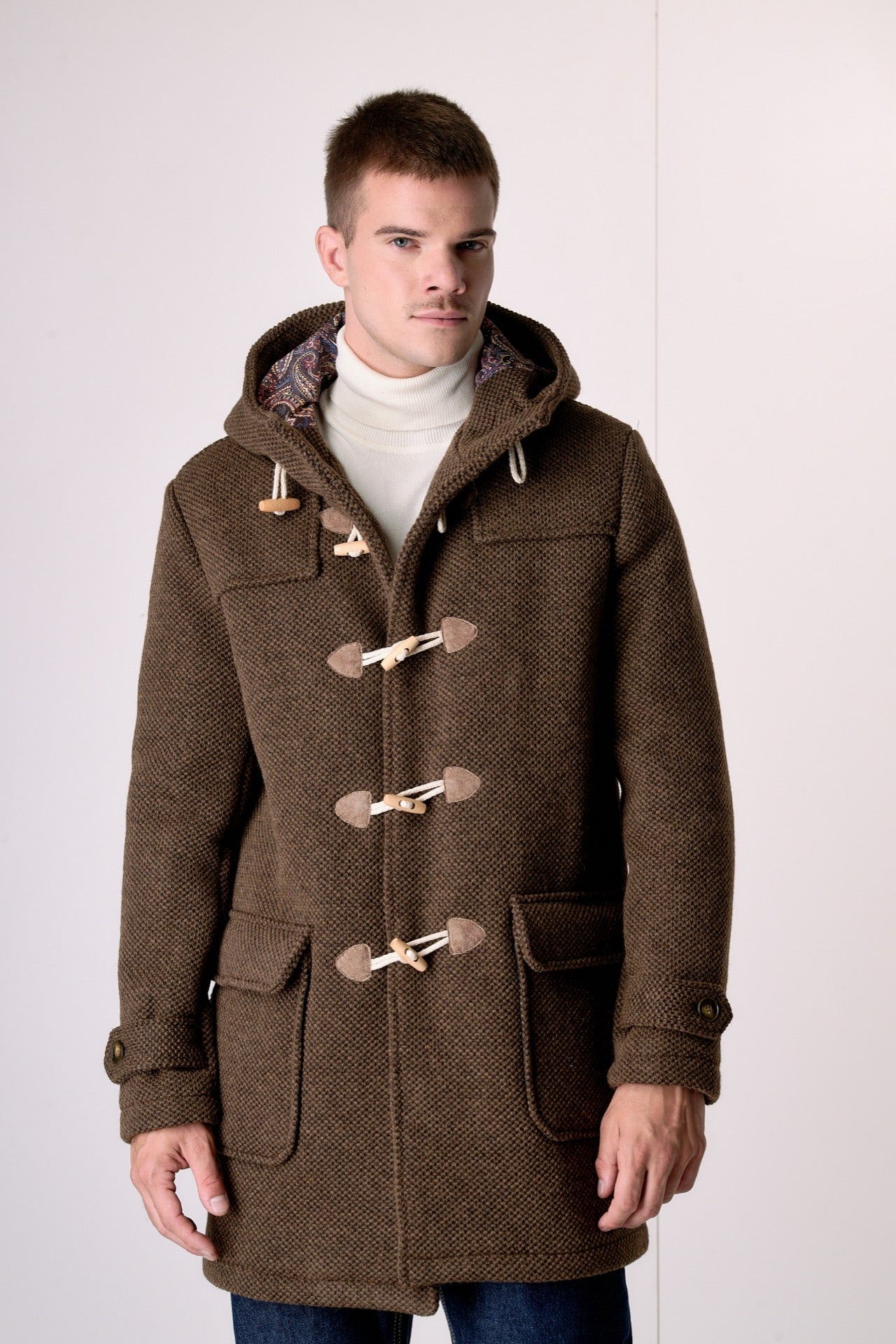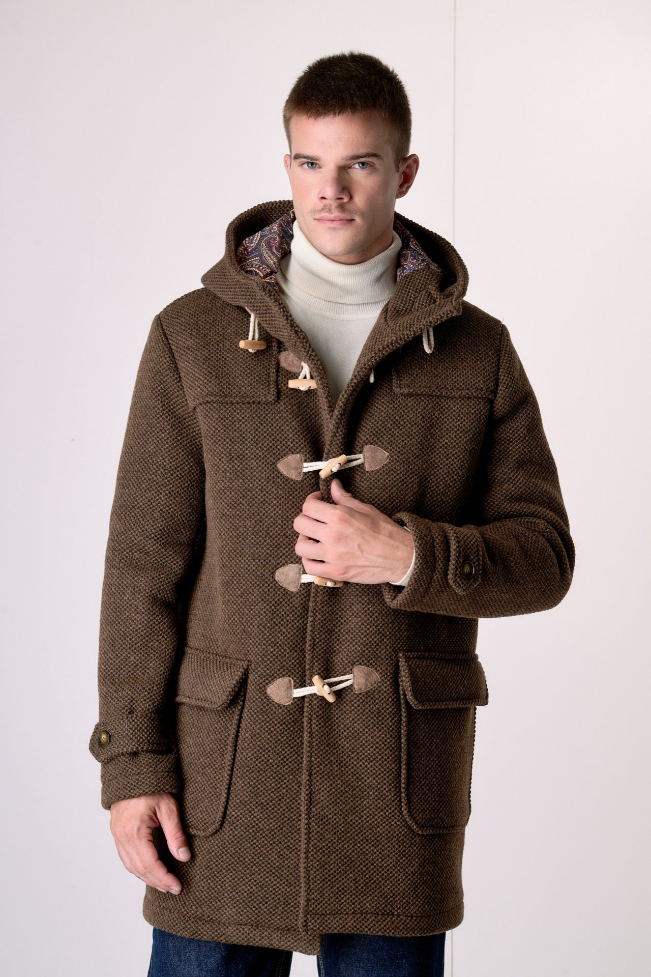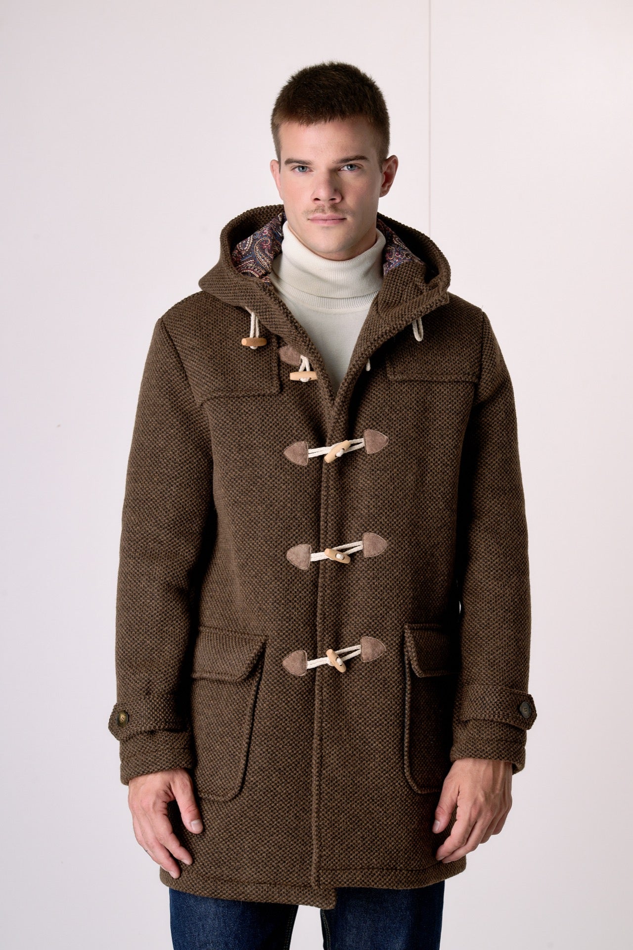 A garment that guarantees comfort and protection against the cold. The iconic toggle closure and adjustable hood add a distinctive touch, making it a practical and versatile piece. The rice stitch embellishes the garment, giving it a beautiful three-dimensional and voluminous effect.