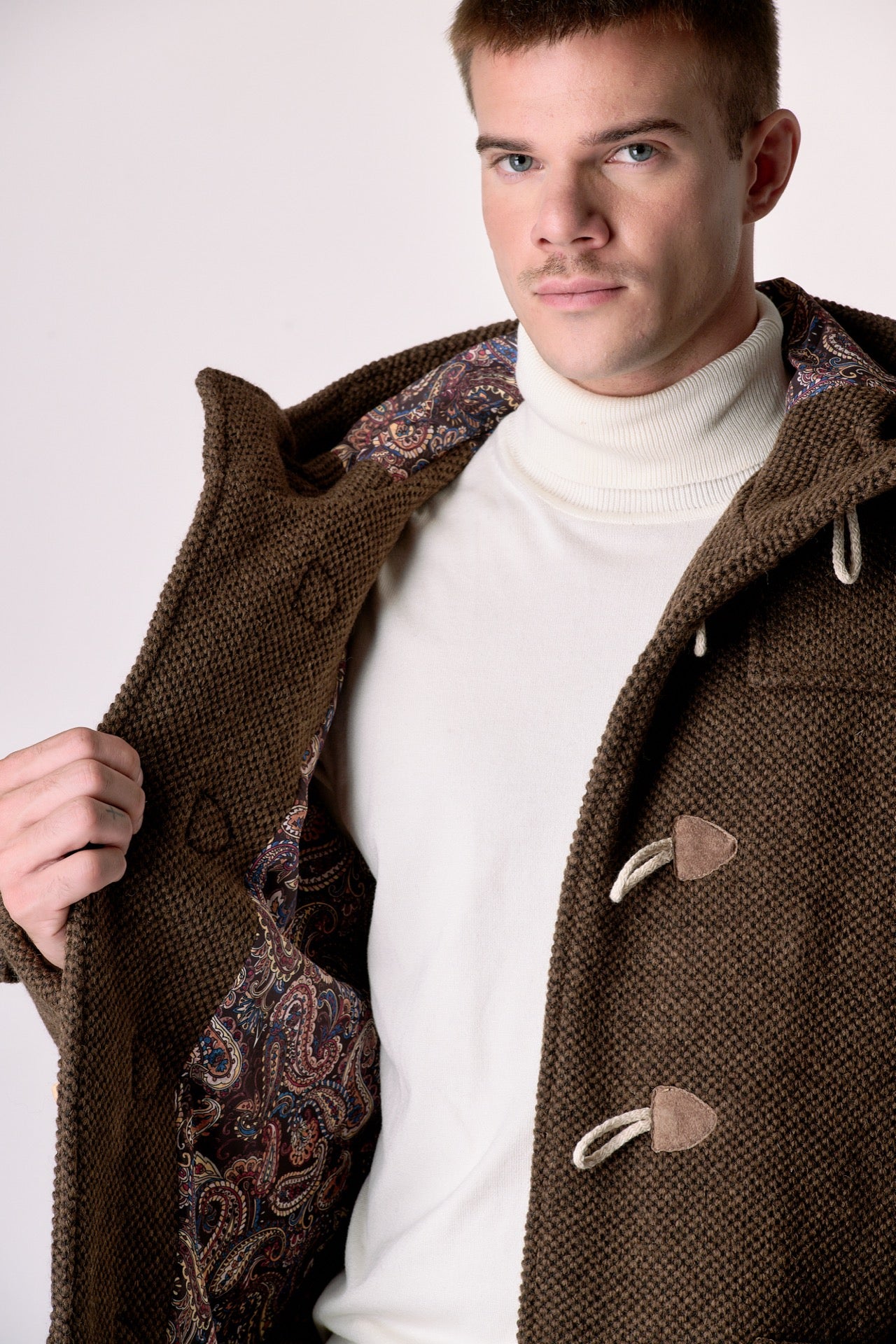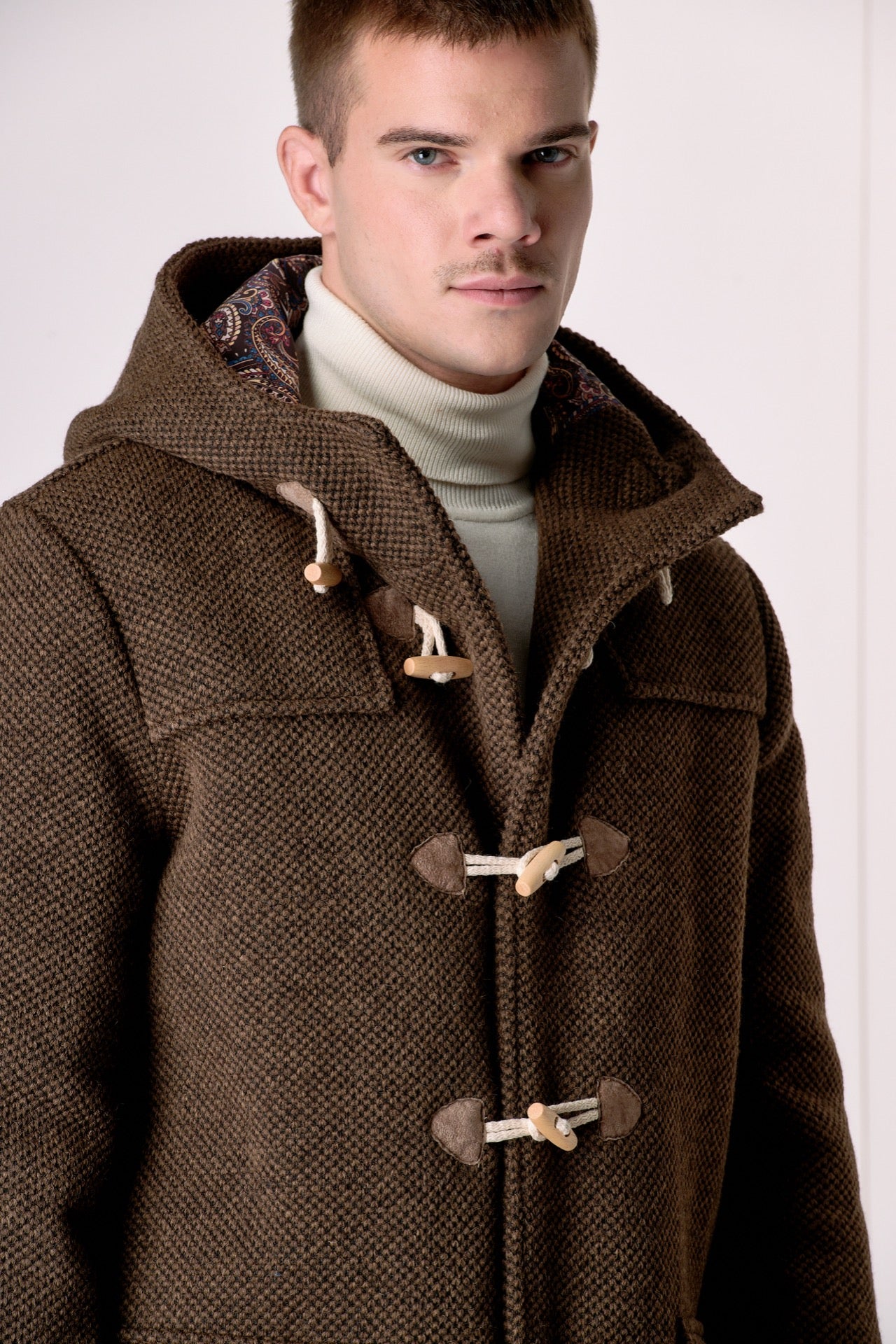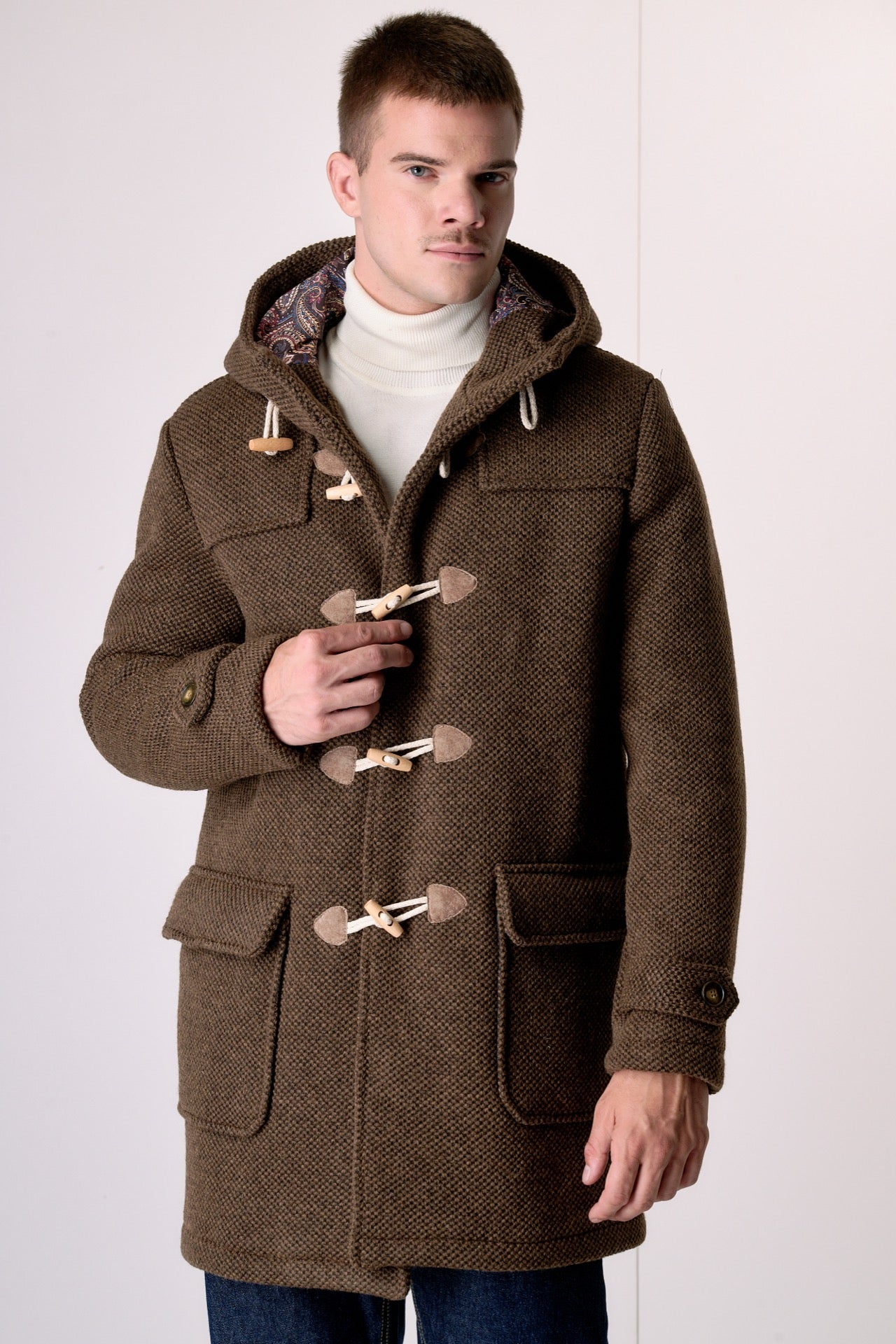 A garment that guarantees comfort and protection against the cold. The iconic toggle closure and adjustable hood add a distinctive touch, making it a practical and versatile piece. The rice stitch embellishes the garment, giving it a beautiful three-dimensional and voluminous effect.
