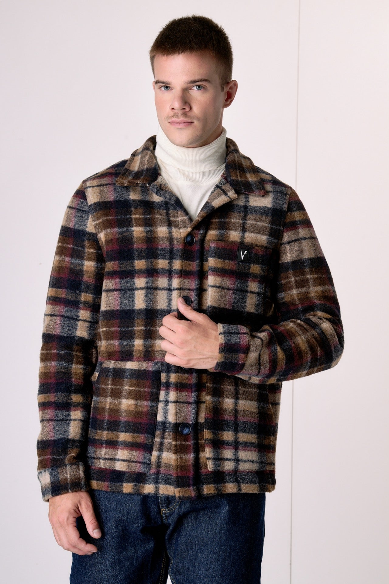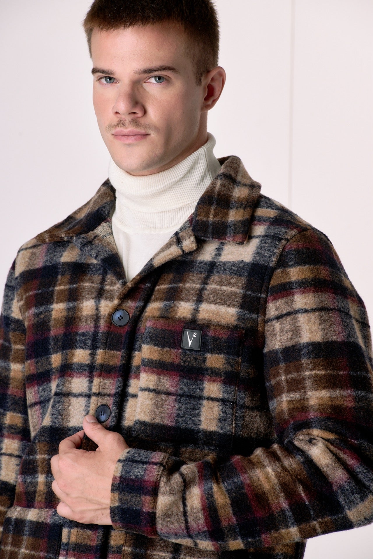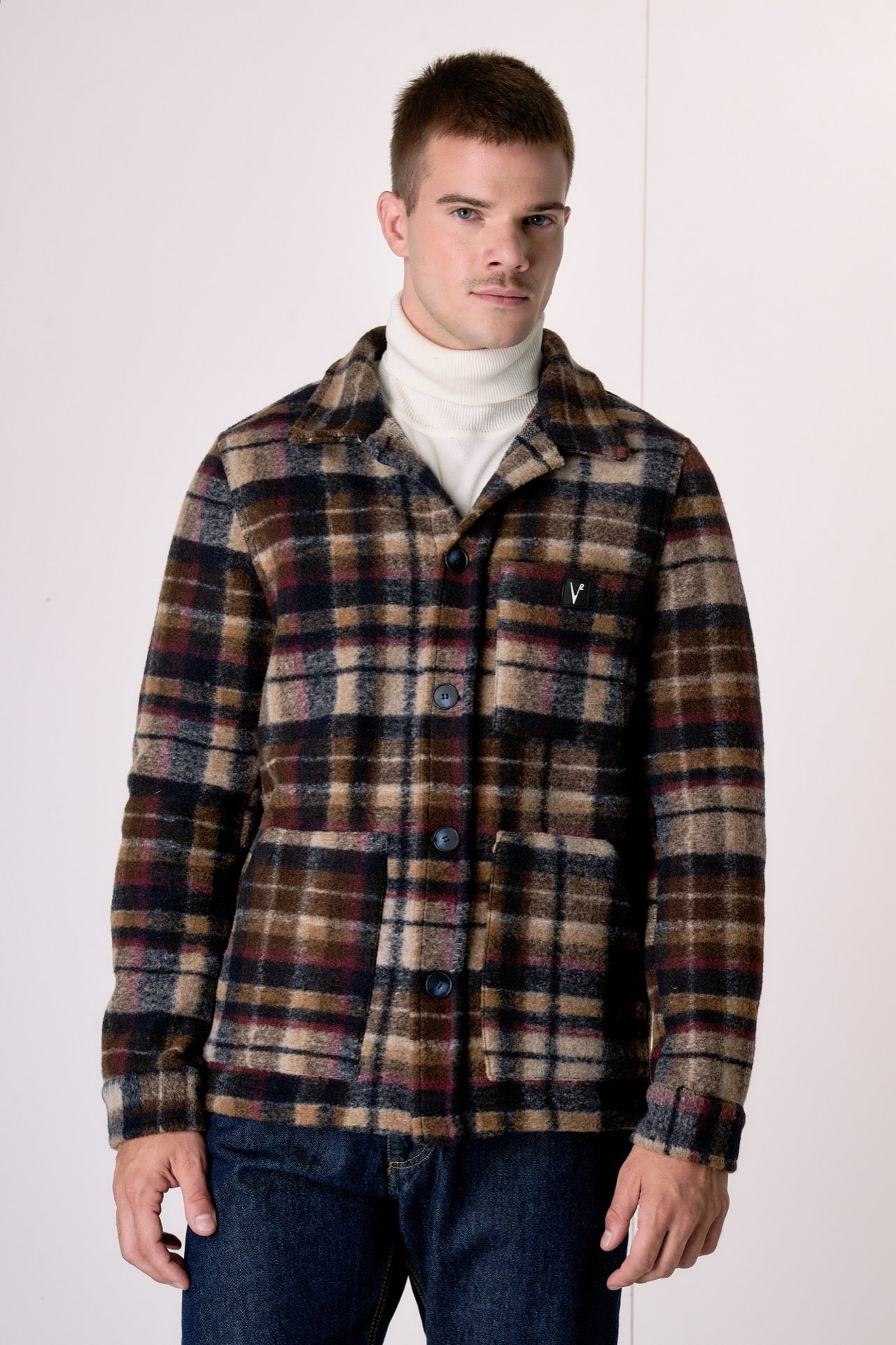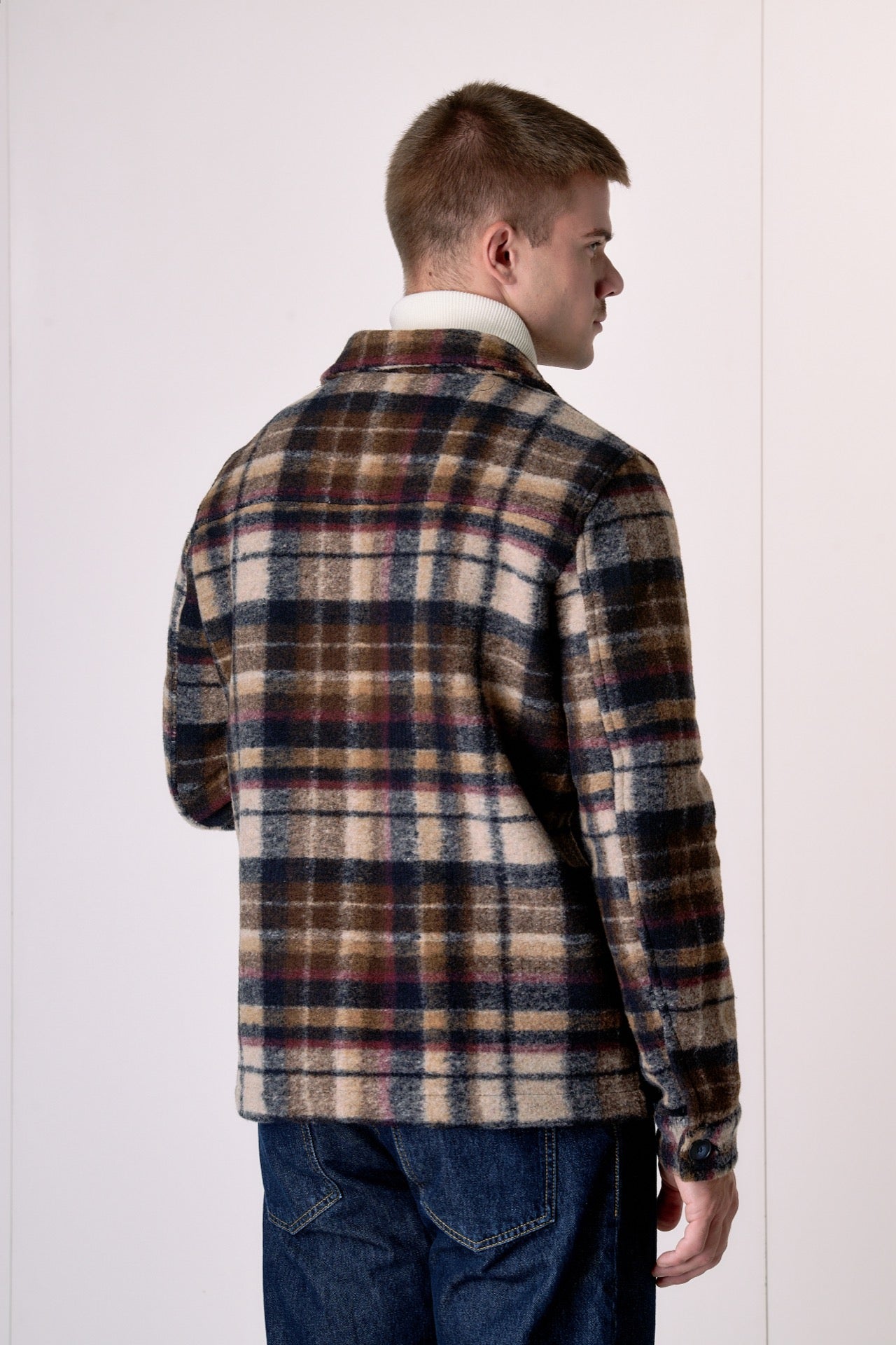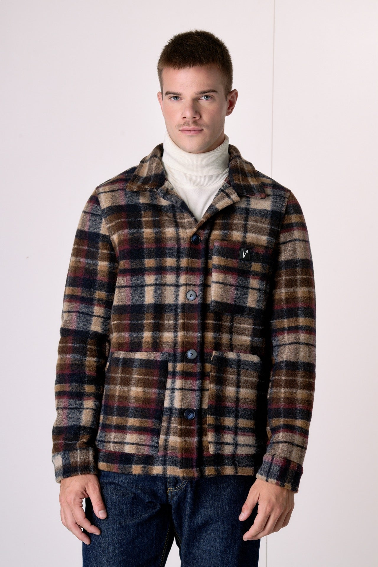 Saharan jacket in boiled wool with multicolored blue check and internal lining in V2 fabric