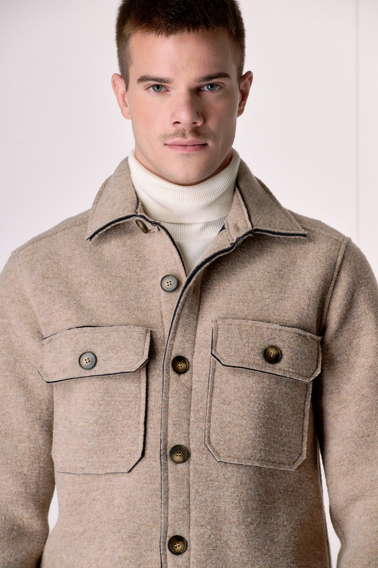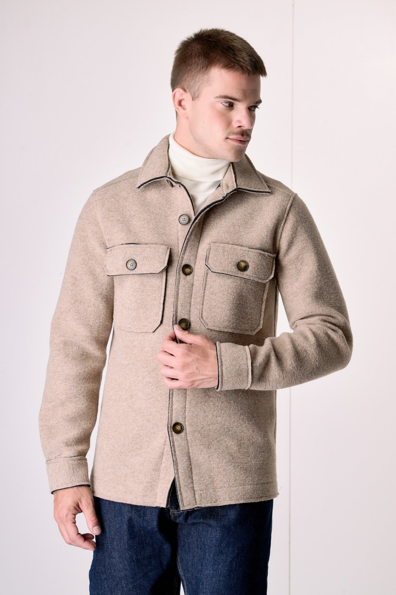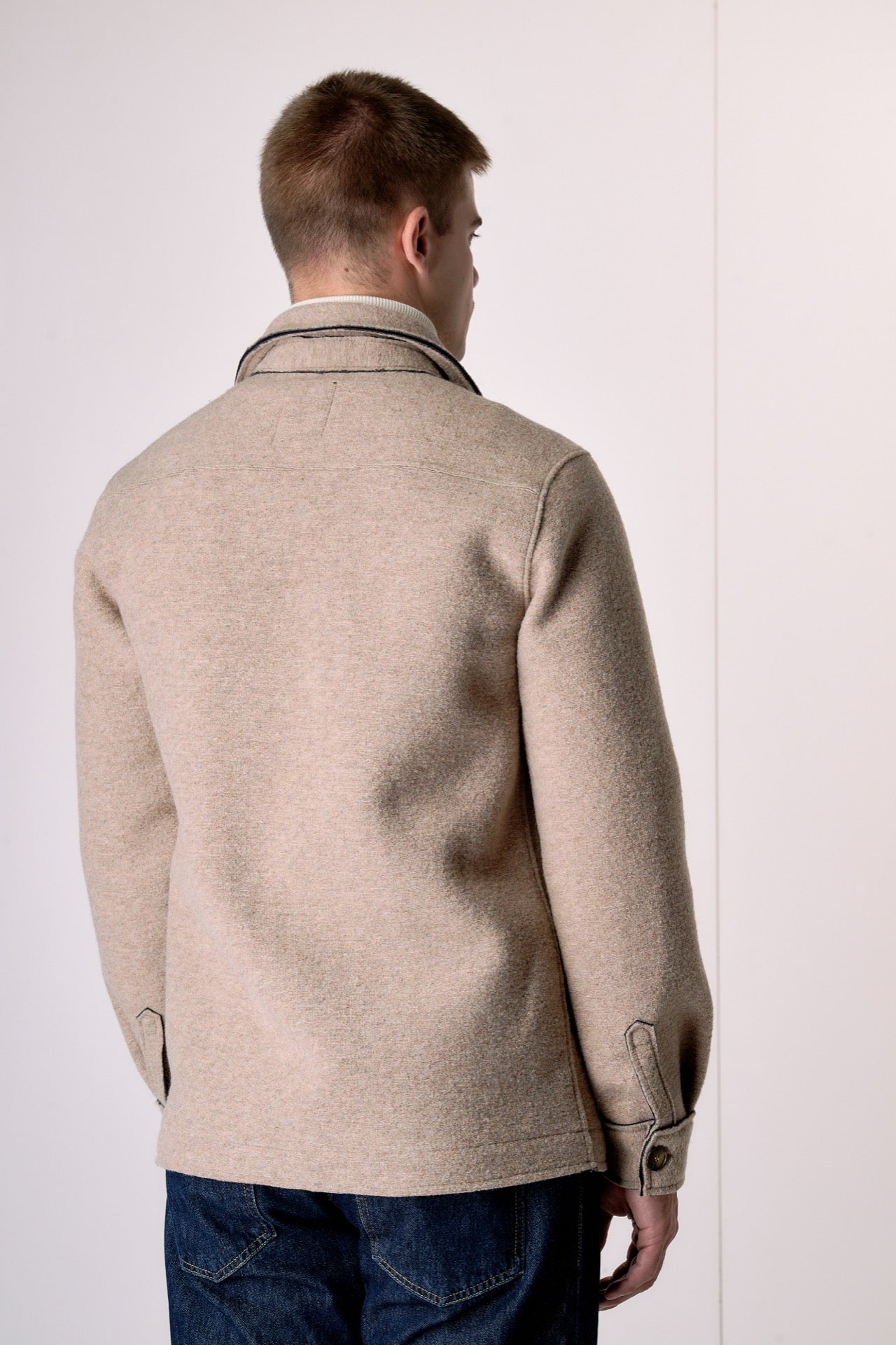 Sand-colored Saharan jacket in bonded boiled wool.