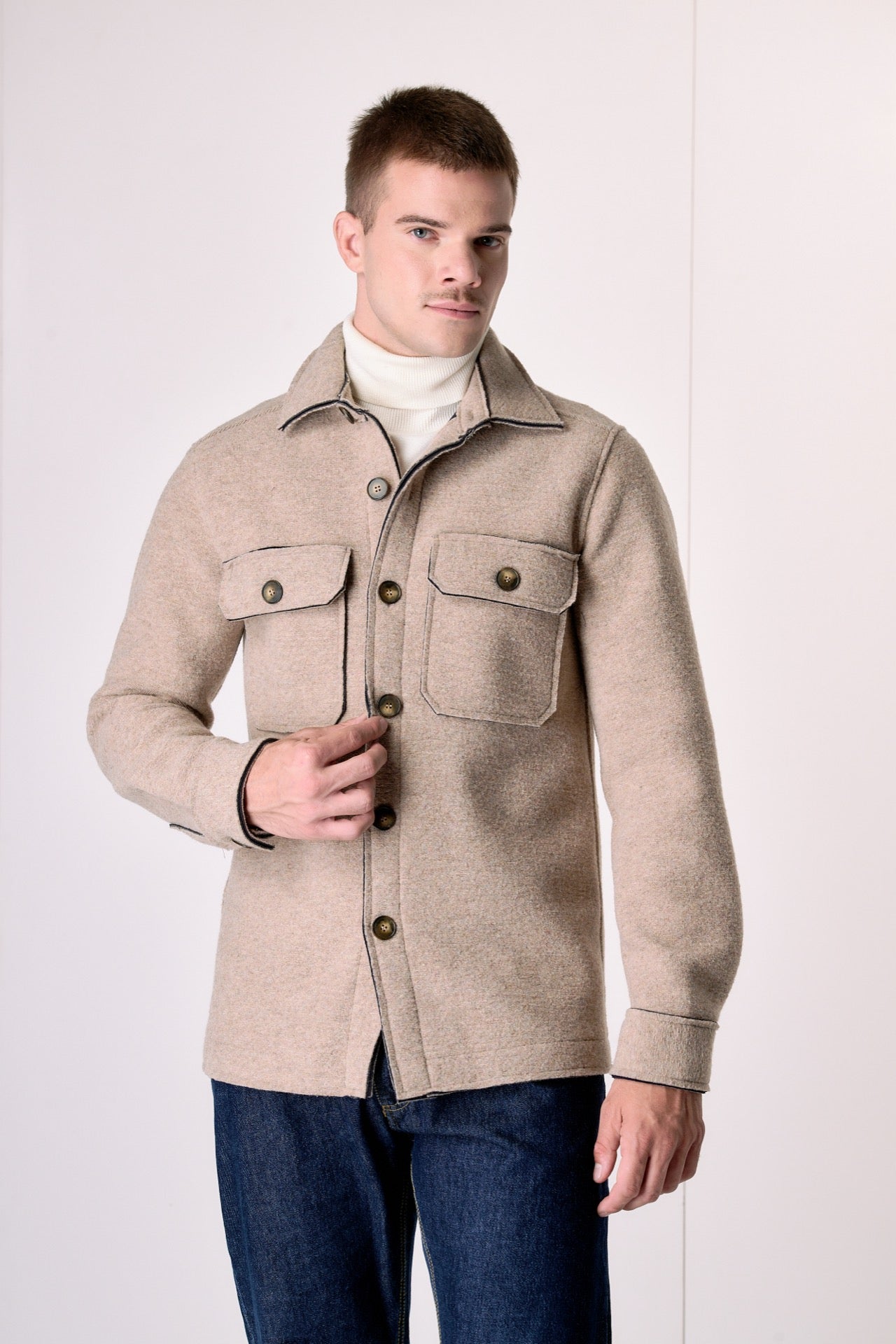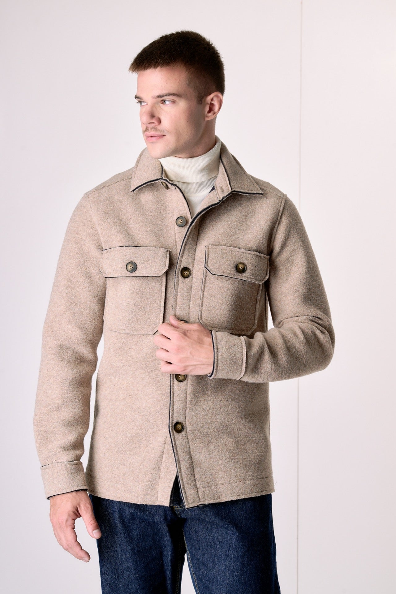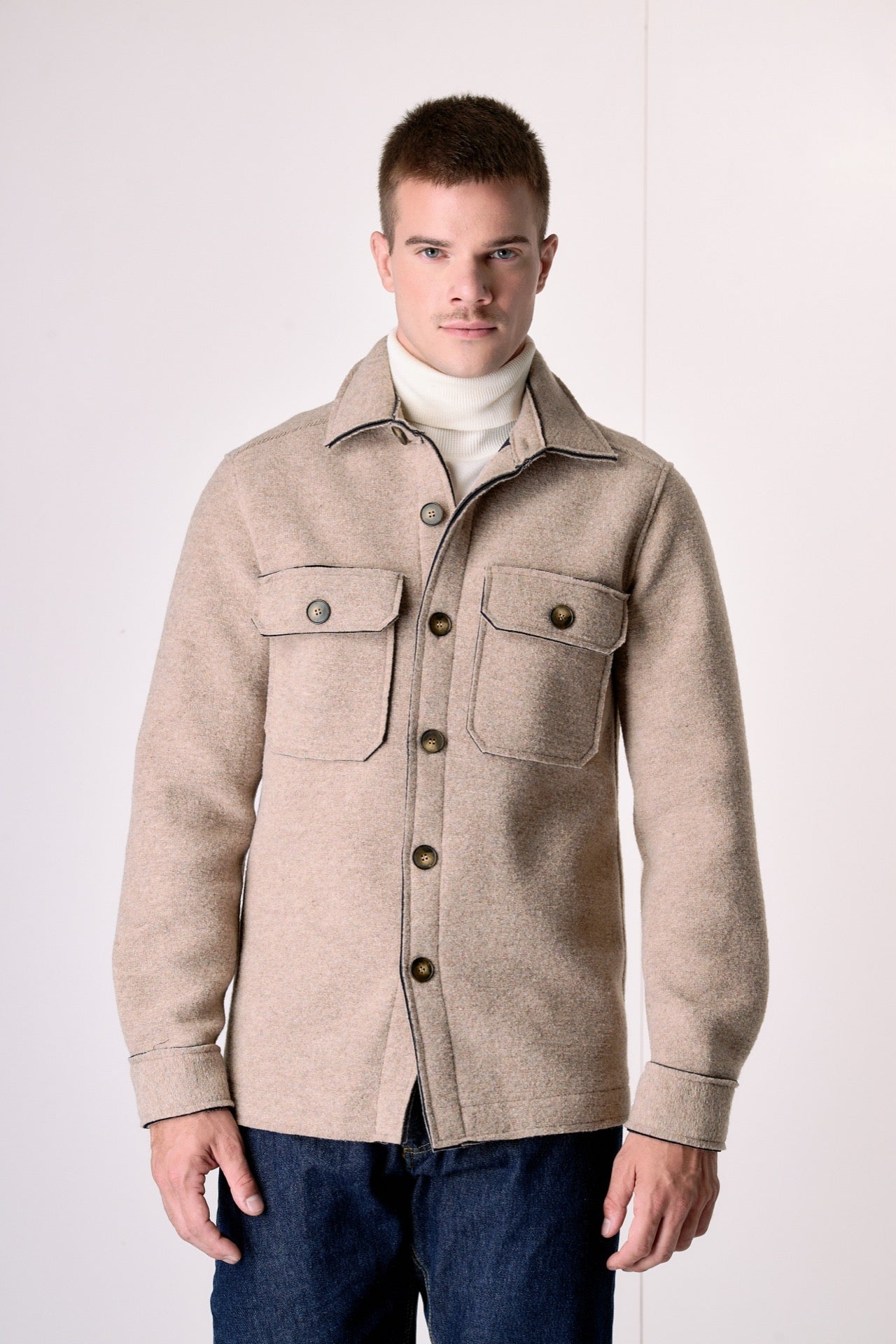 Sand-colored Saharan jacket in bonded boiled wool.