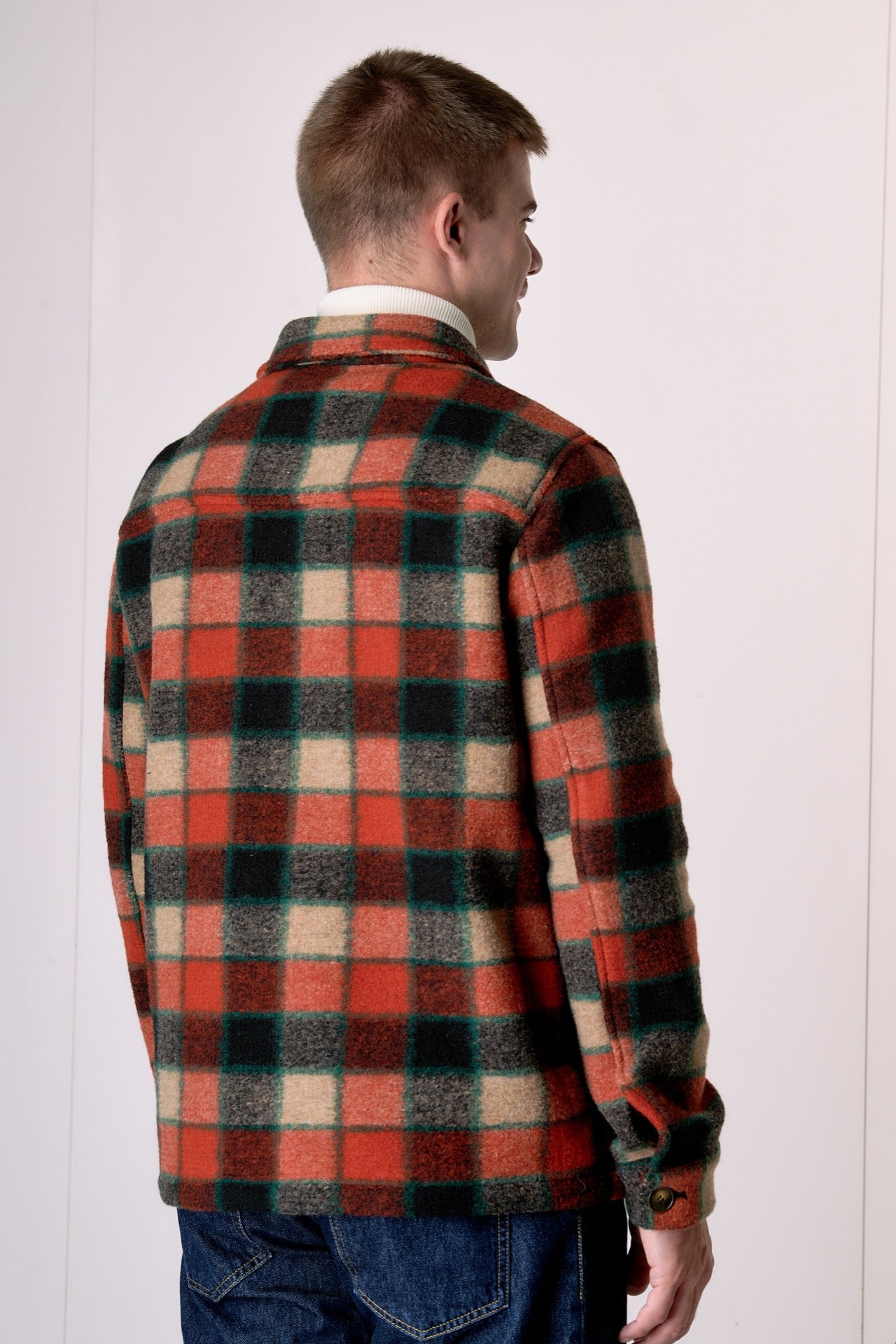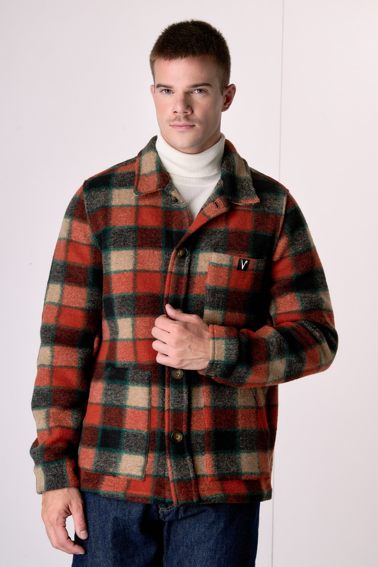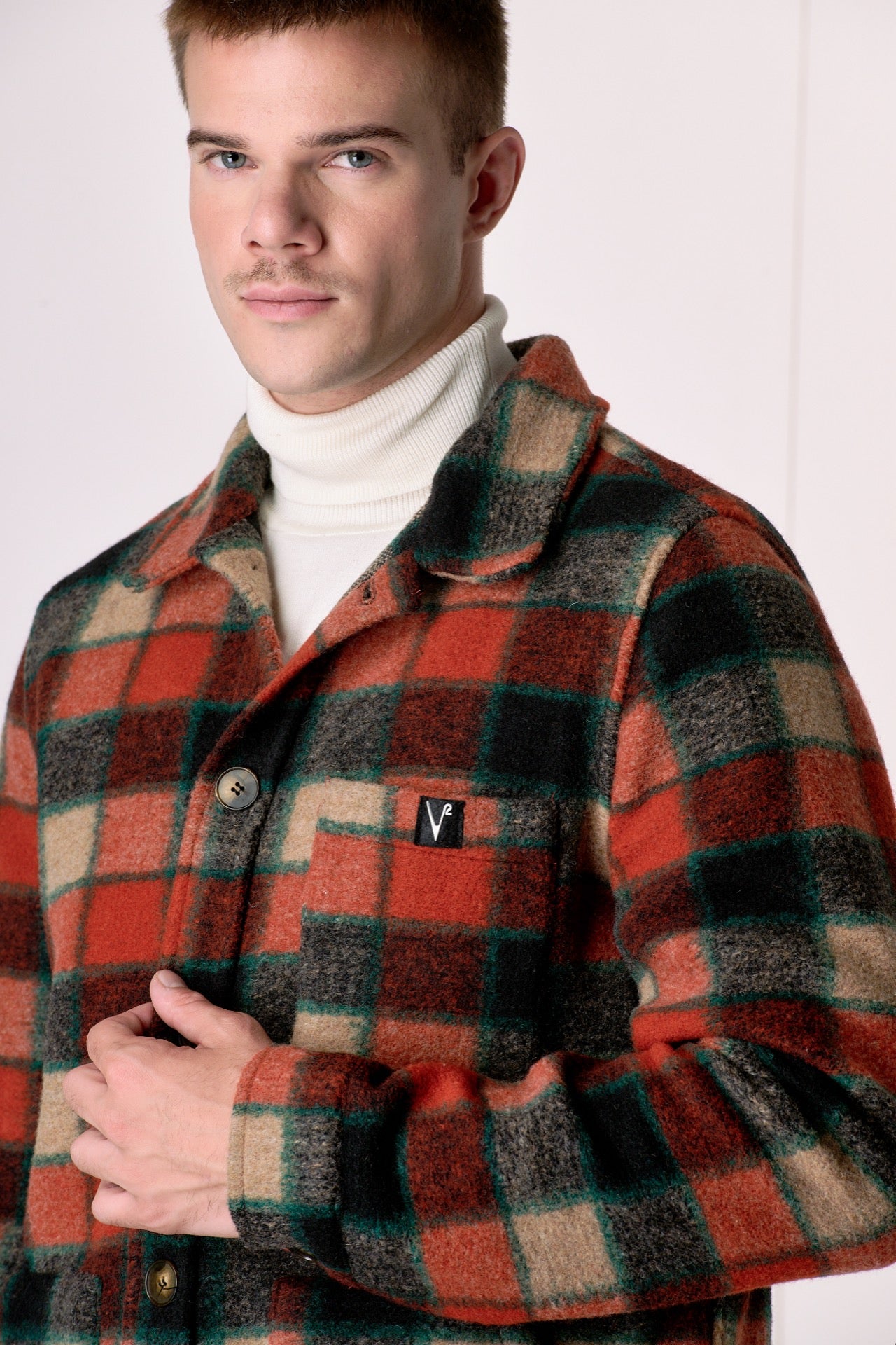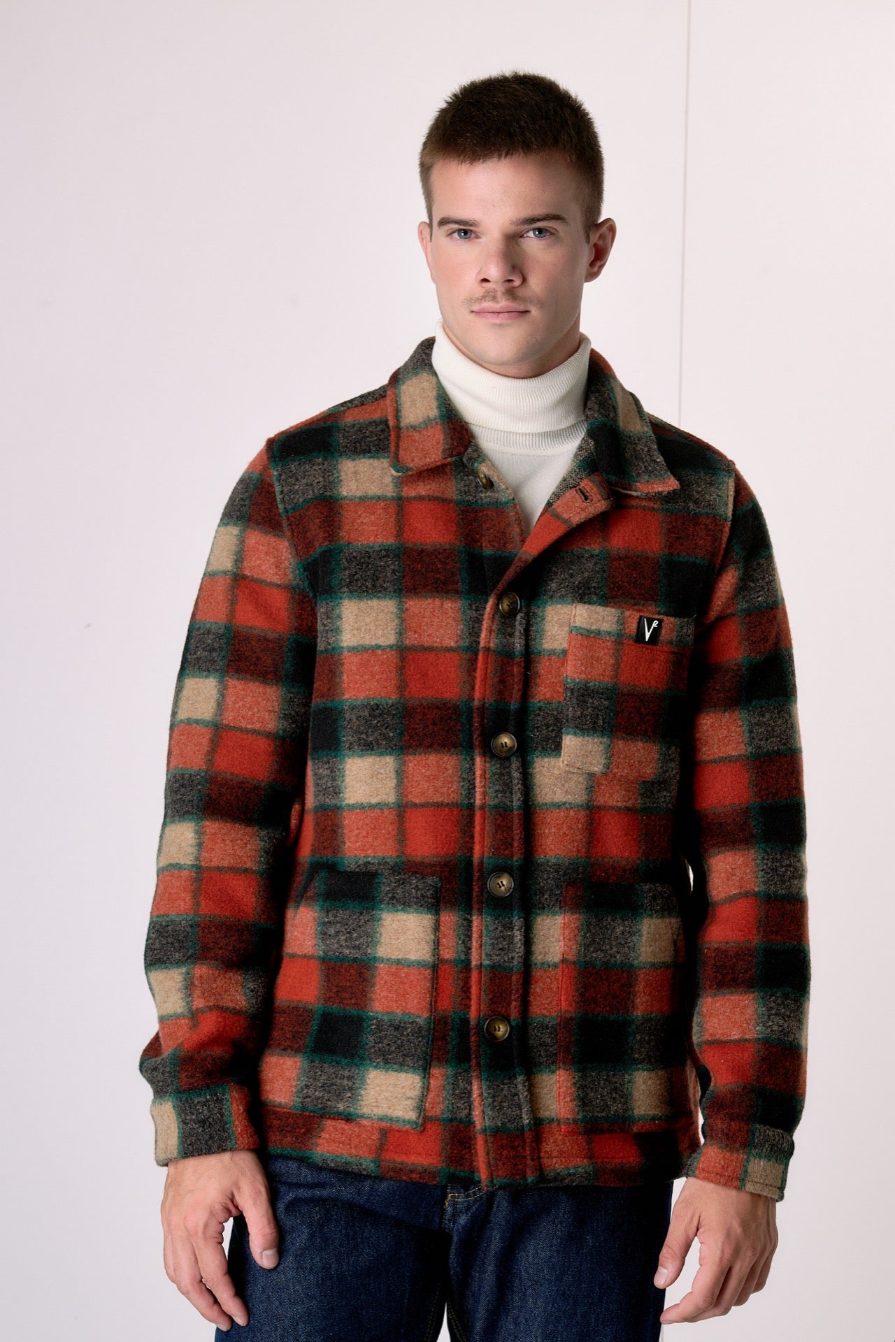 Saharan jacket in bonded boiled wool made of Quadro Coccio V2 fabric.