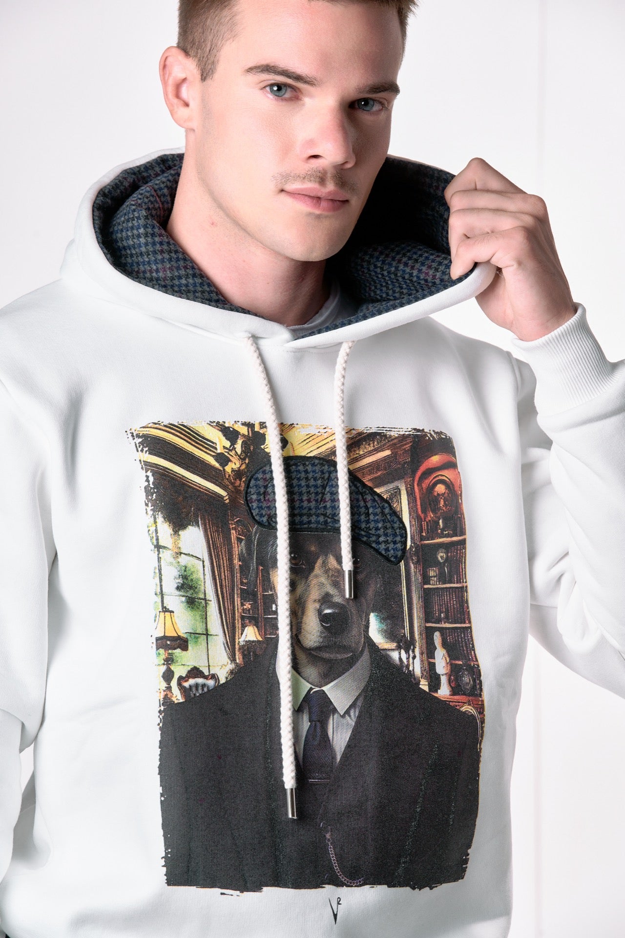 Fresh, eye-catching, fun: a hooded sweatshirt with a casual soul, perfect for your everyday look, with a print and V2 fabric application coordinated with the lined interior of the hood, for a unique and inimitable effect.