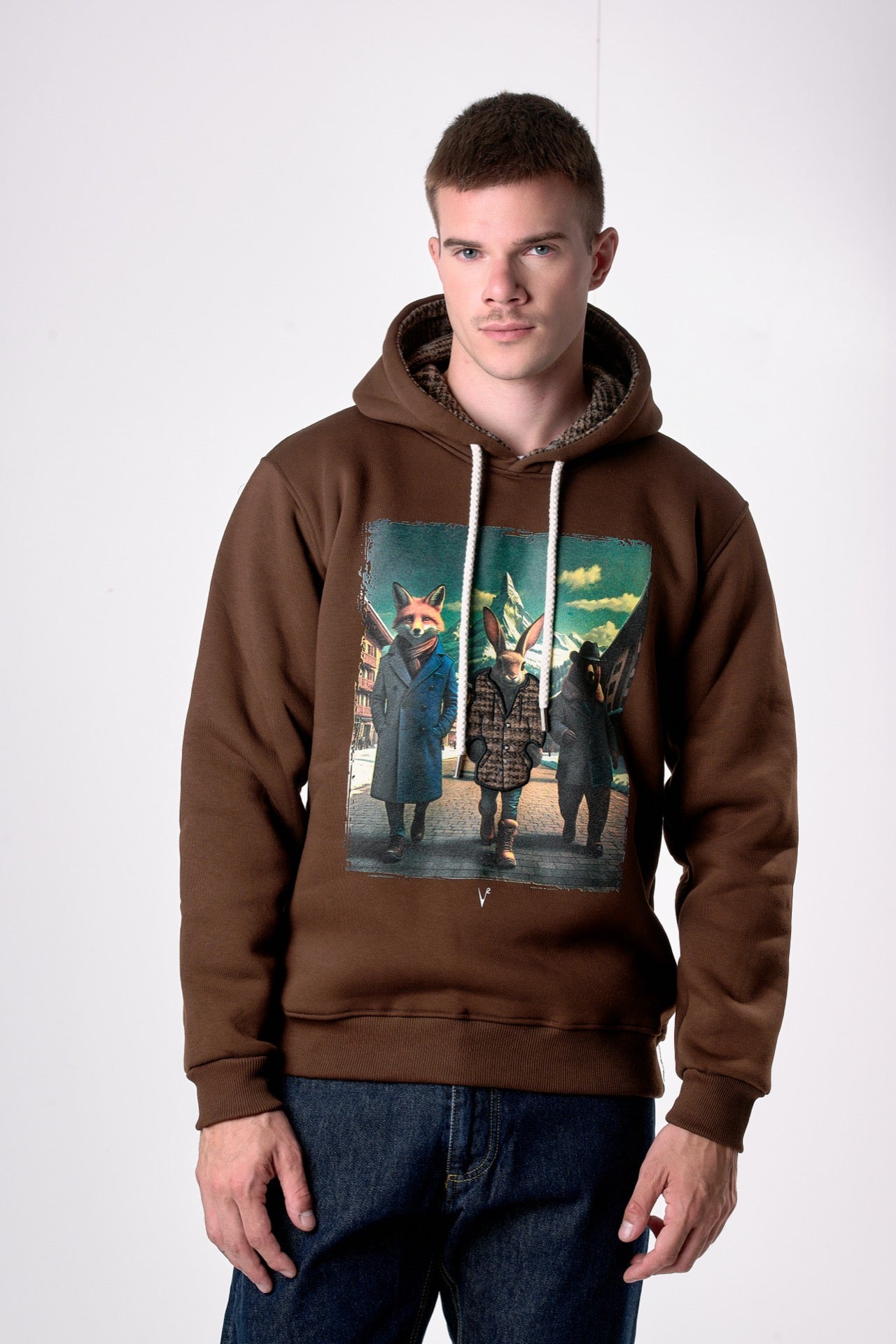 Moorish Hooded Sweatshirt with Rabbit Print and Fabric Embroidery V2