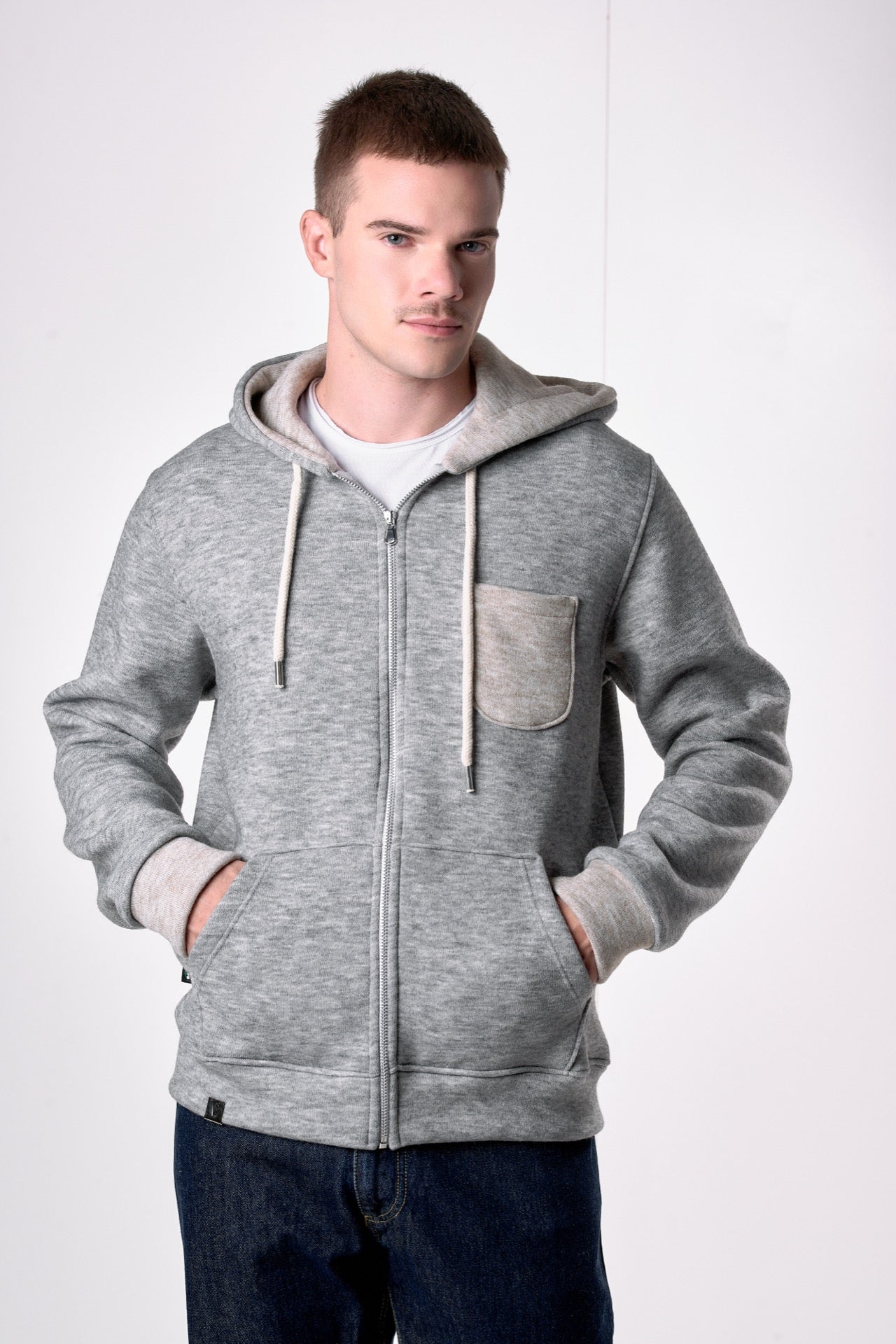 Pearl Grey Double Zip Hoodie
