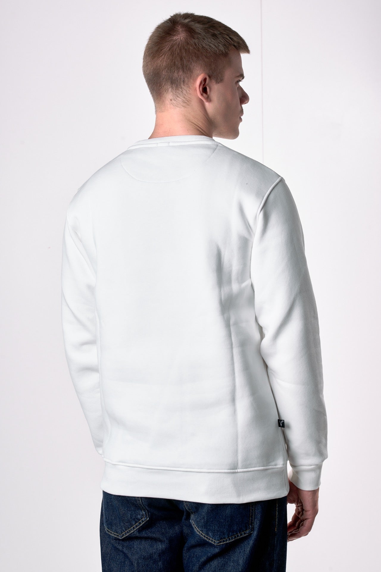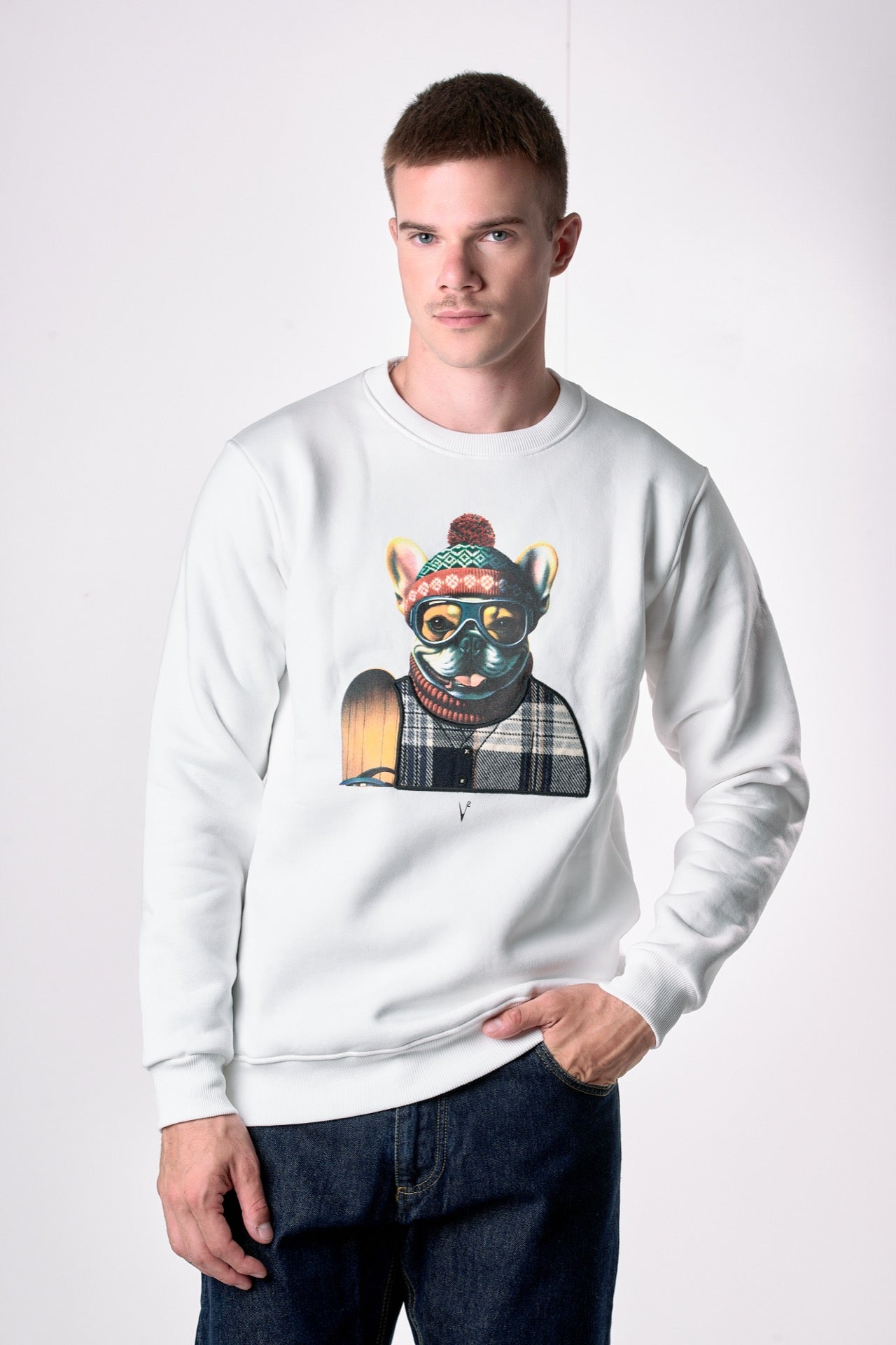 Cream Crewneck Sweatshirt with Bulldog Print and Fabric Embroidery V2