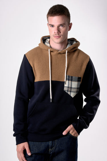 Blue Hoodie with Knit Inlay and Fabric Details V2