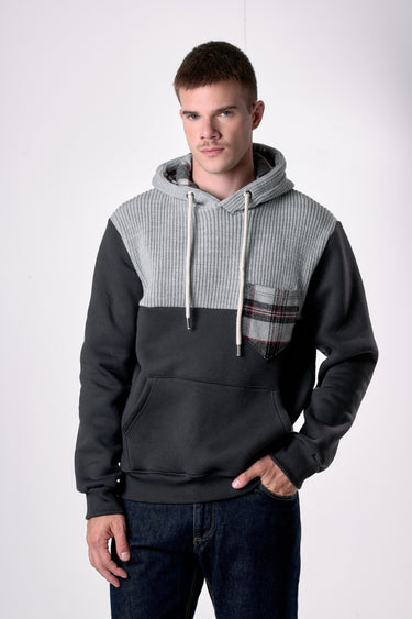 Lead Hooded Sweatshirt with Knit Inlay and Fabric Details V2