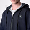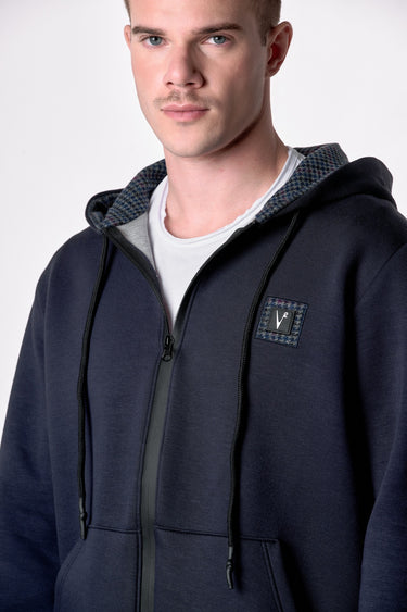 Blue Neoprene Zip-Up Hoodie with Fabric Details V2