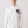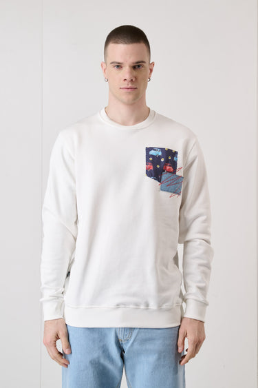 Cream Crewneck Sweatshirt with Pocket and Embroidered Patch in V2 Fabric