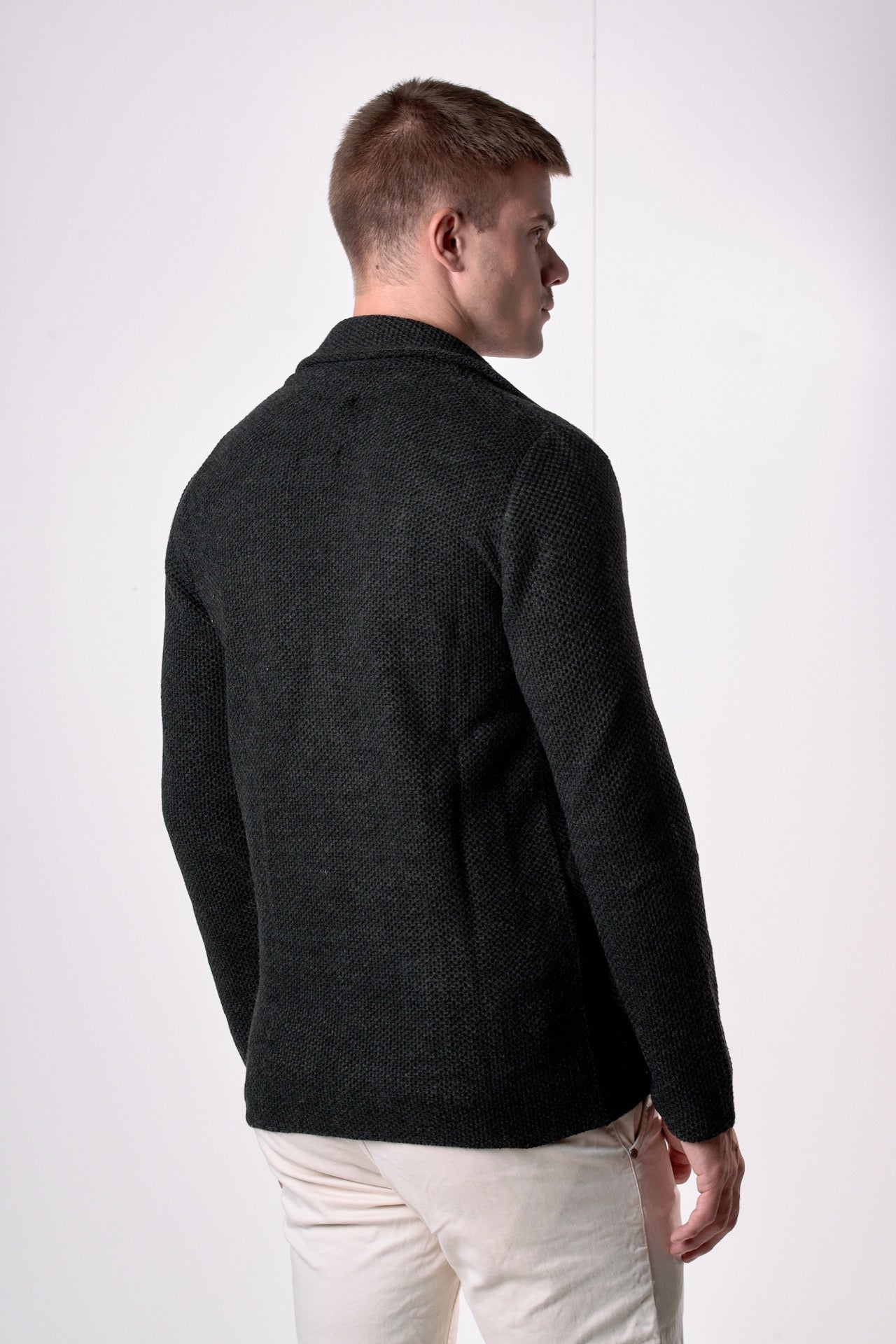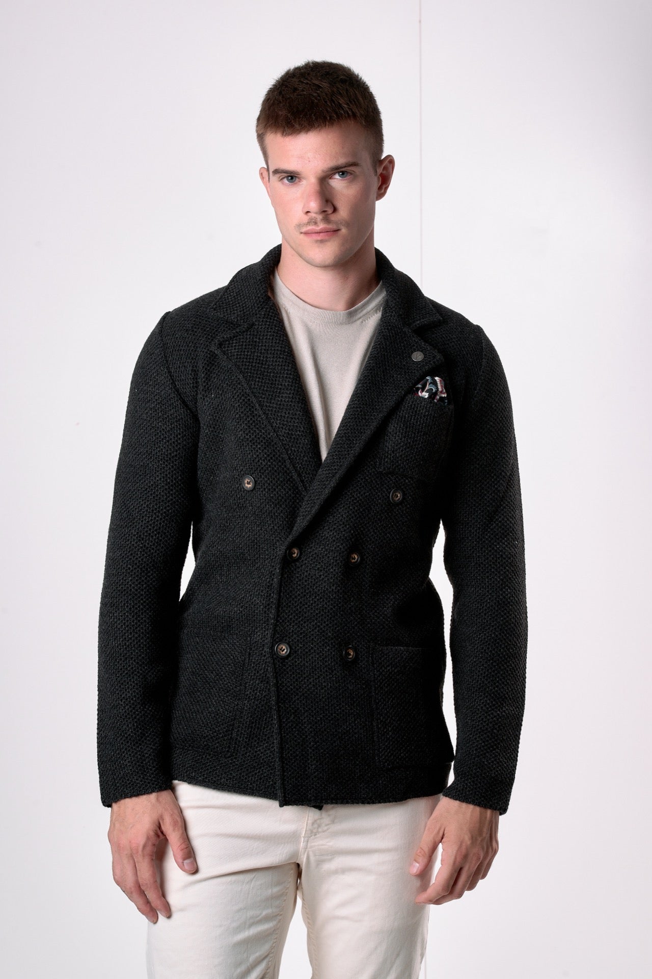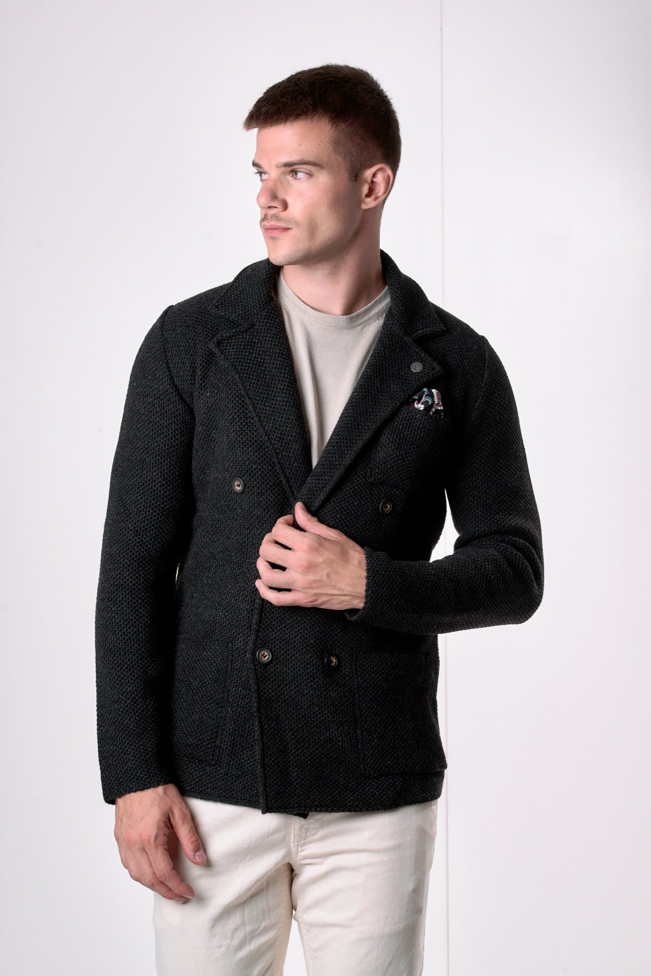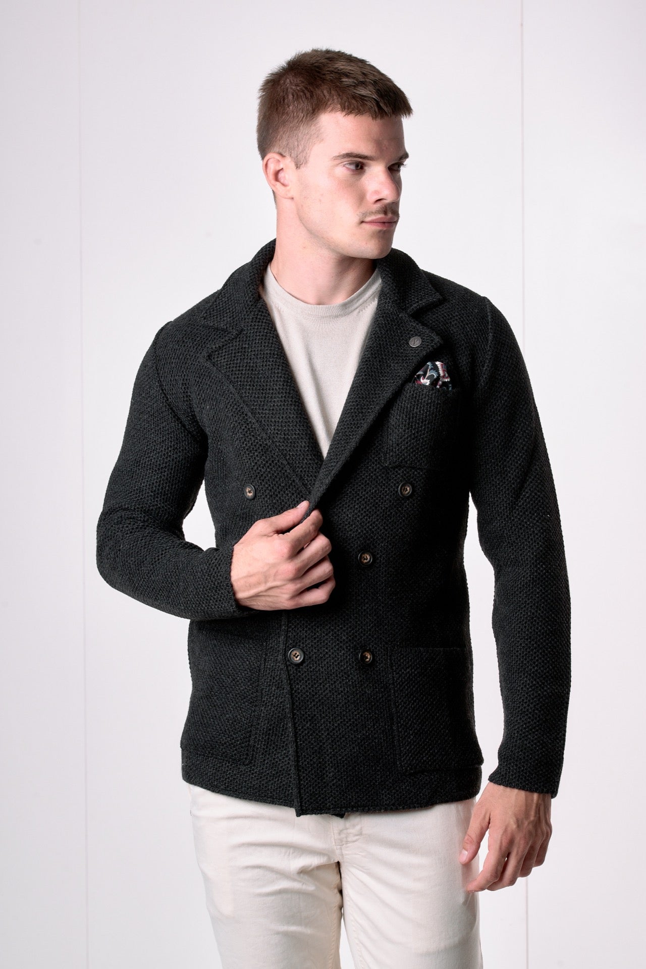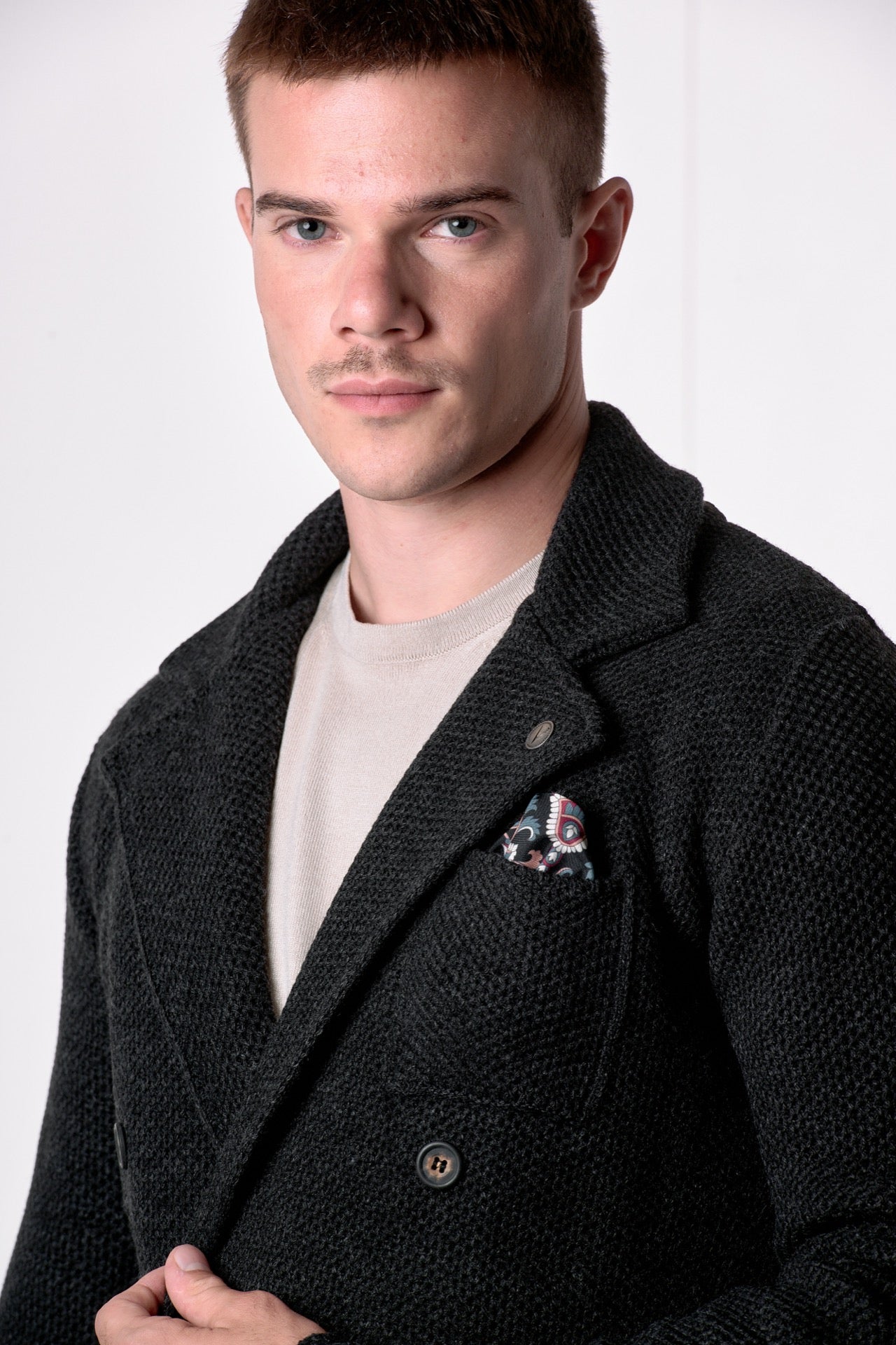 Anthracite Grey Bird's Eye Double-Breasted Jacket with V2 Fabric Pocket Square