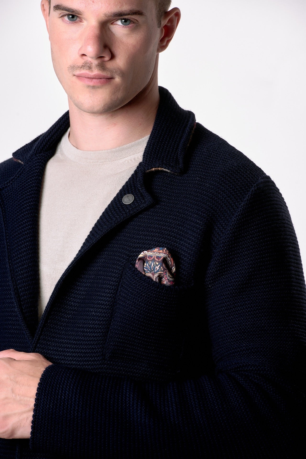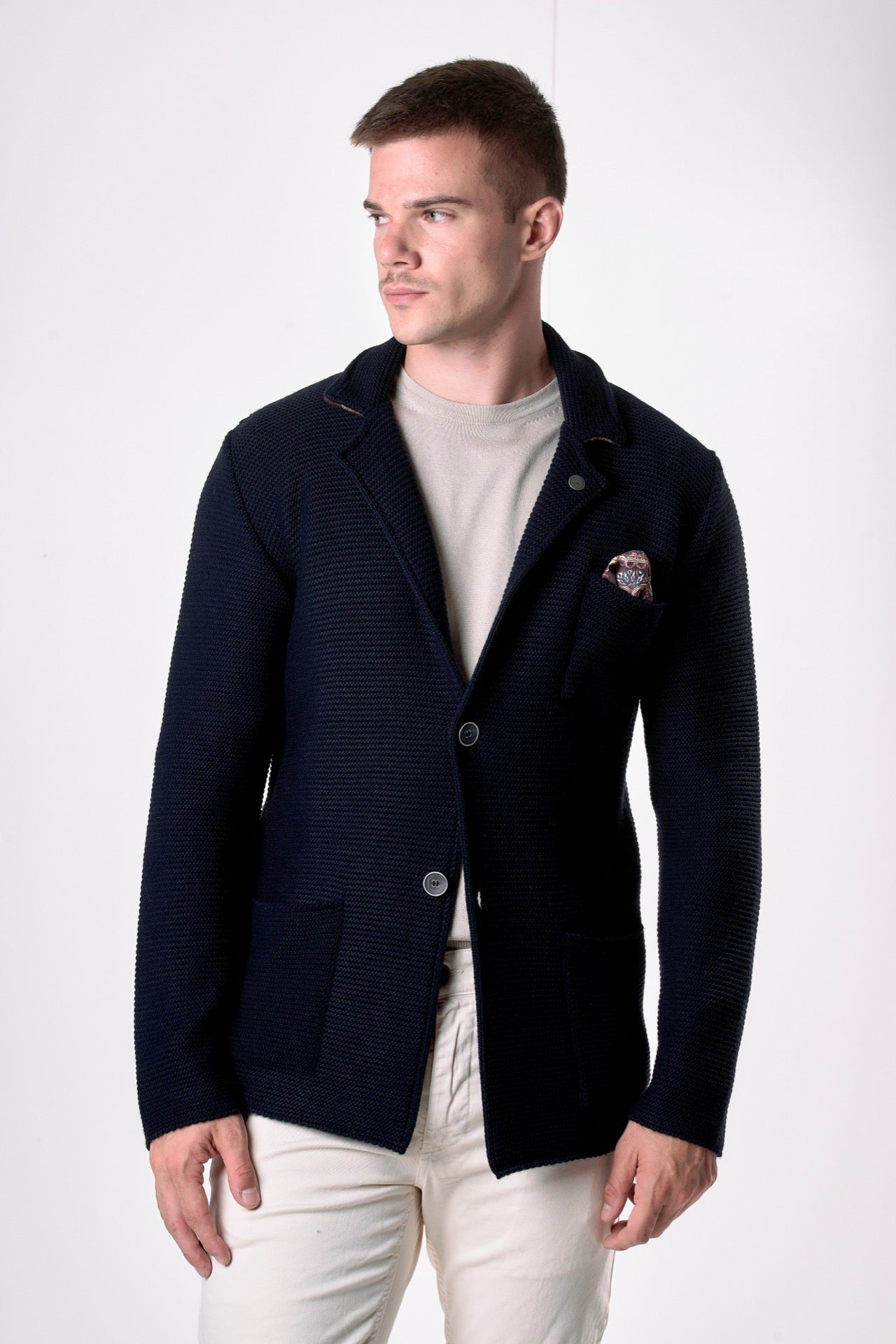 Single Breasted Jacket Links Blue with inner collar and pocket square in V2 fabric