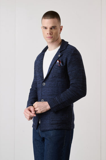 Single Breasted Jacket Links Blue Flame with Fabric Pocket Square V2