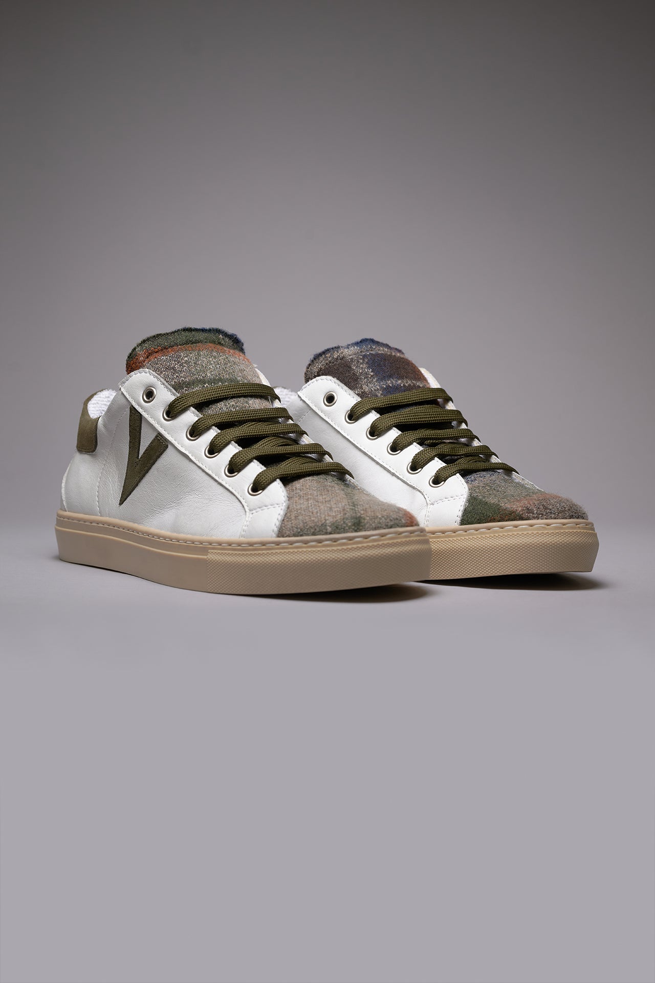 OLYMPIC - Low-top sneakers in white leather with houndstooth fabric tongue