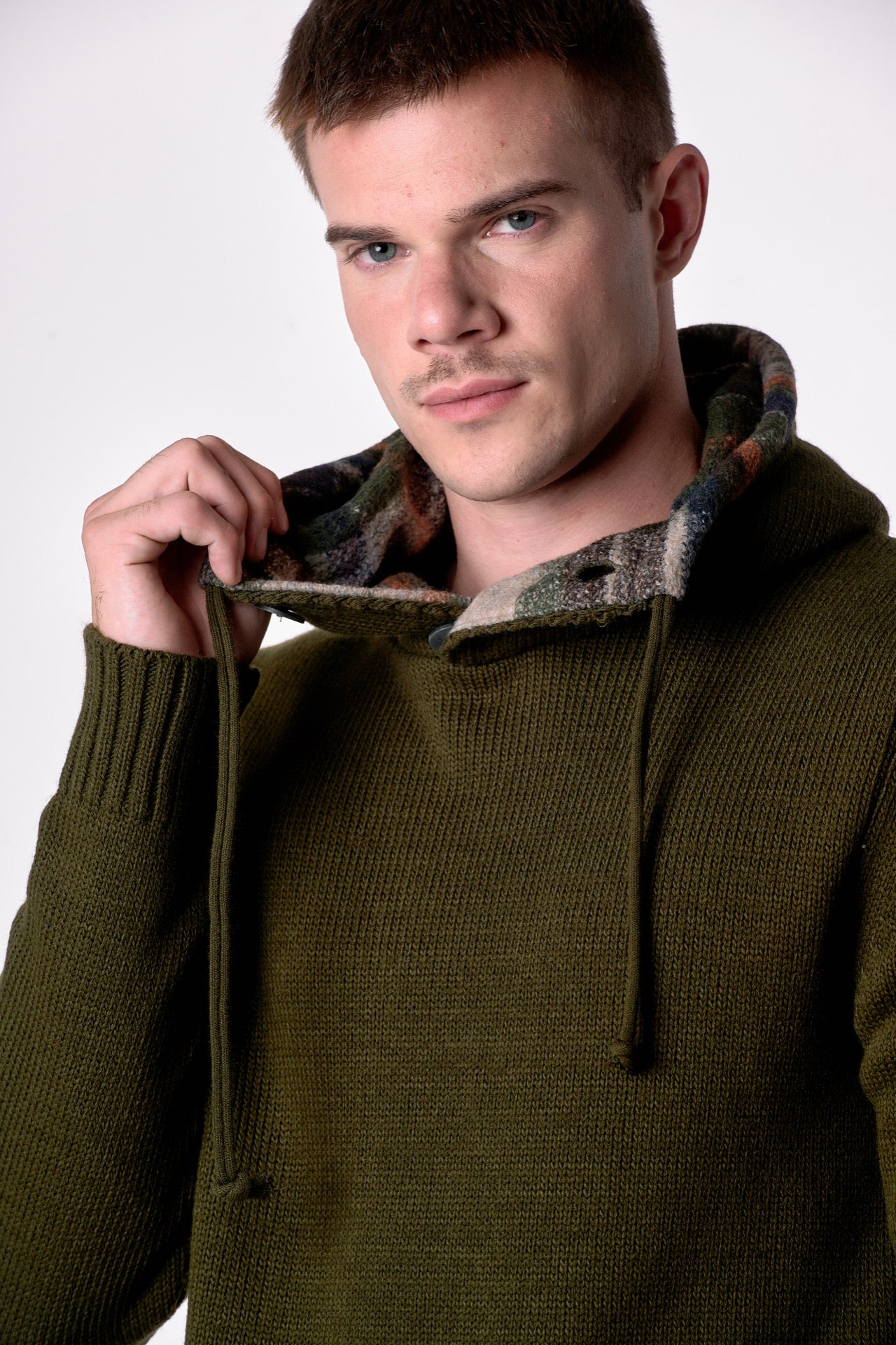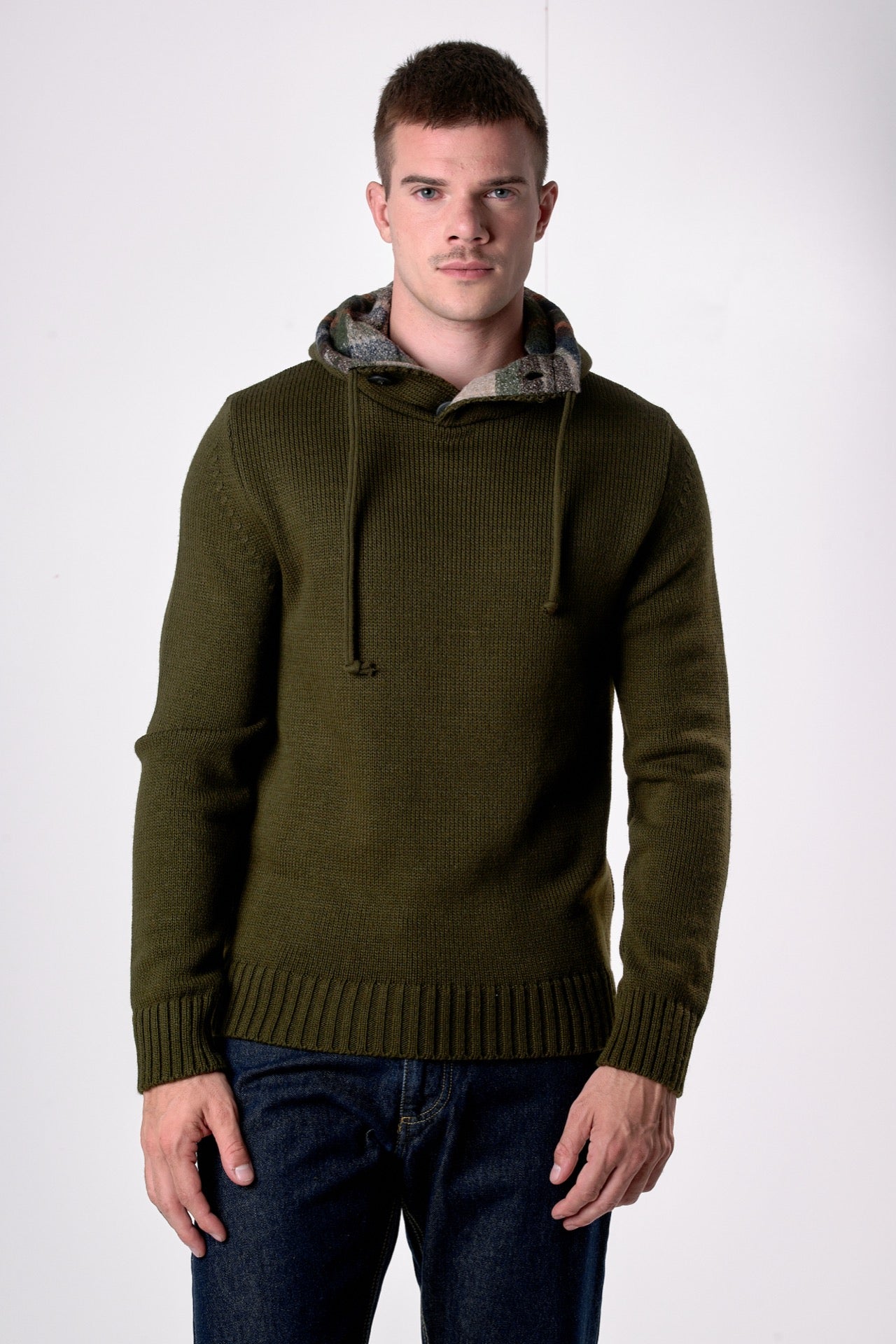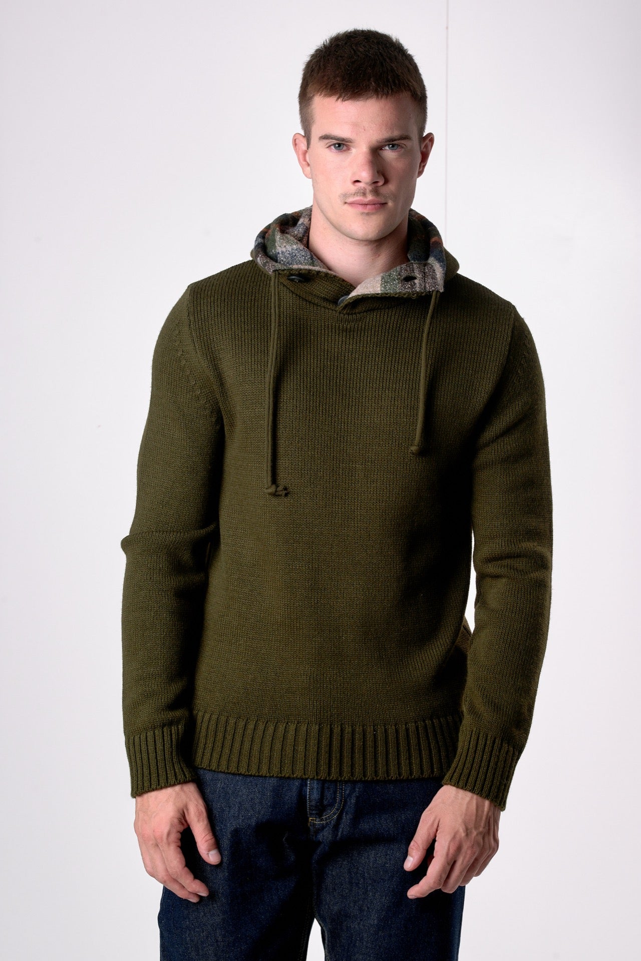 Oslo Military Green Hooded Sweater with V2 Fabric Lining