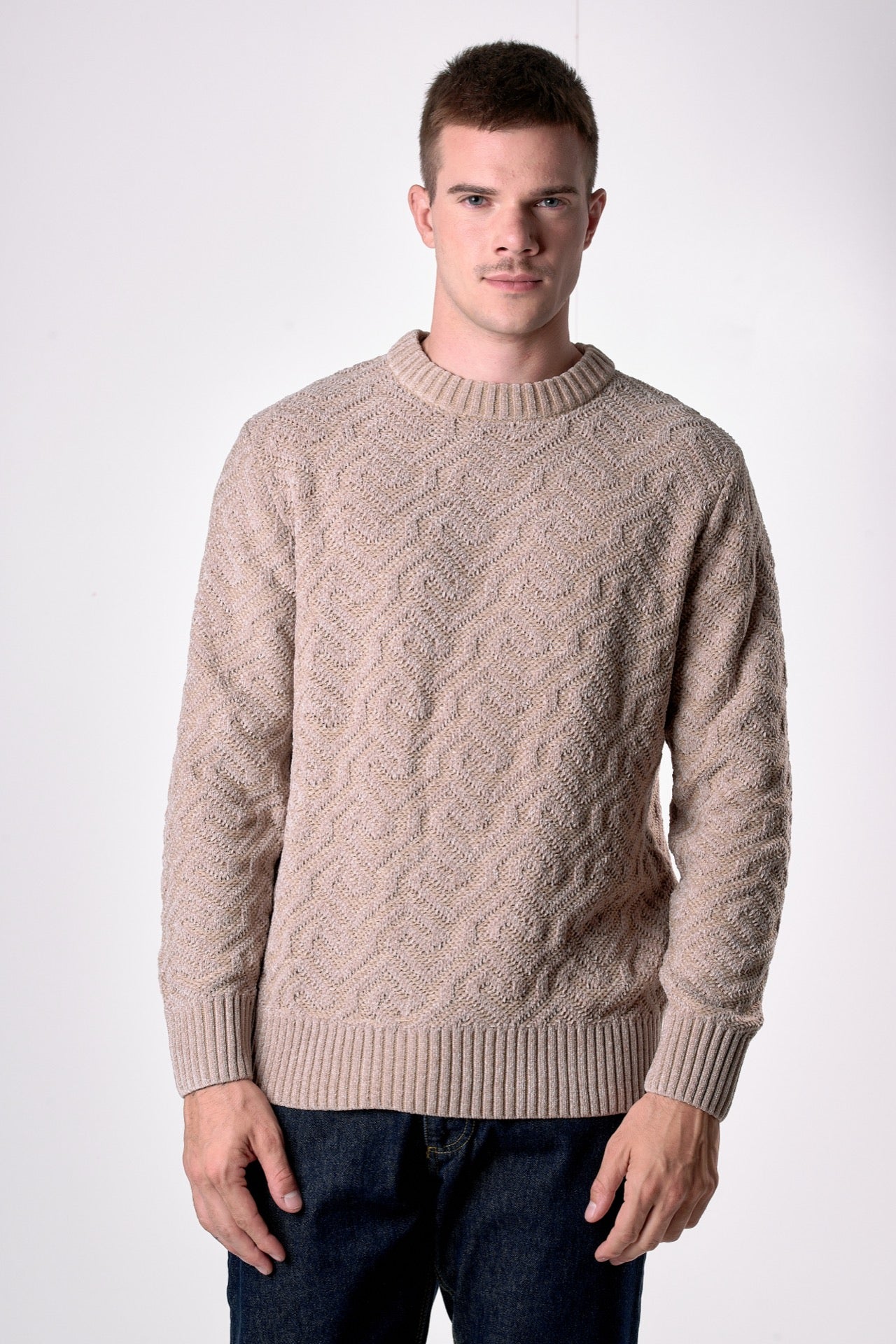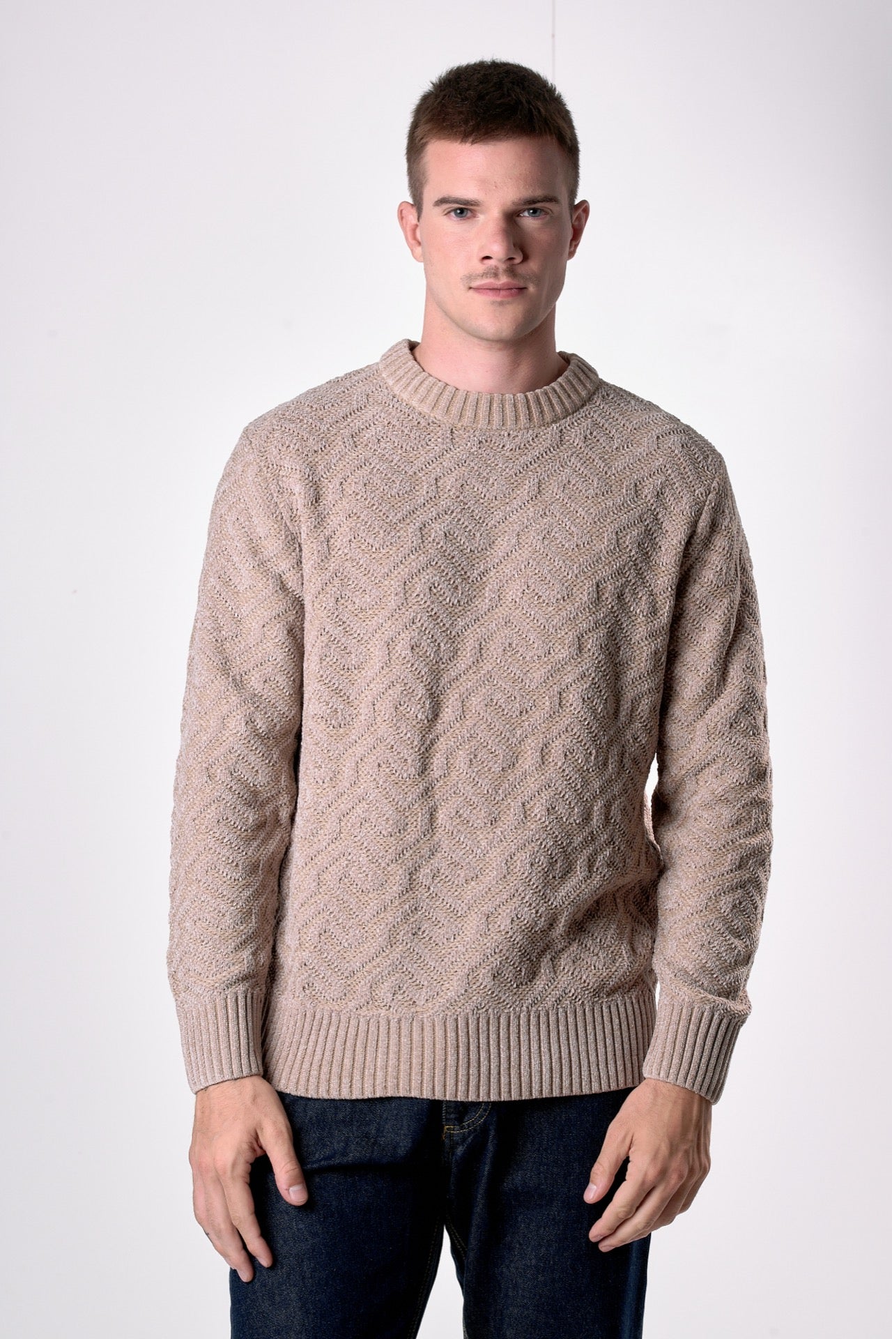 The minimal design with a clean crew neck highlights the refined material, offering absolute comfort and a contemporary visual impact. A sweater that blends texture and volume in a modern way, perfect for those seeking a versatile yet never boring piece.