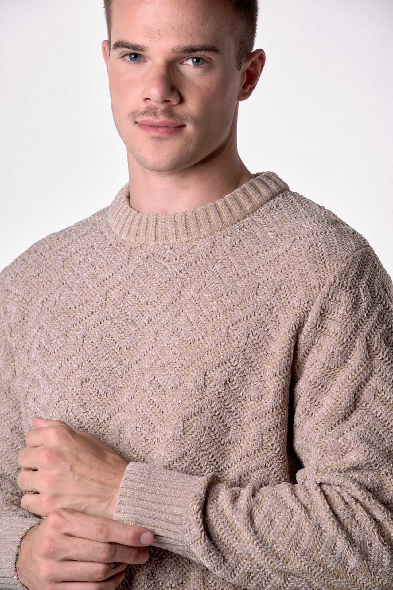The 3D chenille crewneck sweater is designed to give your look a unique touch, thanks to the fabric's three-dimensional effect. The chenille's special processing creates a play of relief and shading that enhances softness and color intensity, transforming a basic piece into a distinctive style statement.