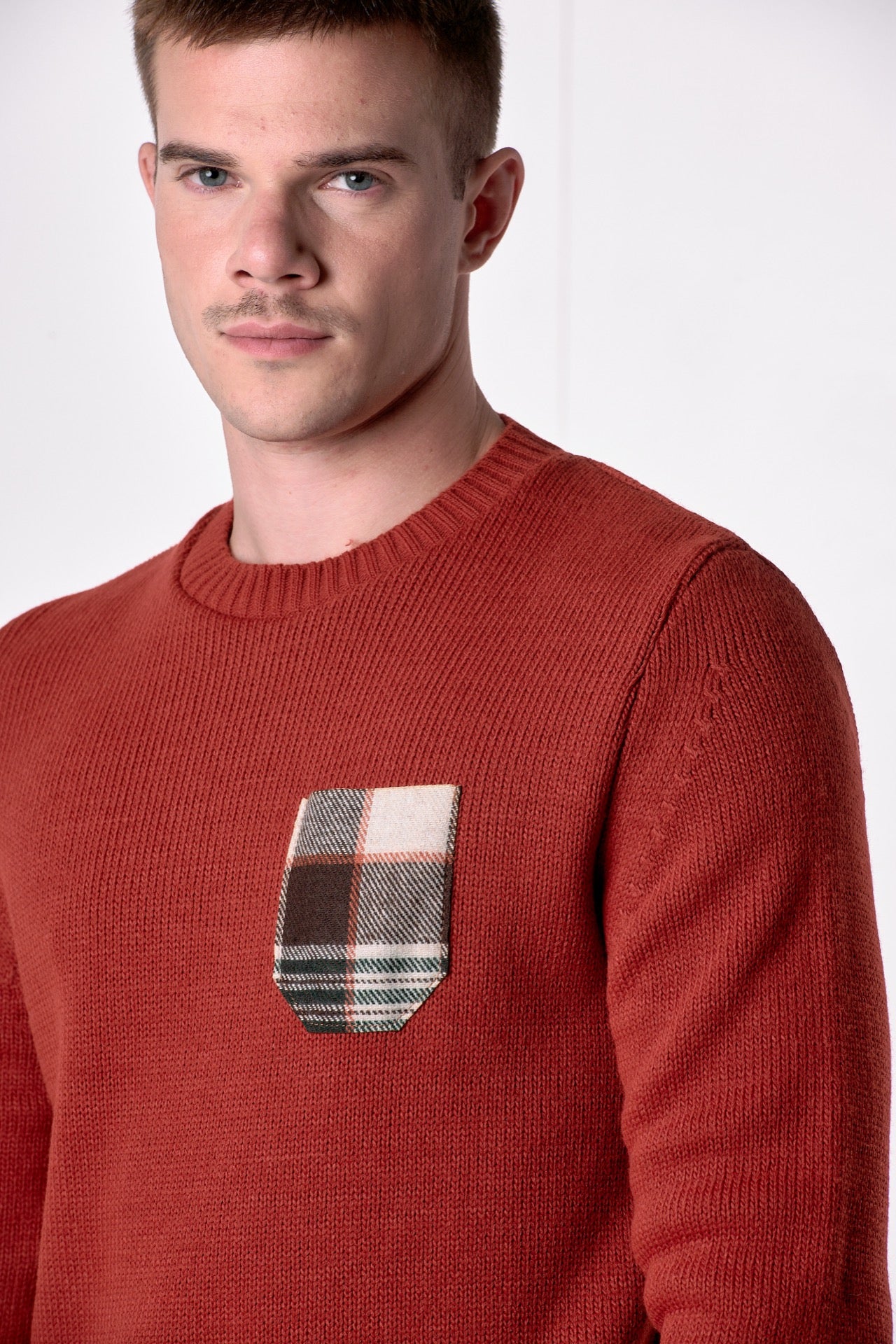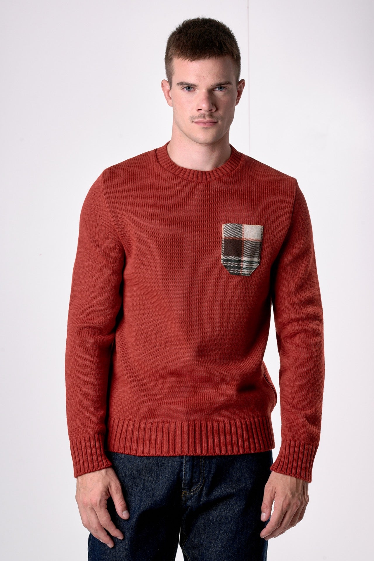Oslo Coccio Crew Neck Sweater with Pocket in V2 Fabric