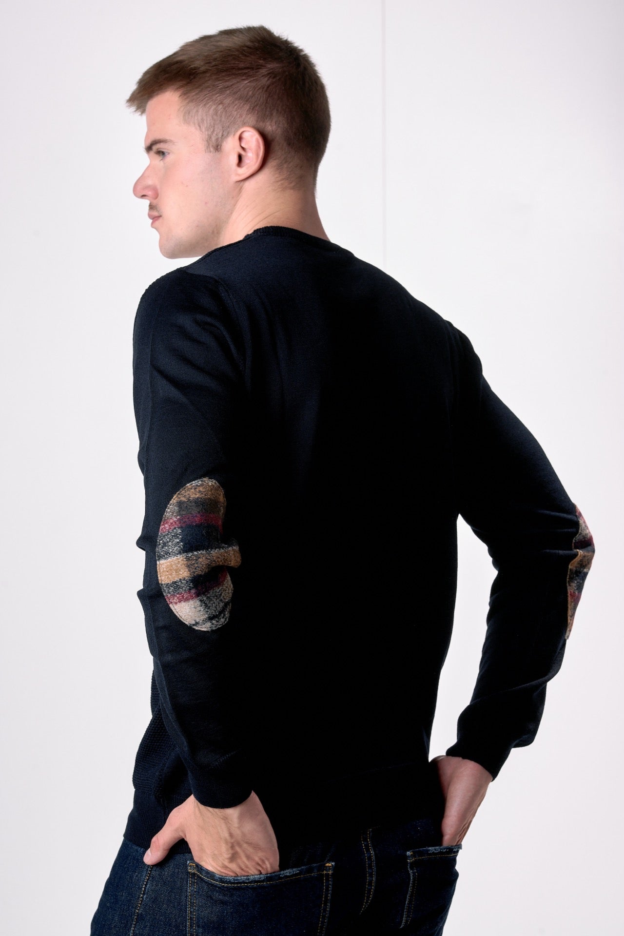 Rice stitch merino wool sweater with V2 fabric patches. The perfect fit and softness make it a versatile piece, guaranteeing maximum comfort and a unique style.
