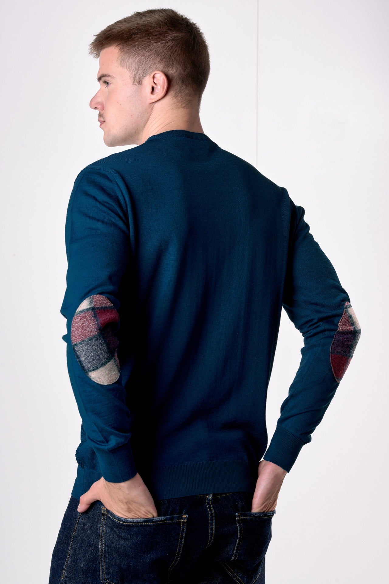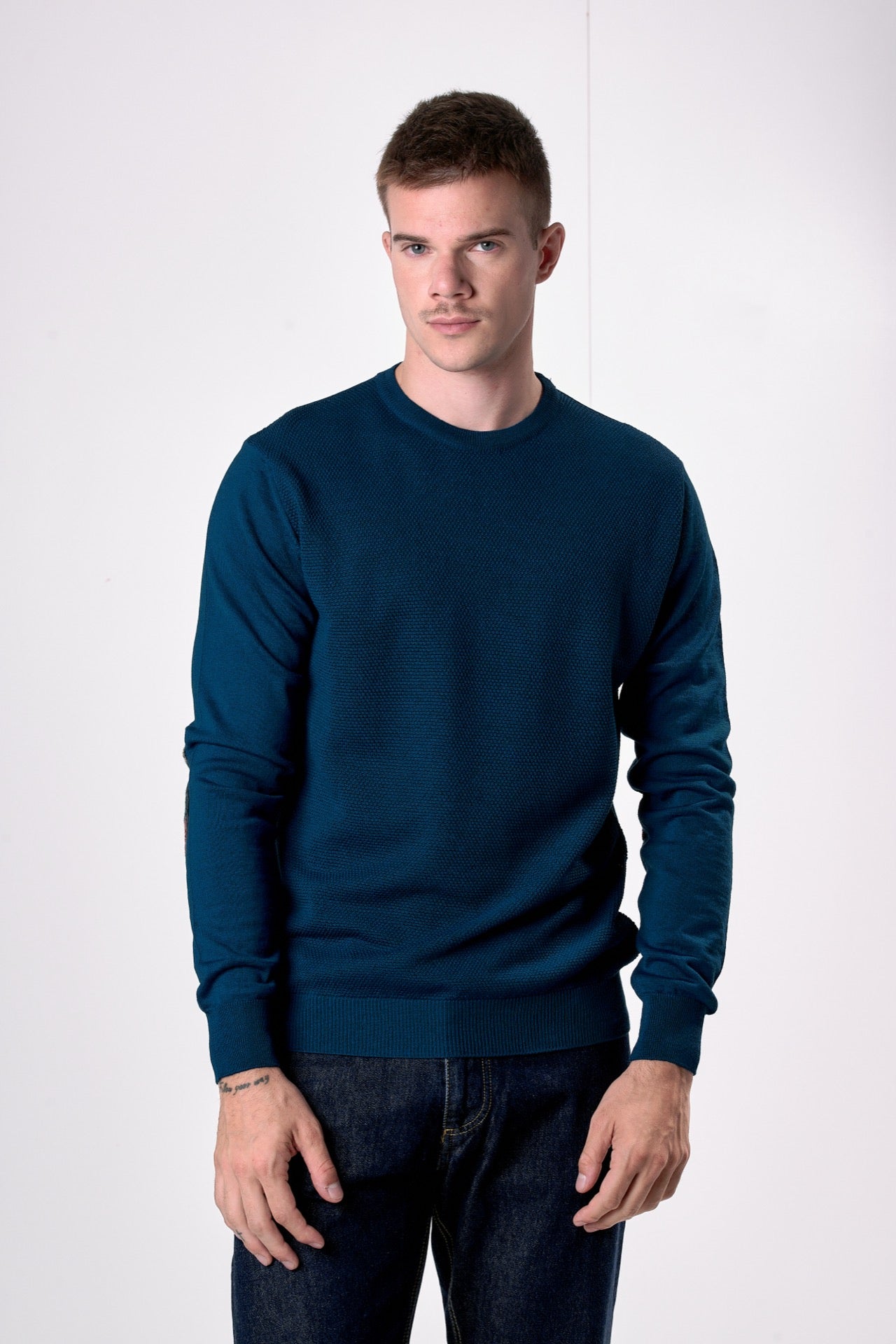 Ottanio Merino Wool Crew Neck Sweater with V2 Fabric Patches